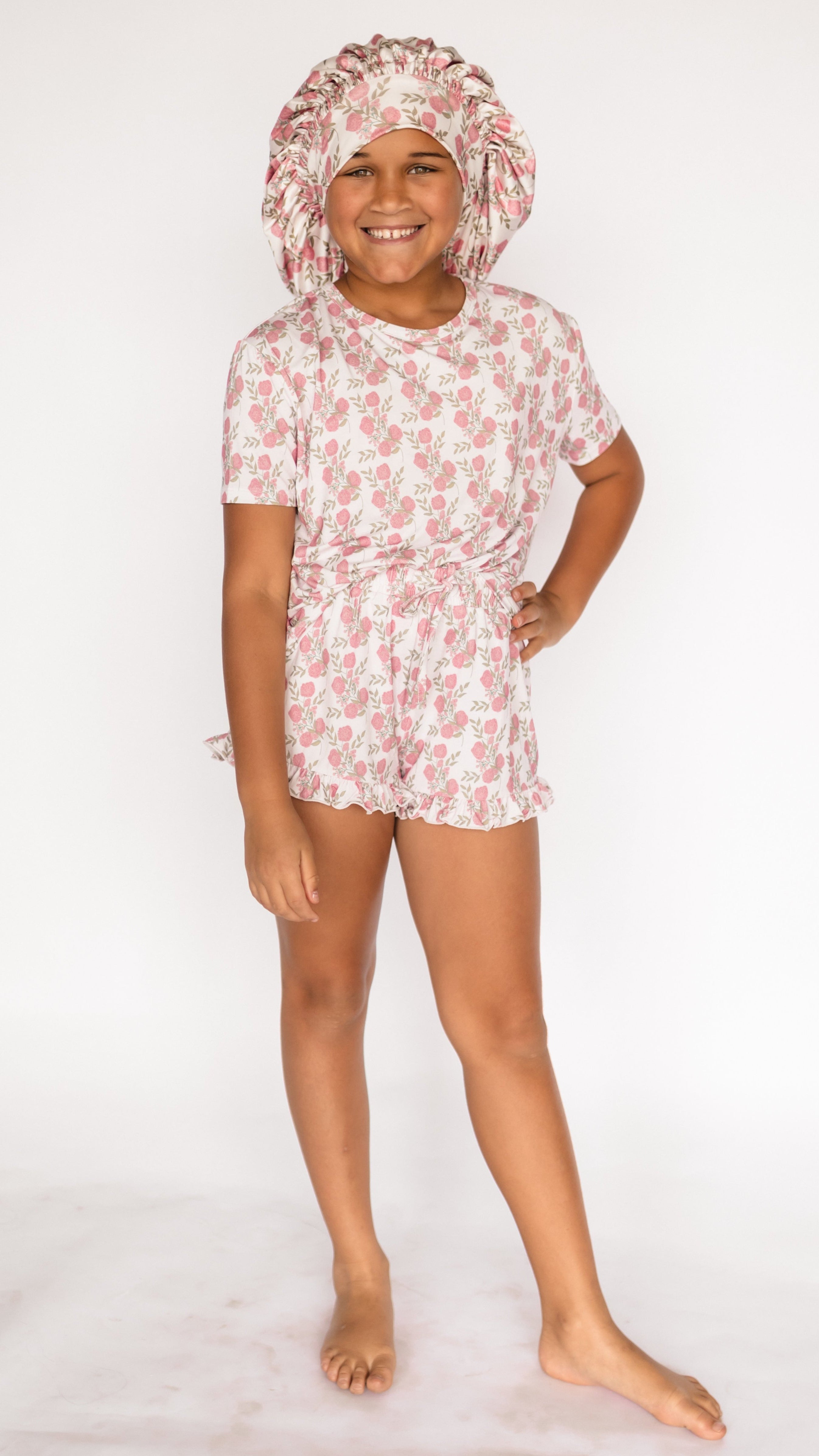 Adult Satin Bonnet in Pink Floral