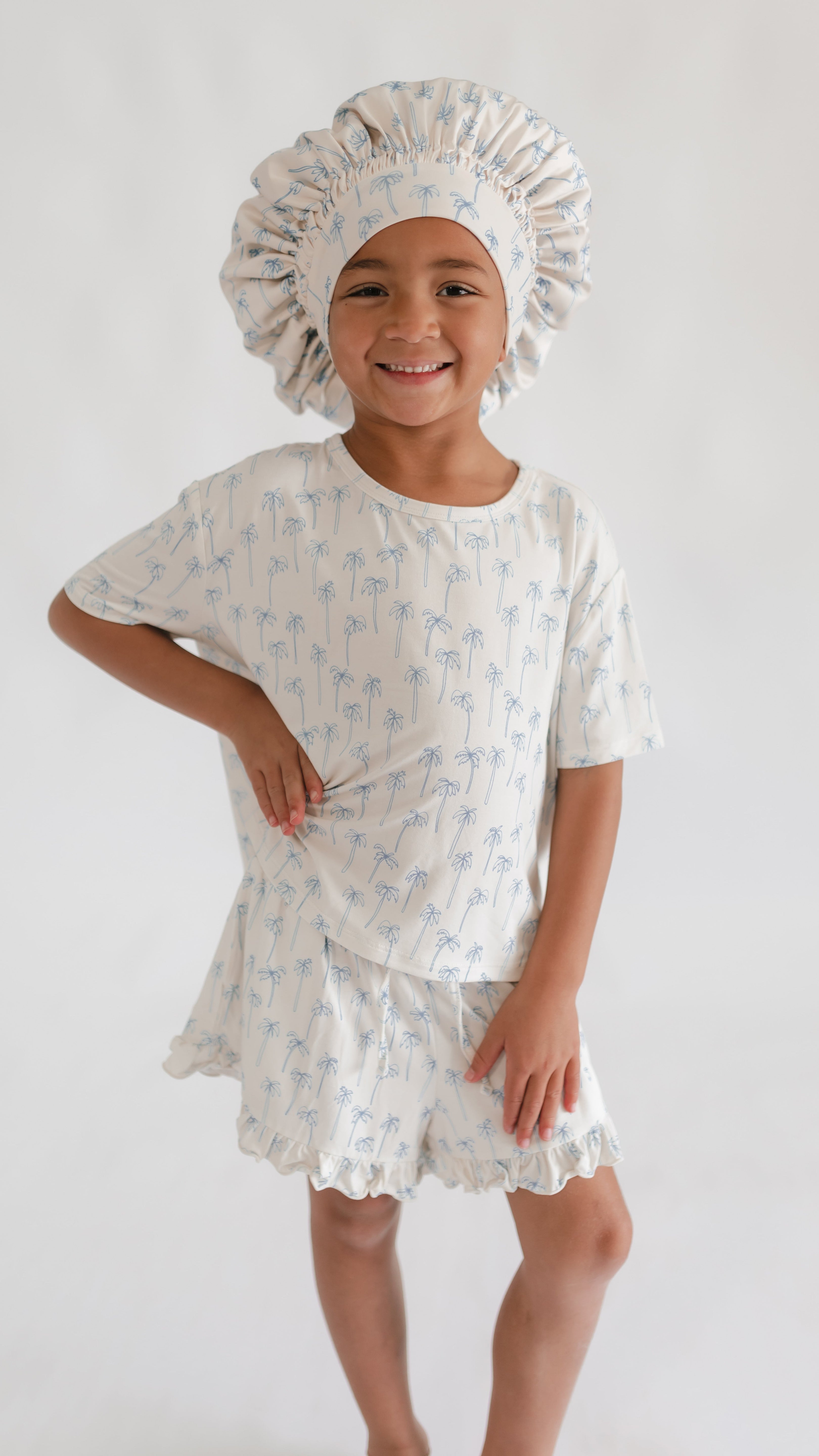 Kids Satin Bonnet in Palm Trees