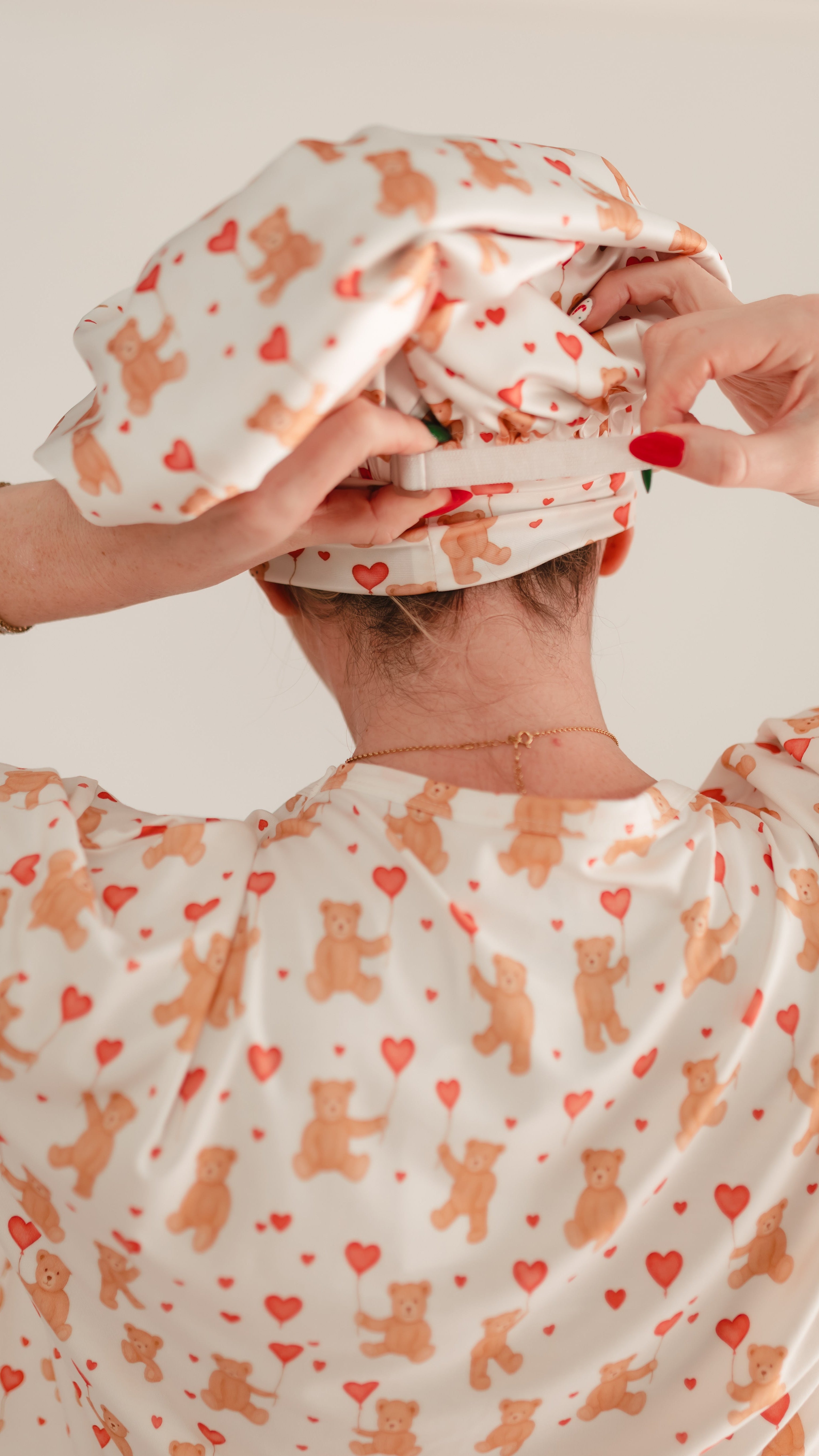 Adult Satin Bonnet in Heart Bears