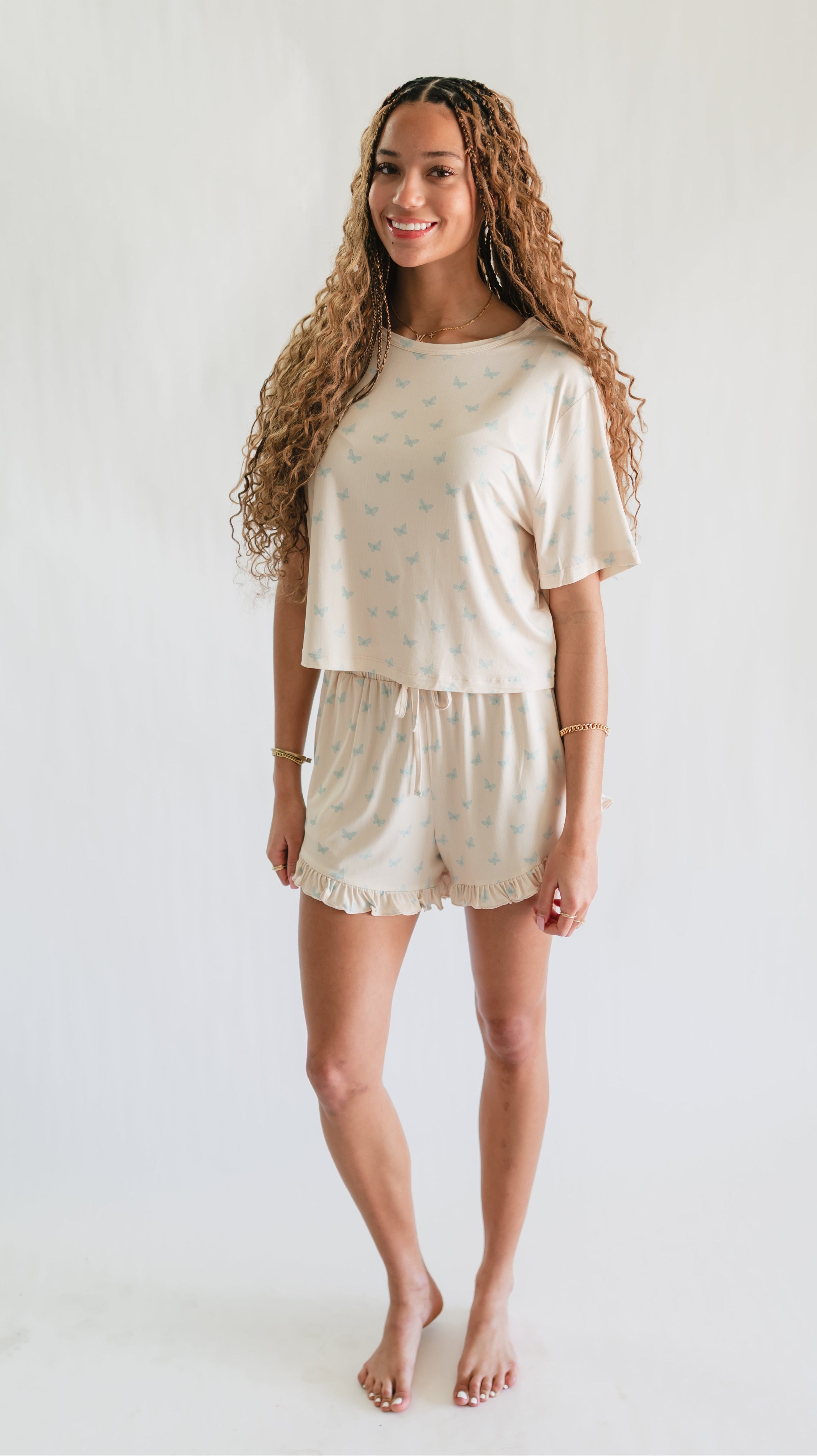 Women’s Ruffle Short Set in Blue Butterflies