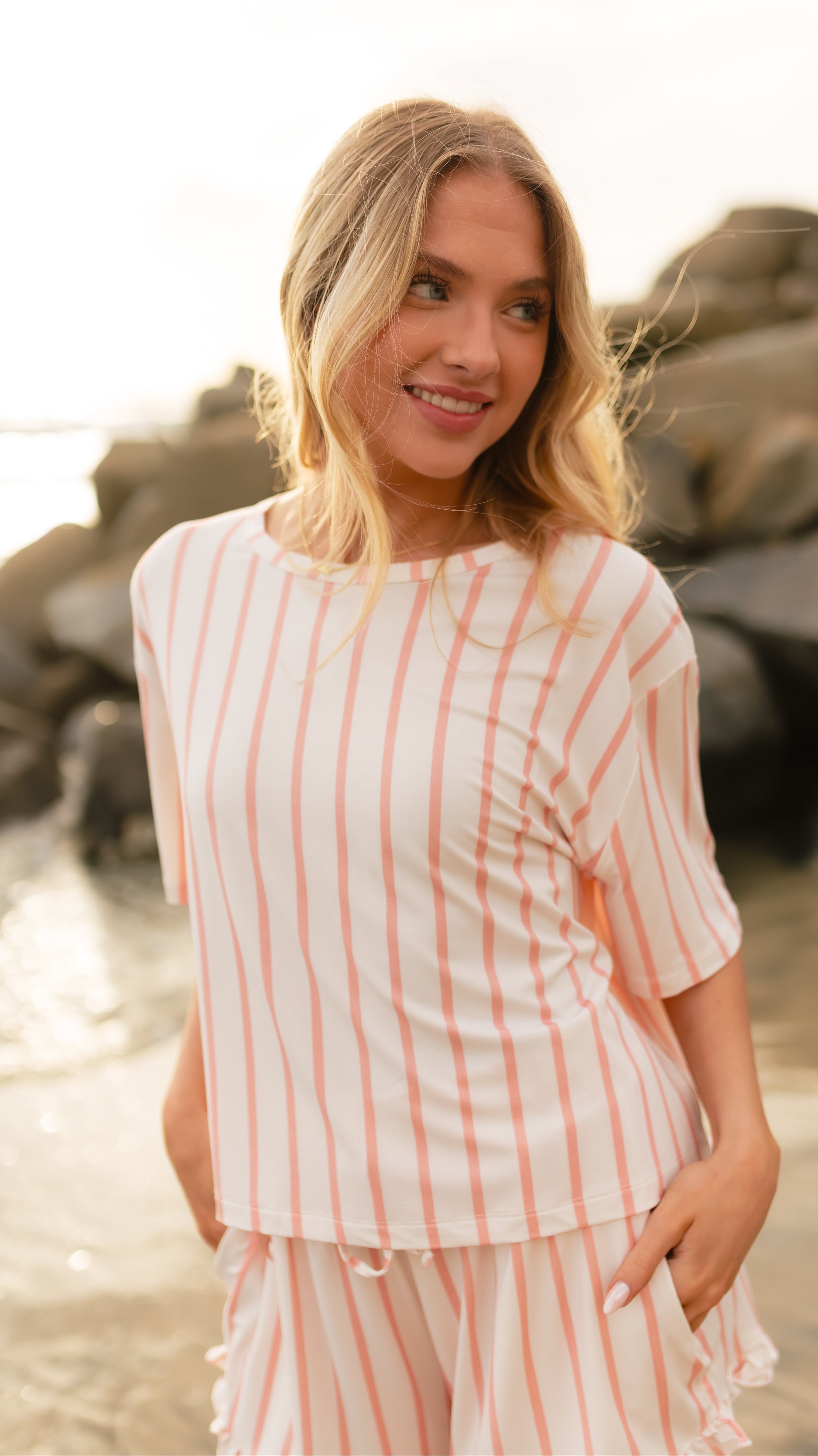 Women's T-Shirt and Pants Set in Blue Striped Floral