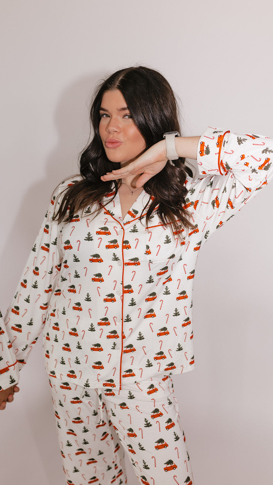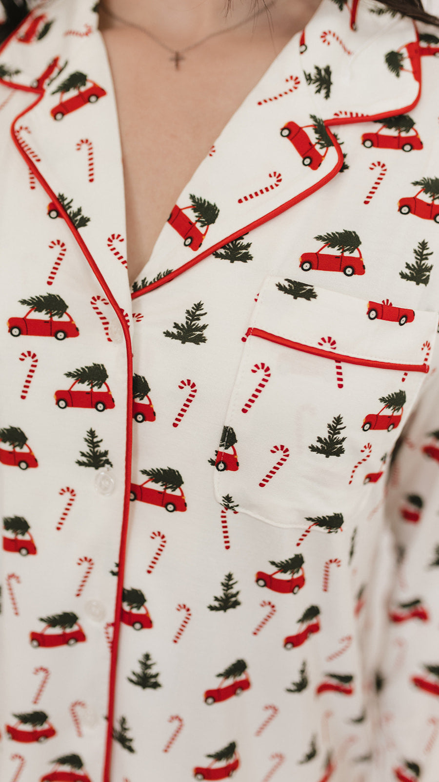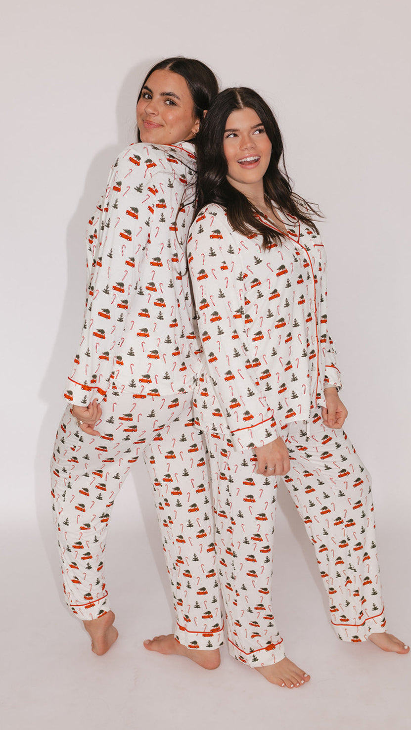 Women's Button Up Set In Candy Cane Lane