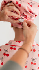 Adult Satin Bonnet in Pink Cherry Bows