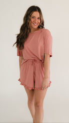 Women’s Ruffle Short Set in Mauve
