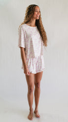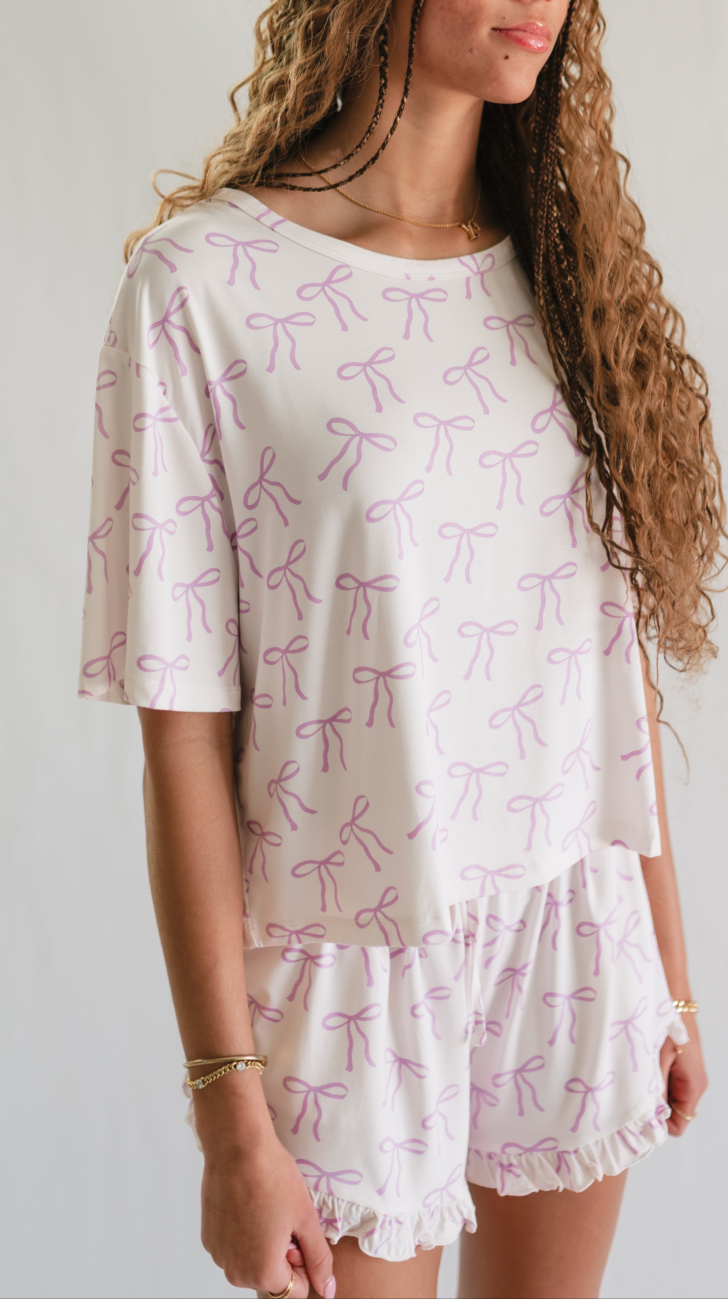 Women’s Ruffle Short Set in Purple Bows