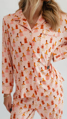 Women's Button Up Set In Pink Ghosts