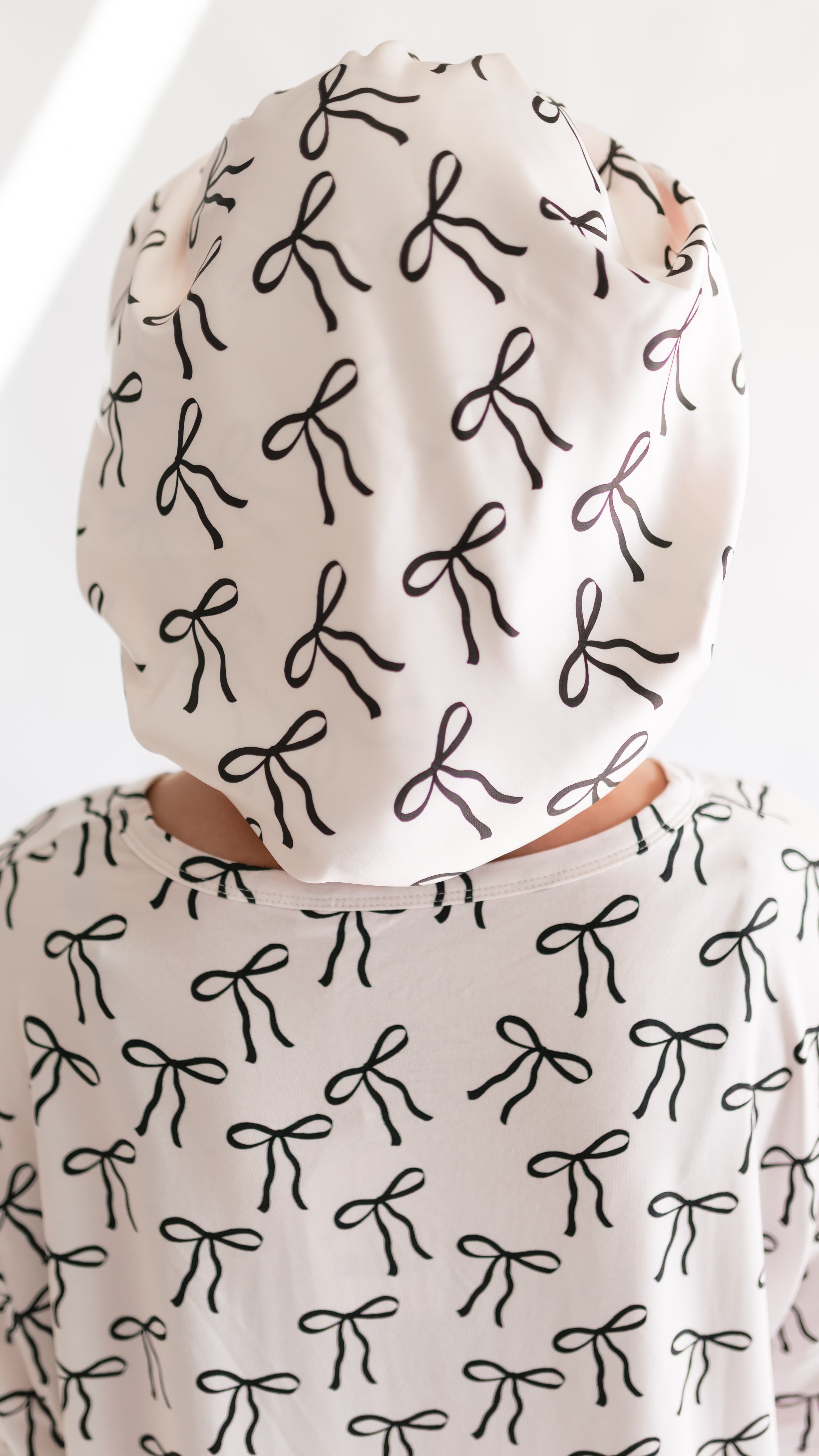 Kid's Satin Bonnet in Black Bows