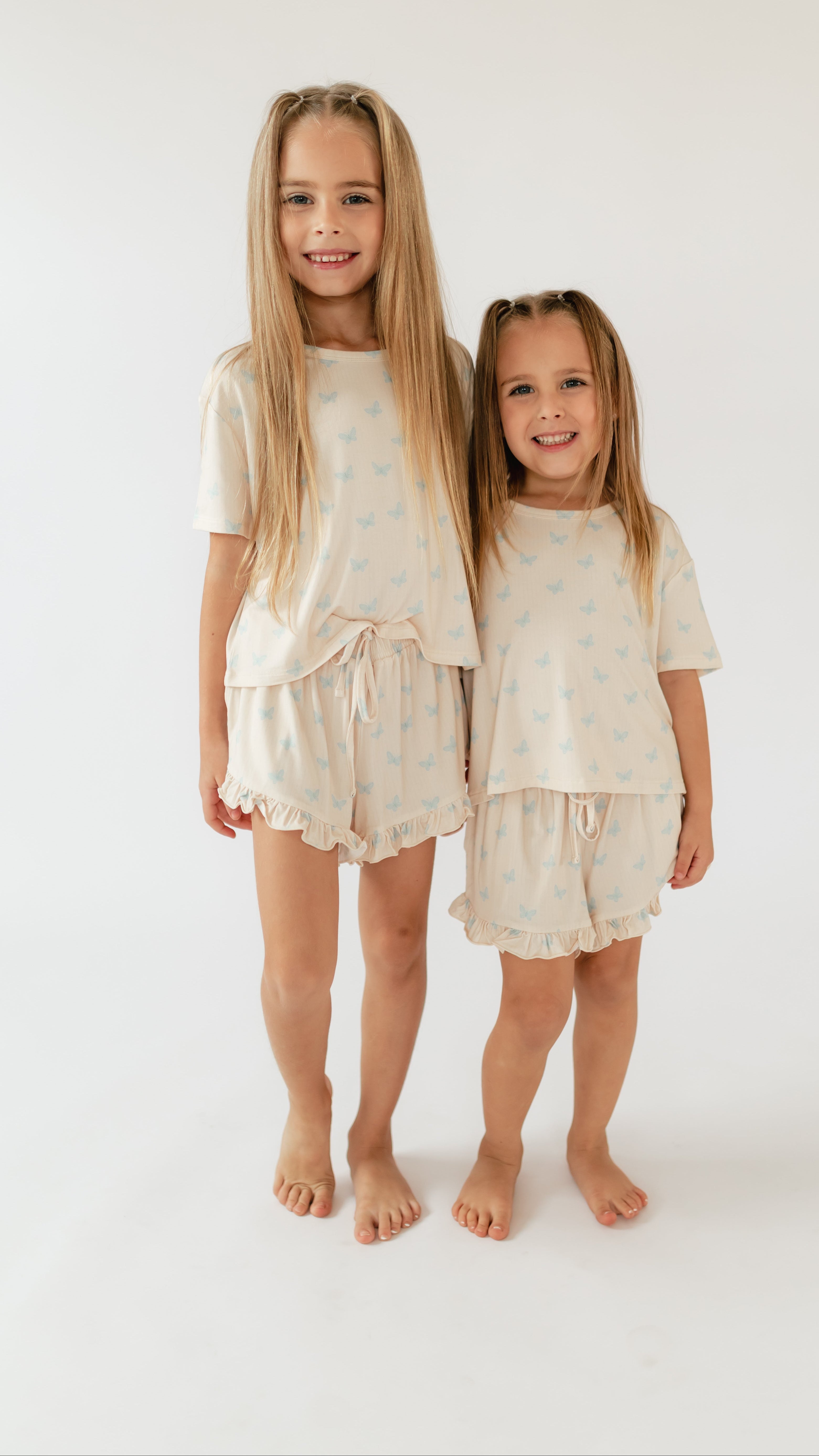 Girl's Ruffle Short Set in Blue Butterflies