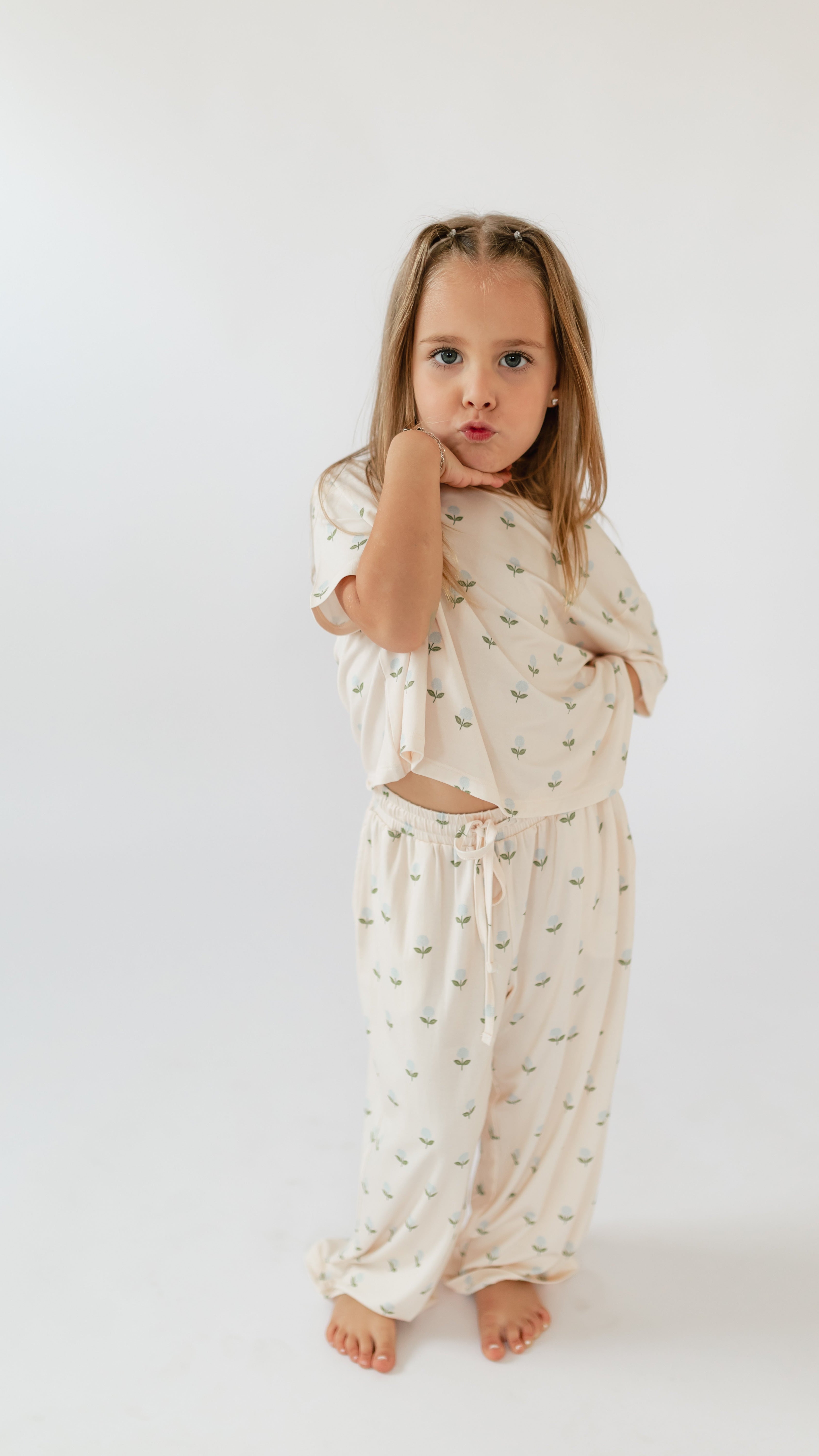 Girl's T-Shirt and Pants Set in Hydrangea Dream