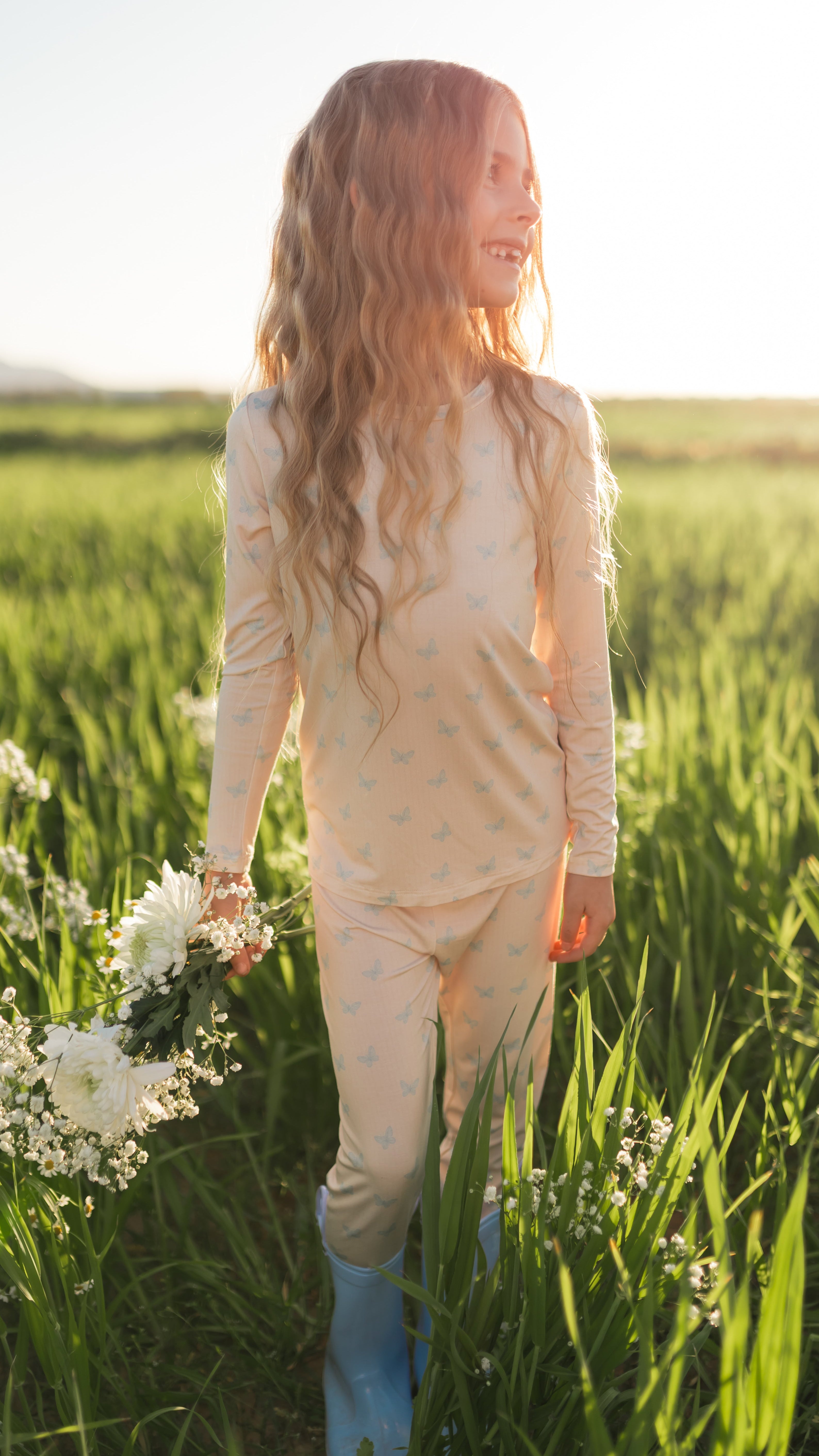 Youth Pajama Set in Blue Butterflies