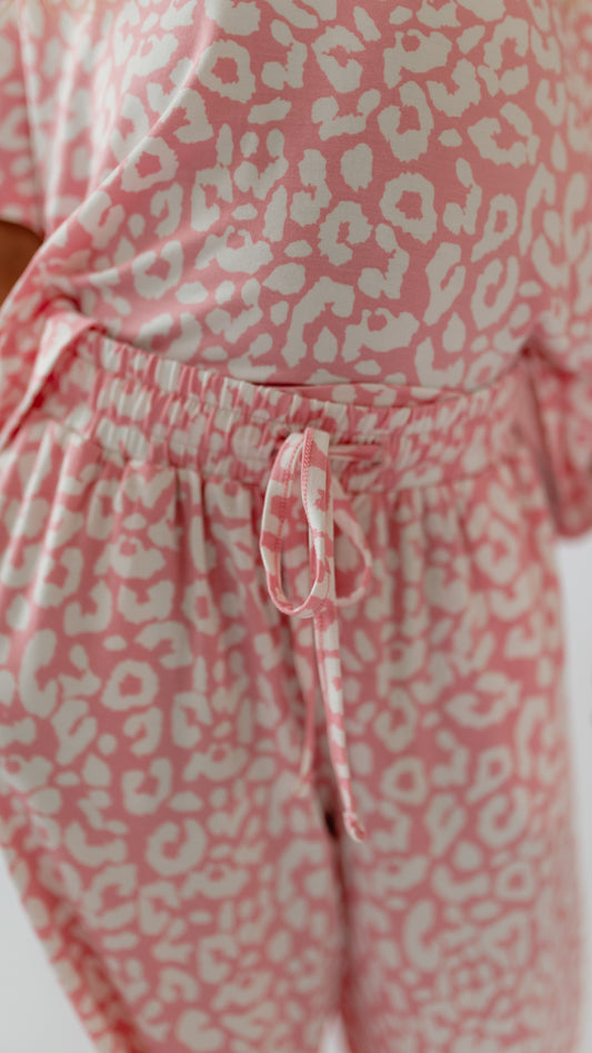 Girl's T-Shirt and Pants Set in Pink Leopard