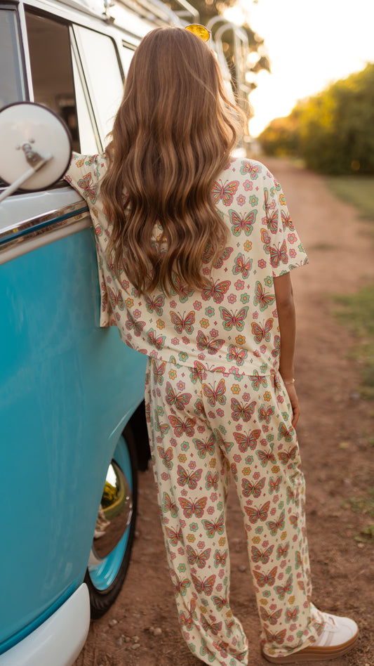 Girl's T-Shirt and Pants Set in Groovy Butterfly