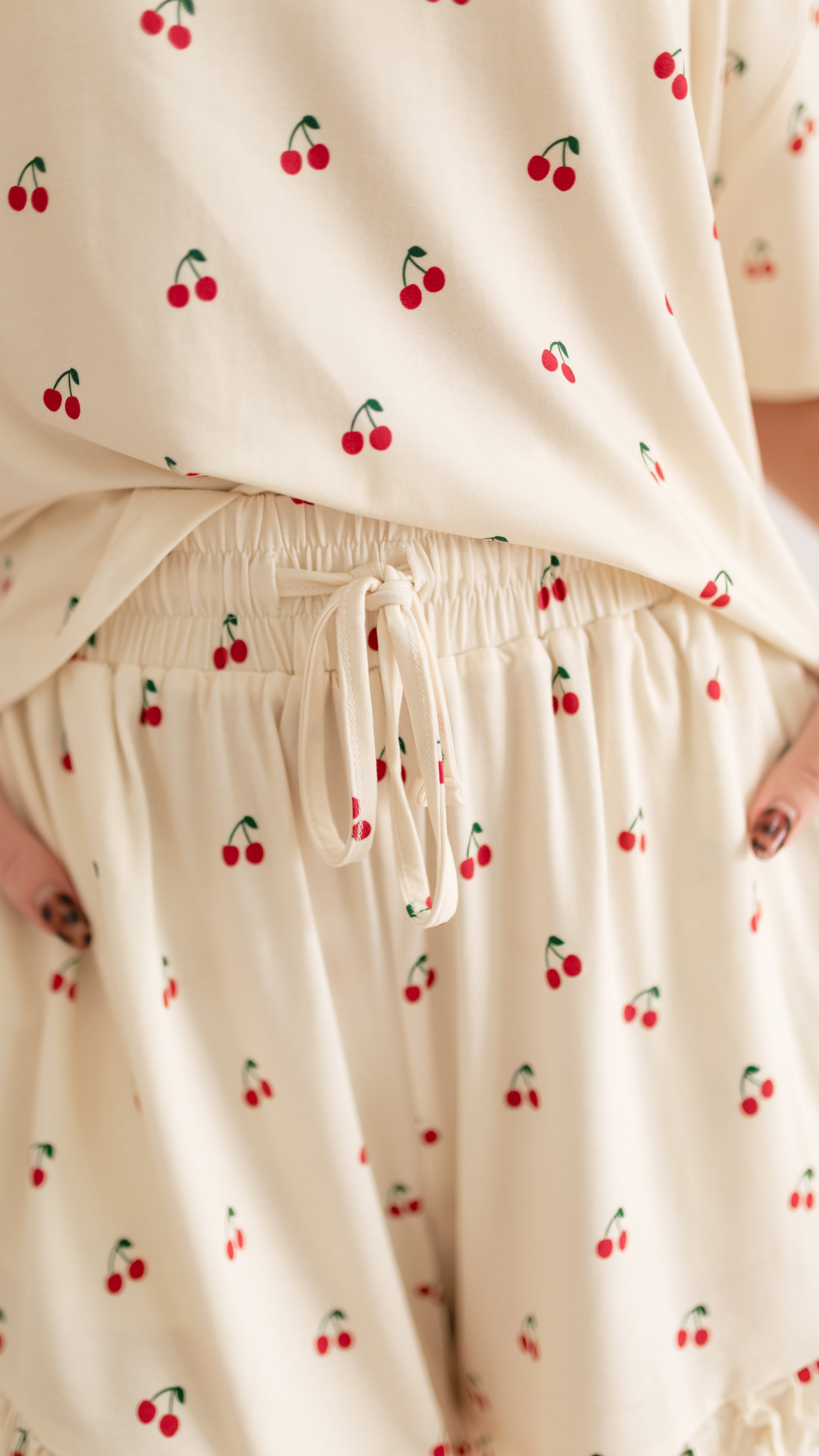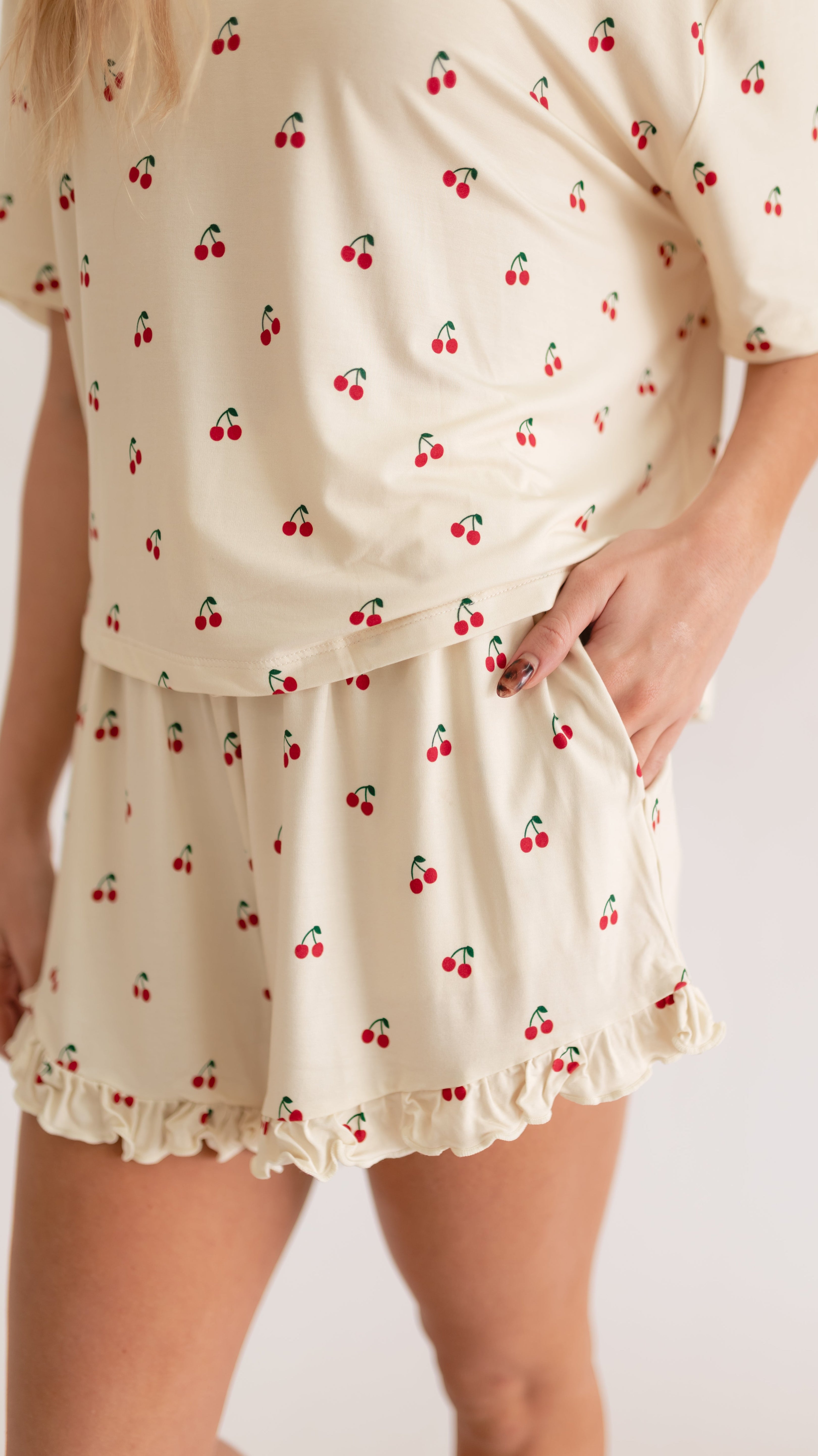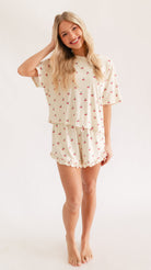 Women’s Ruffle Short Set in Cream Cherries