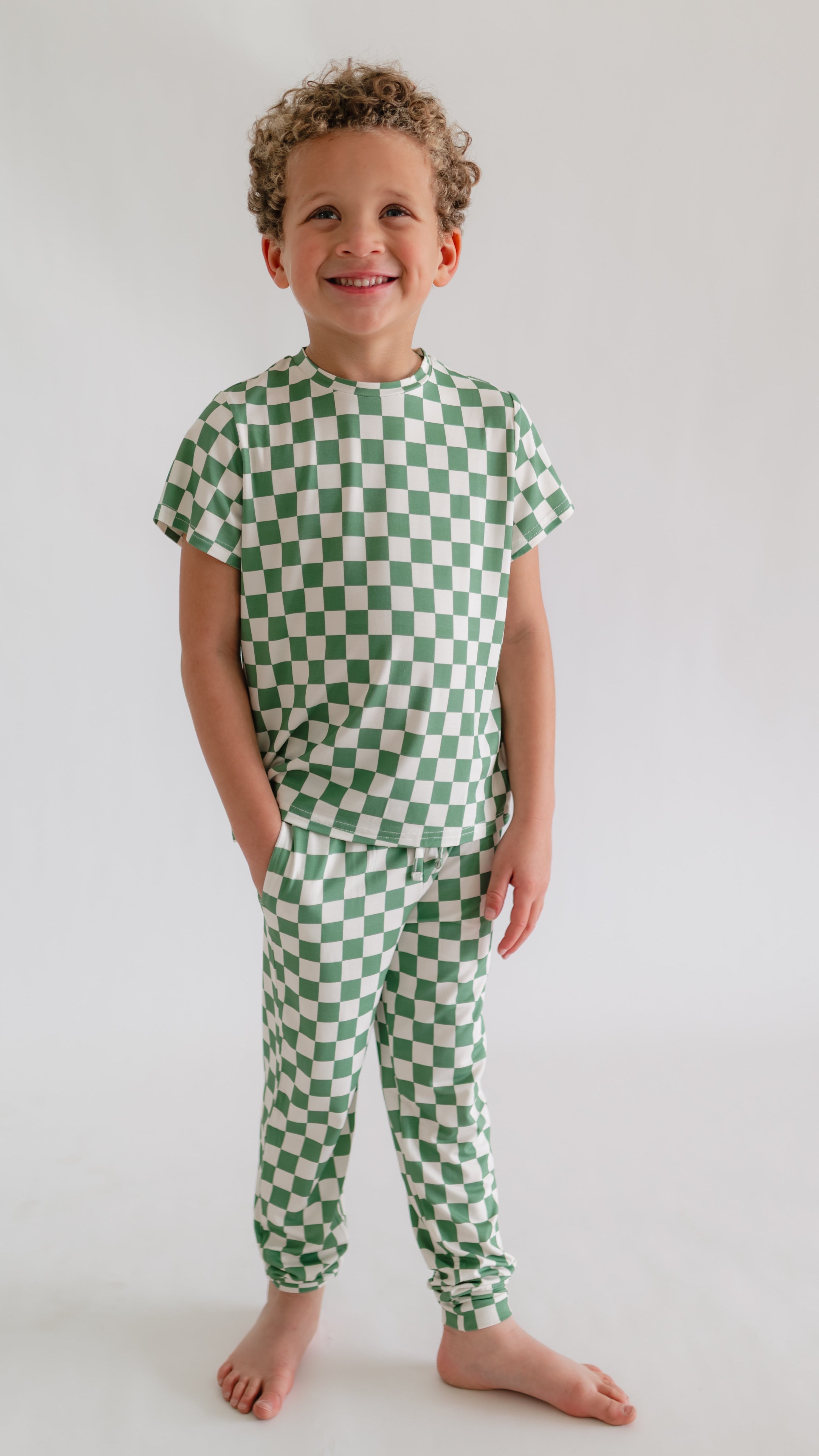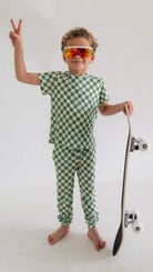 Youth Jogger Set In Green Checkered