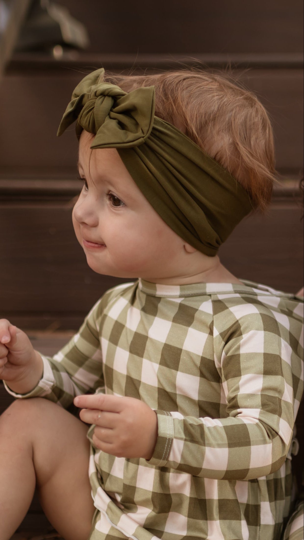 Infant Knot Head Bow in Neutral Gingham