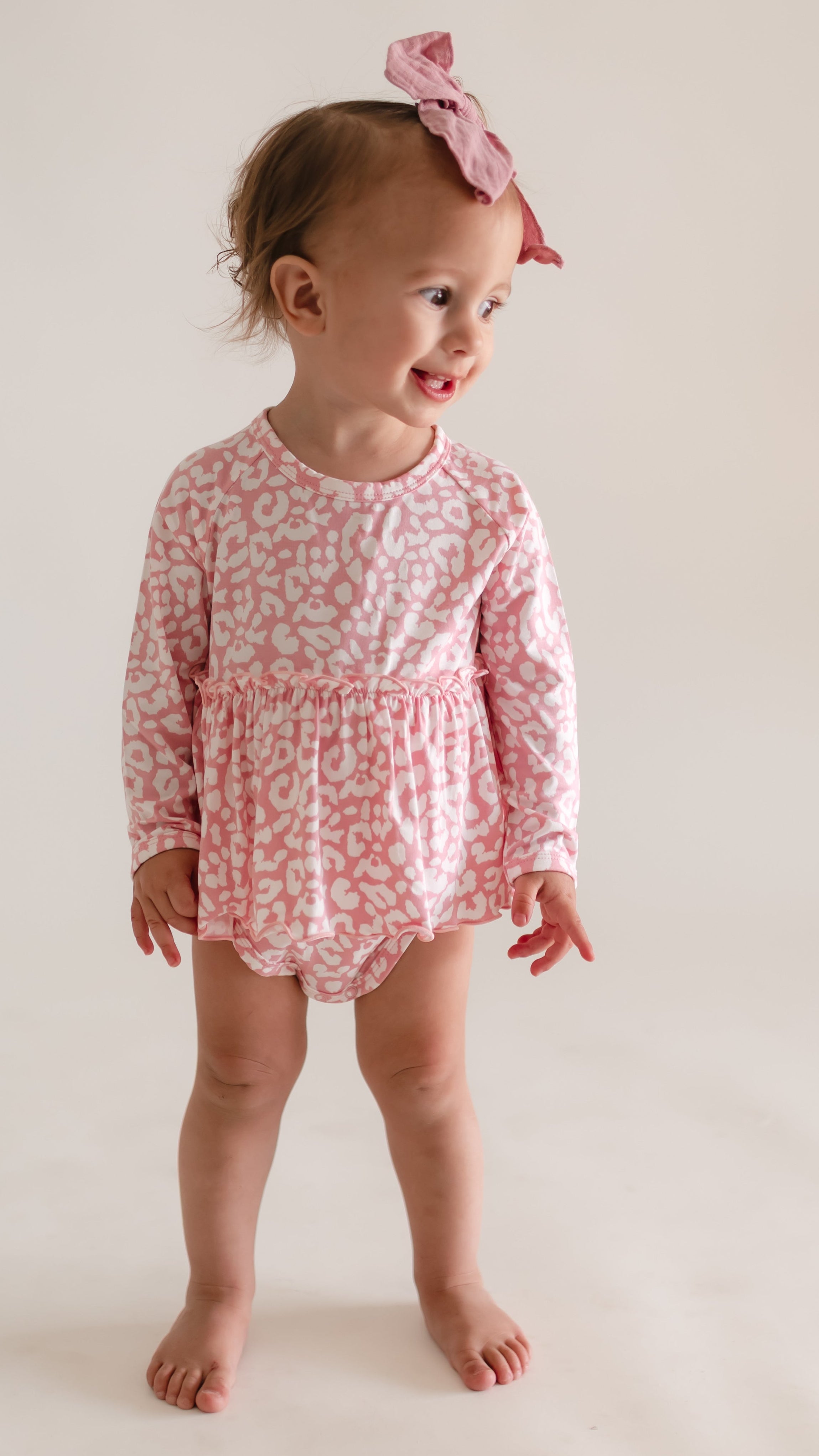 Infant Long Sleeve and Skirt Onesie in Pink Leopard