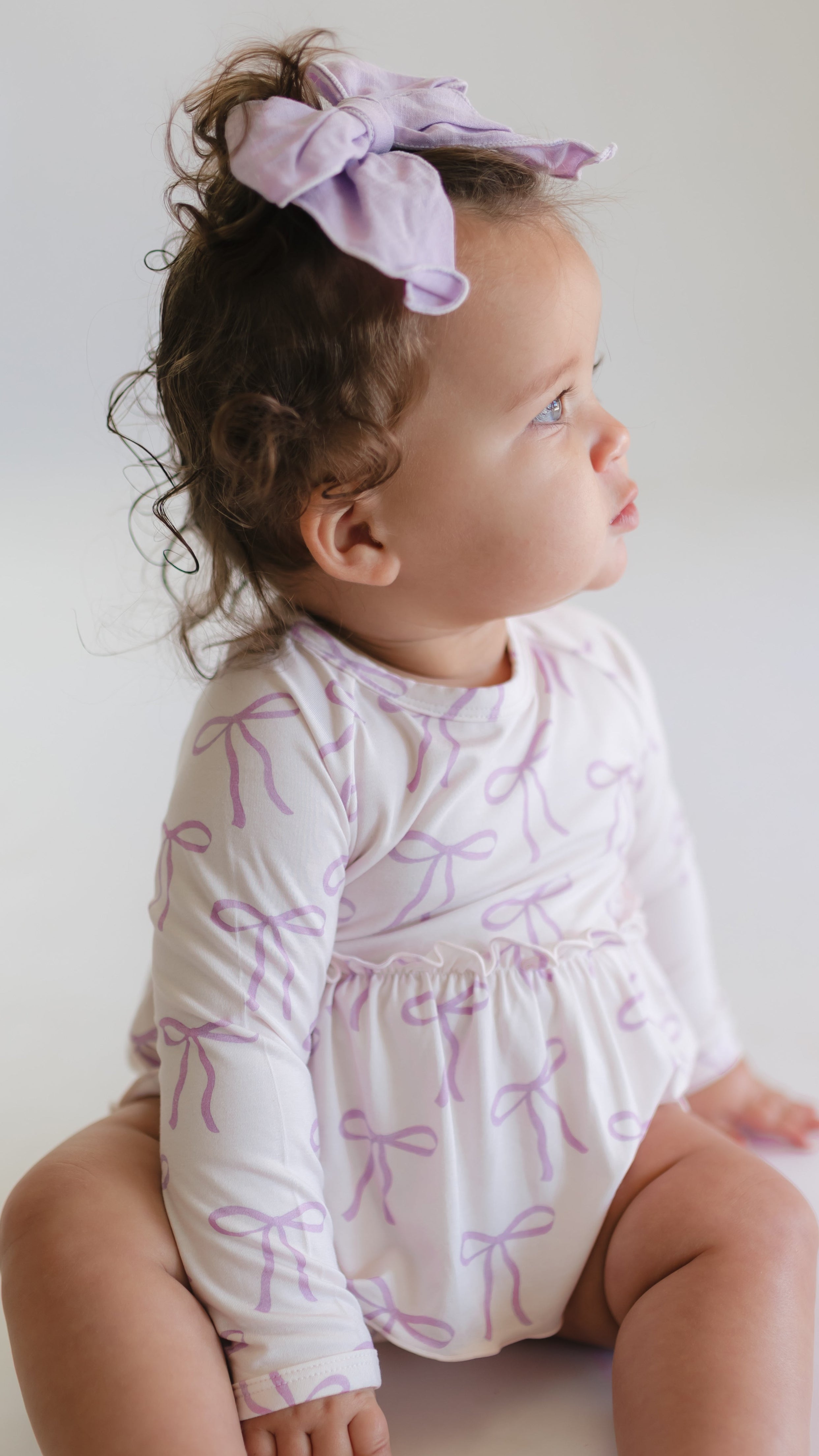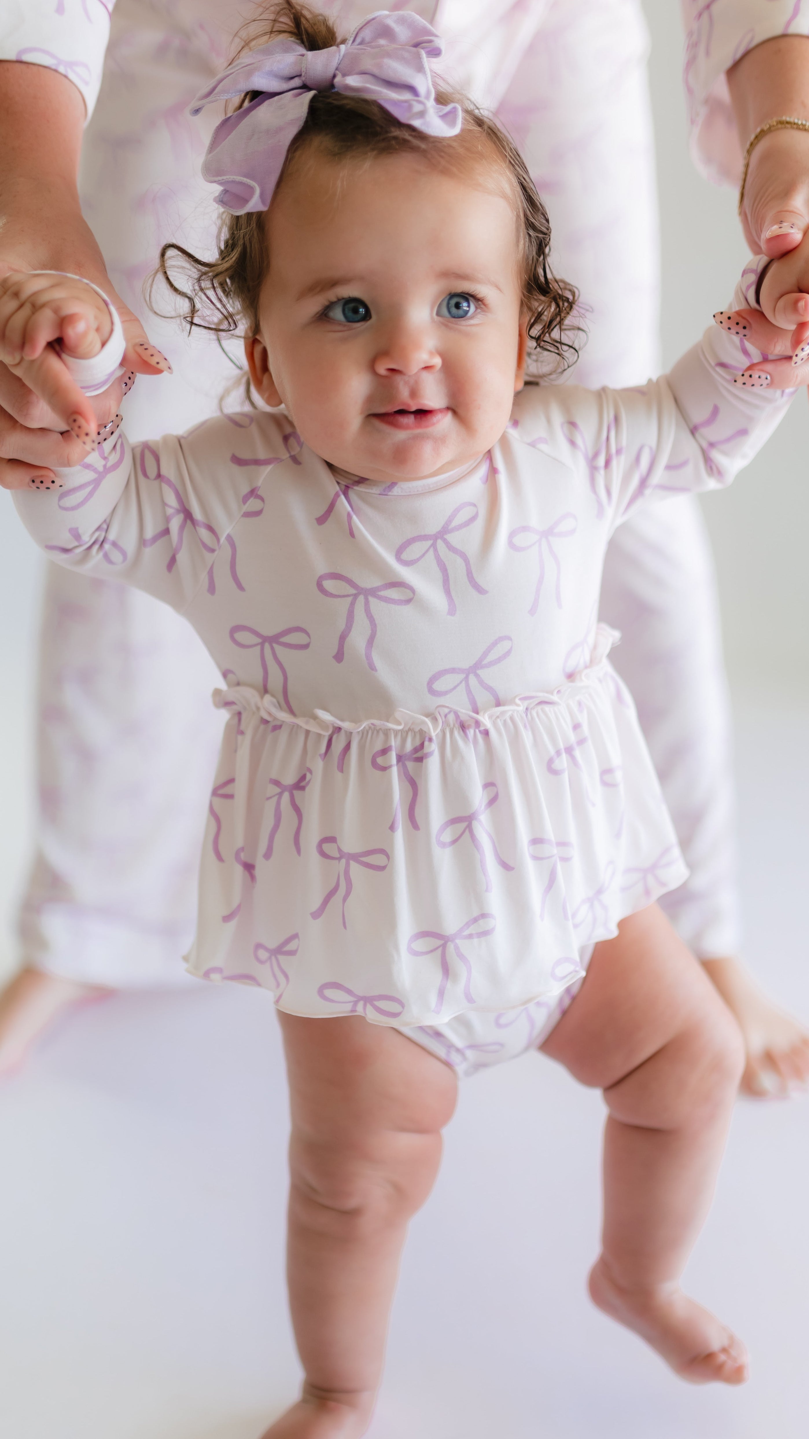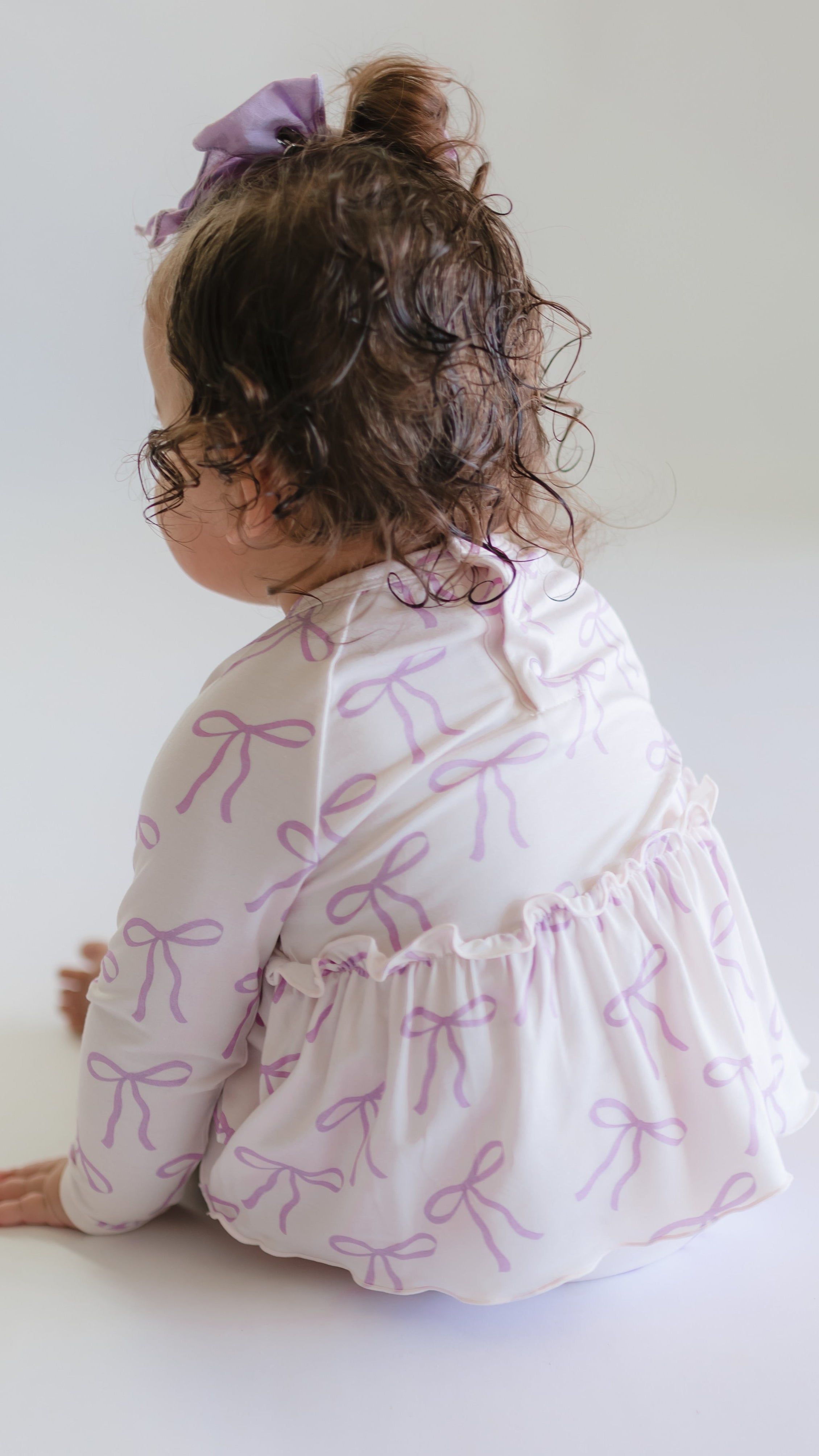 Infant Long Sleeve and Skirt Onesie in Purple Bows