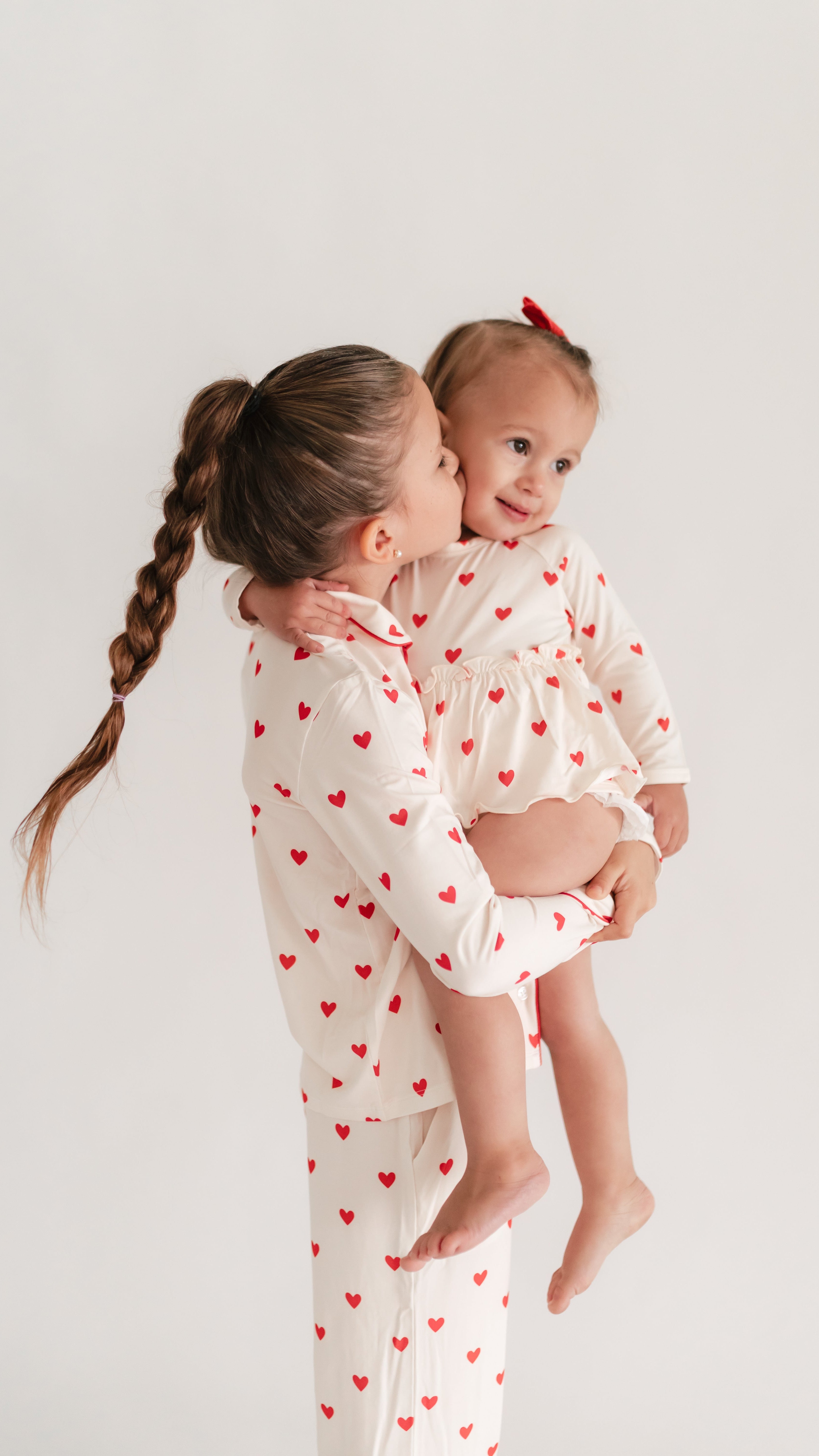 Infant Long Sleeve and Skirt Onesie in Cream Valentine Hearts
