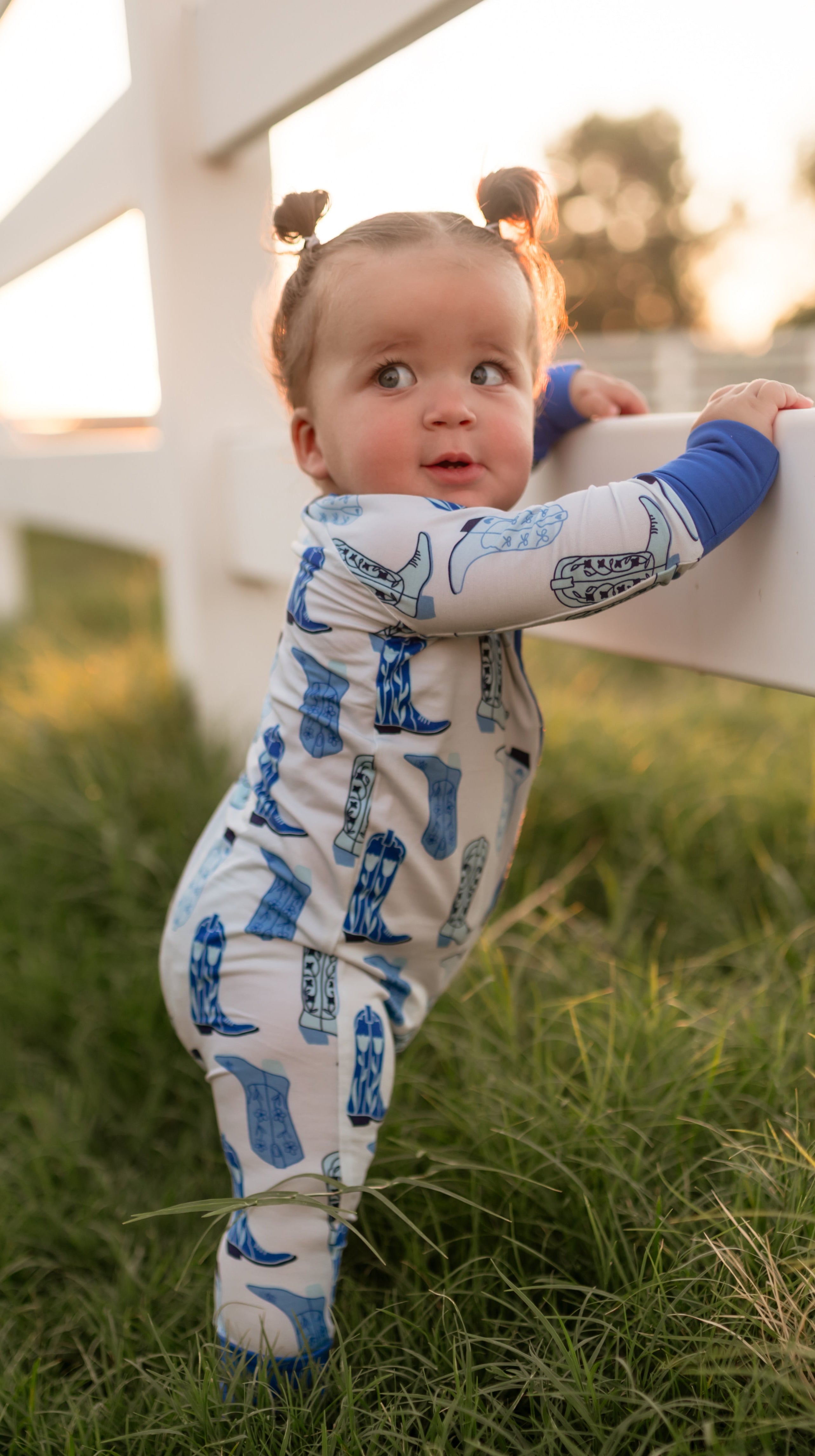 Infant Romper in Blue Western Boots