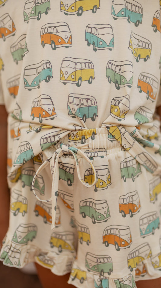 Girl's Ruffle Short Set in Groovy Bus
