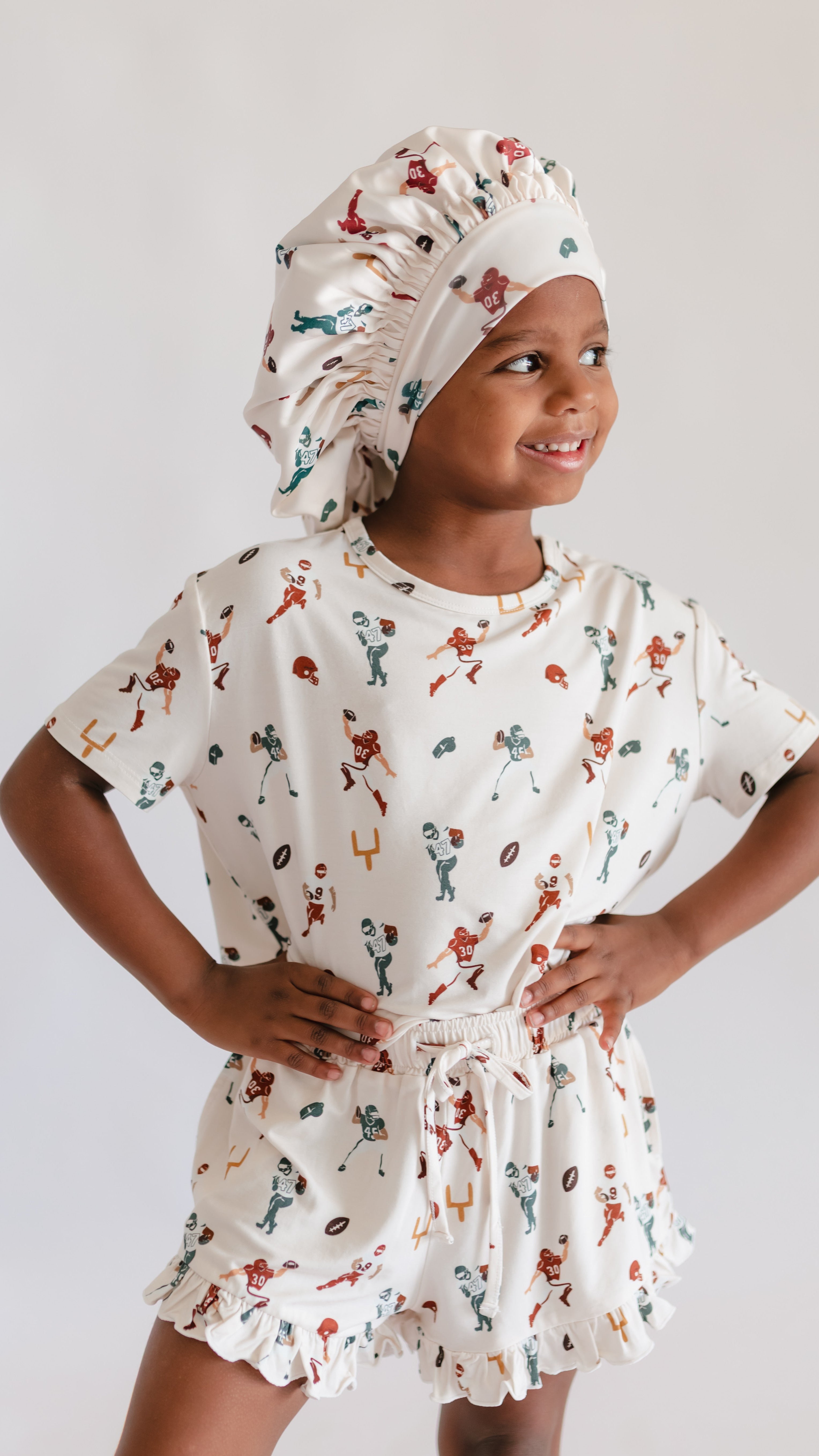 Kids Satin Bonnet in Football