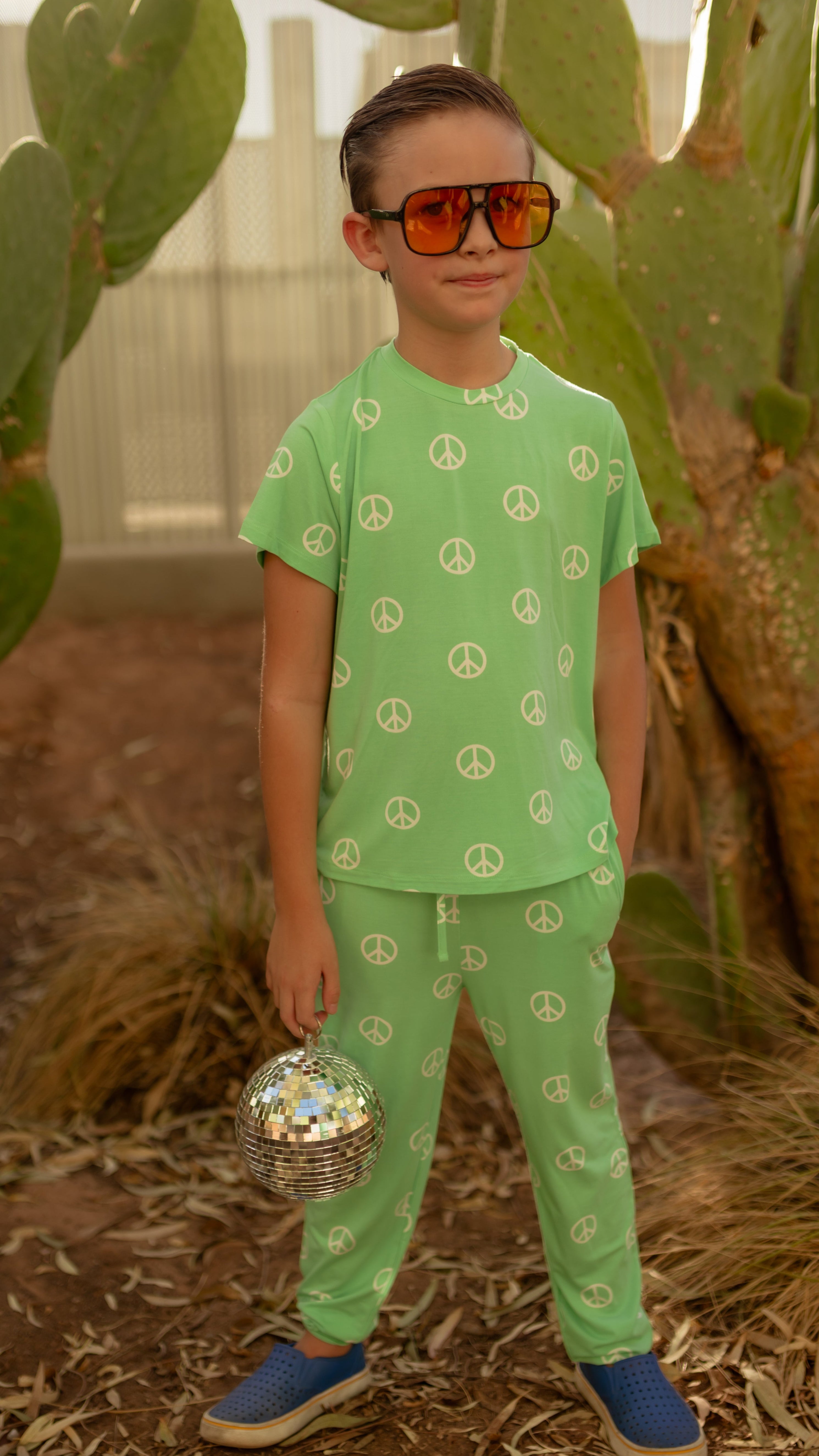 Youth Jogger Set In Groovy Peace Signs