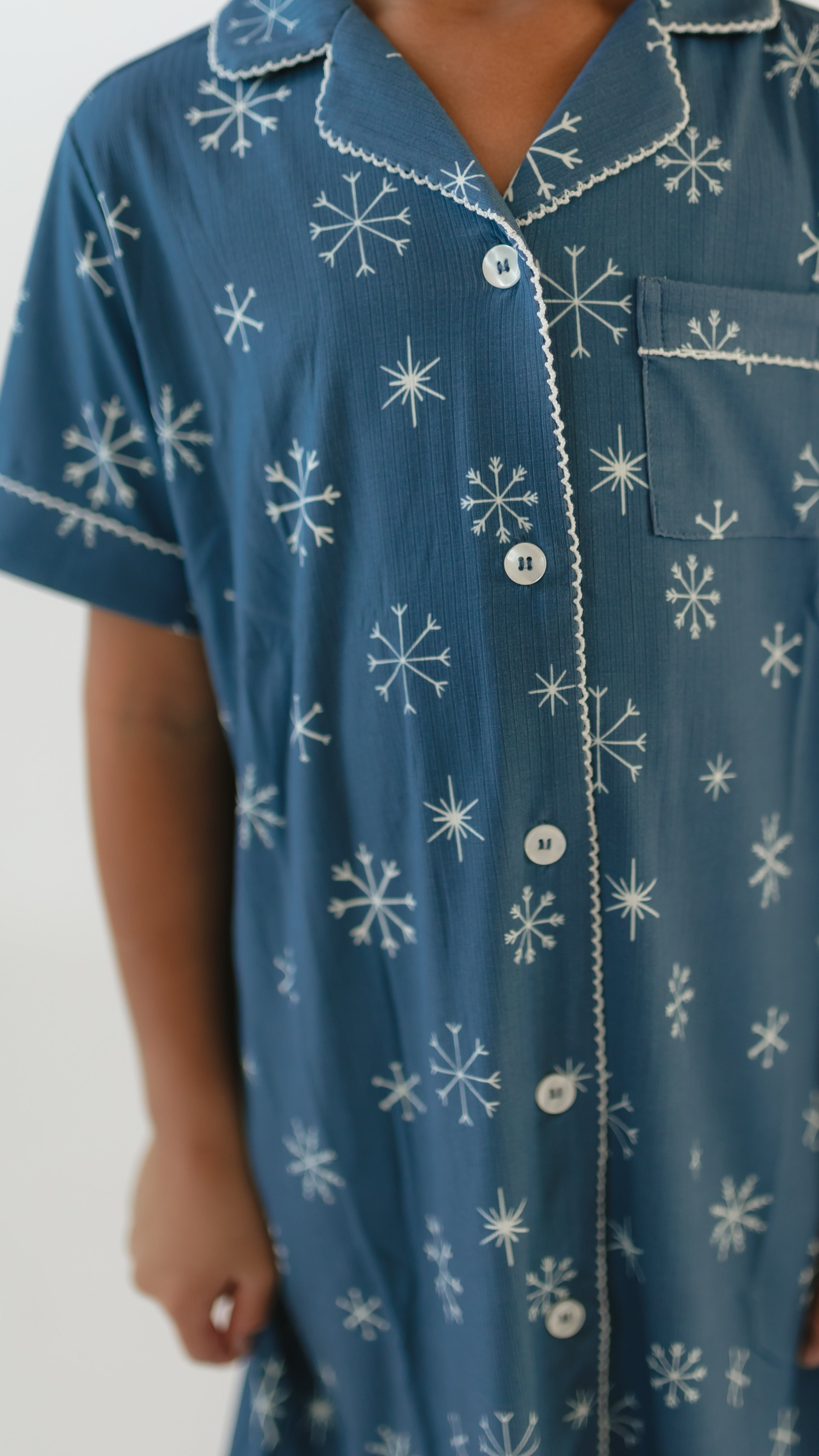 Women's Button Up Set In Snowflakes