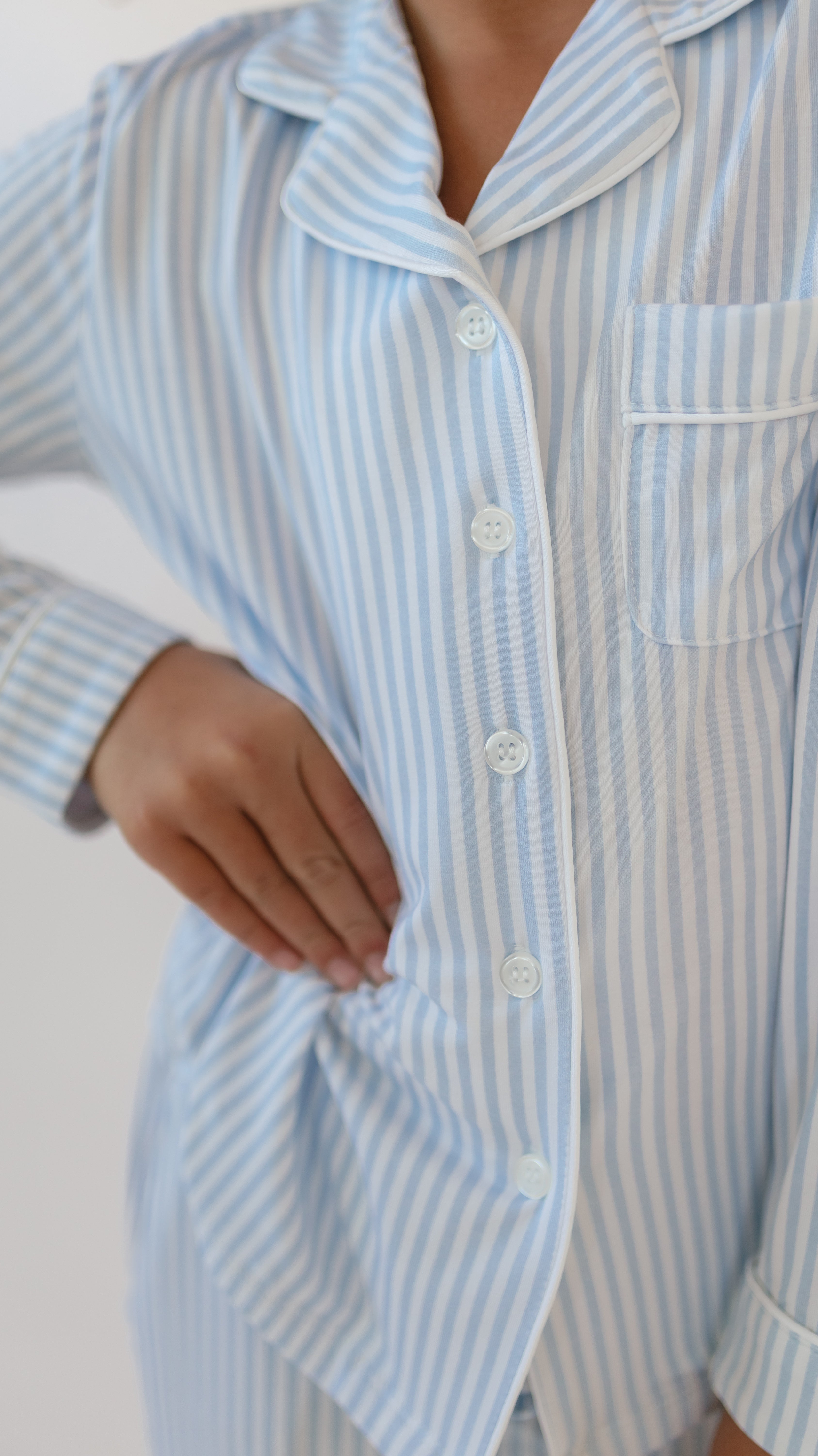 Women's Button Up Set In Blue Pin Stripes