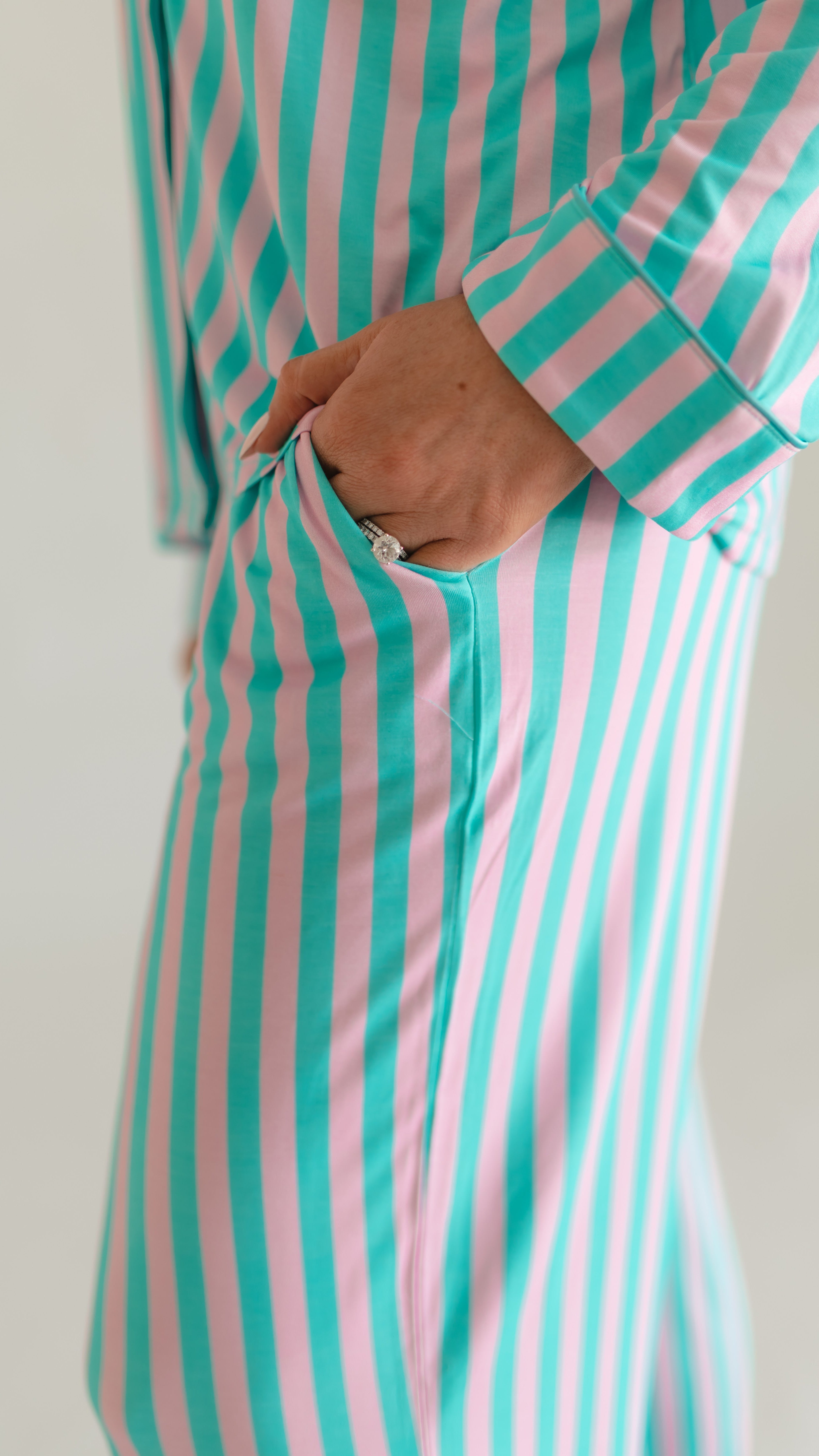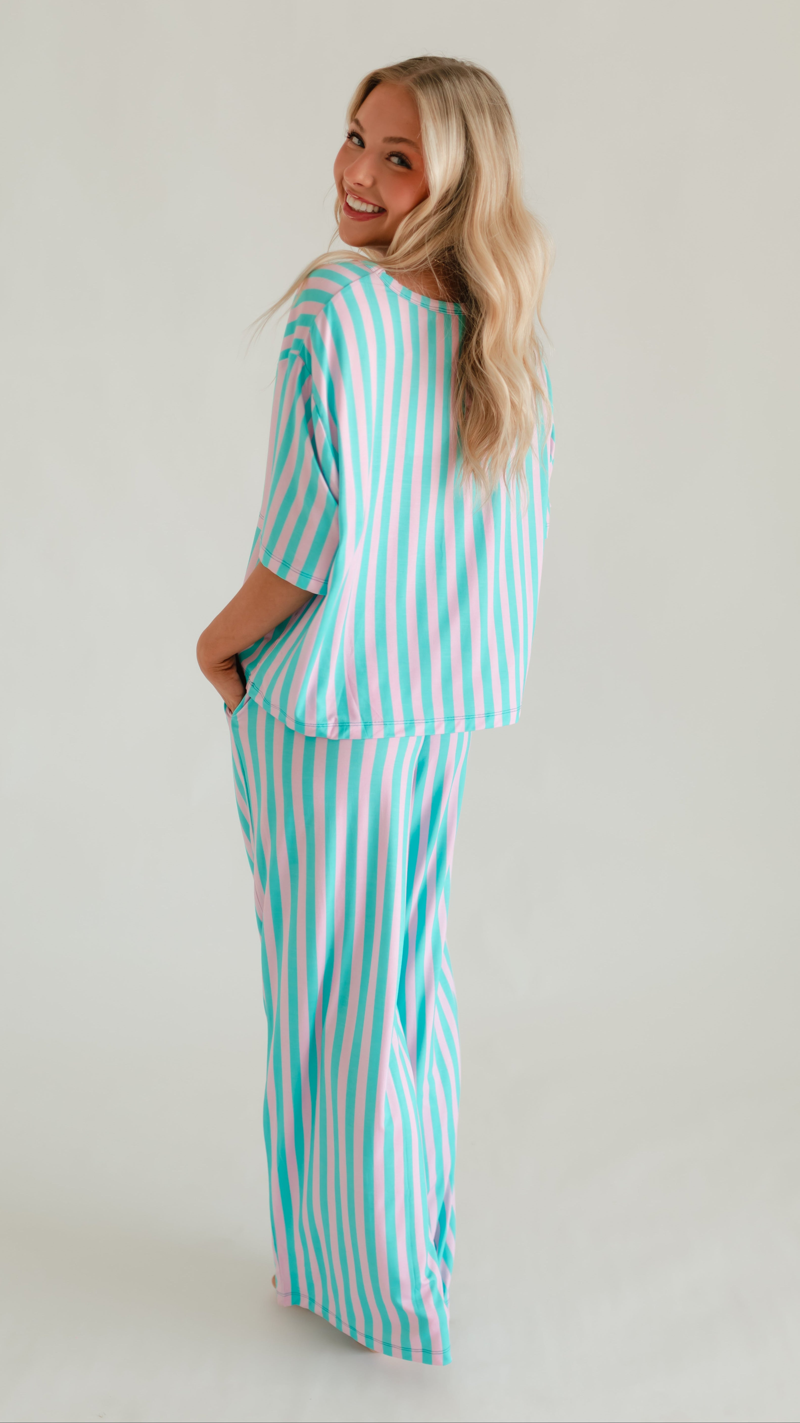 Women's T-Shirt and Pants Set in Cotton Candy Stripes