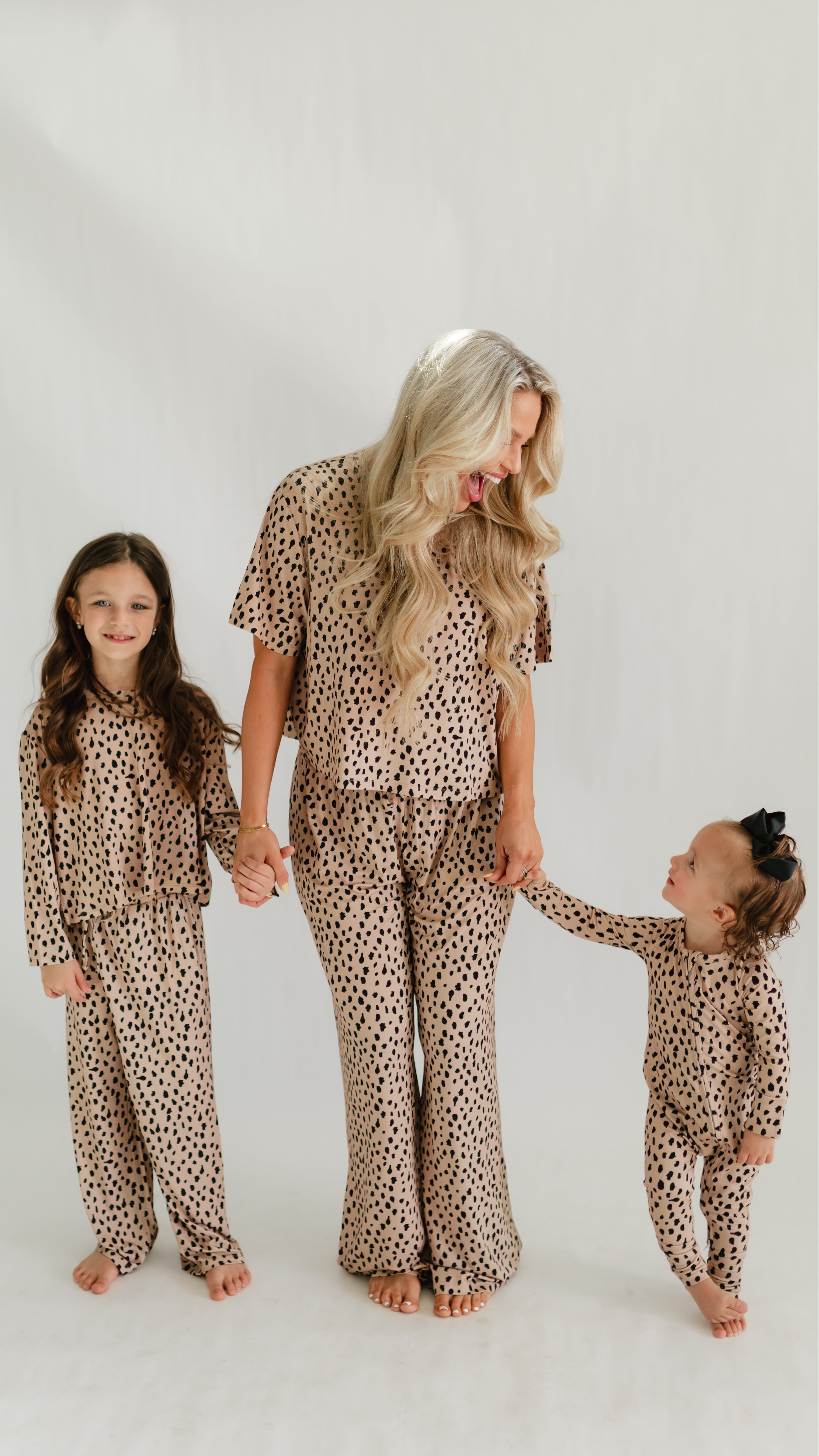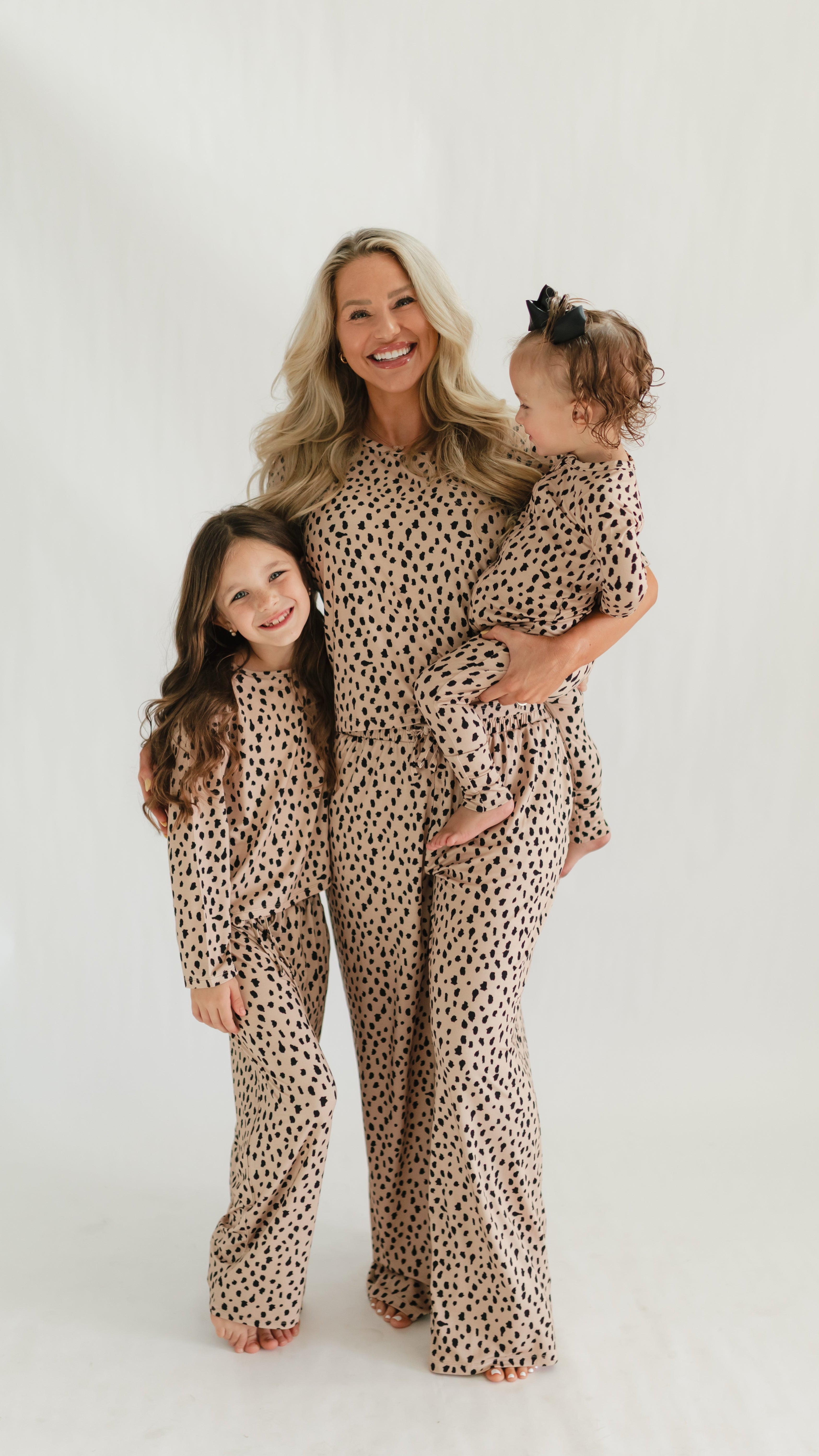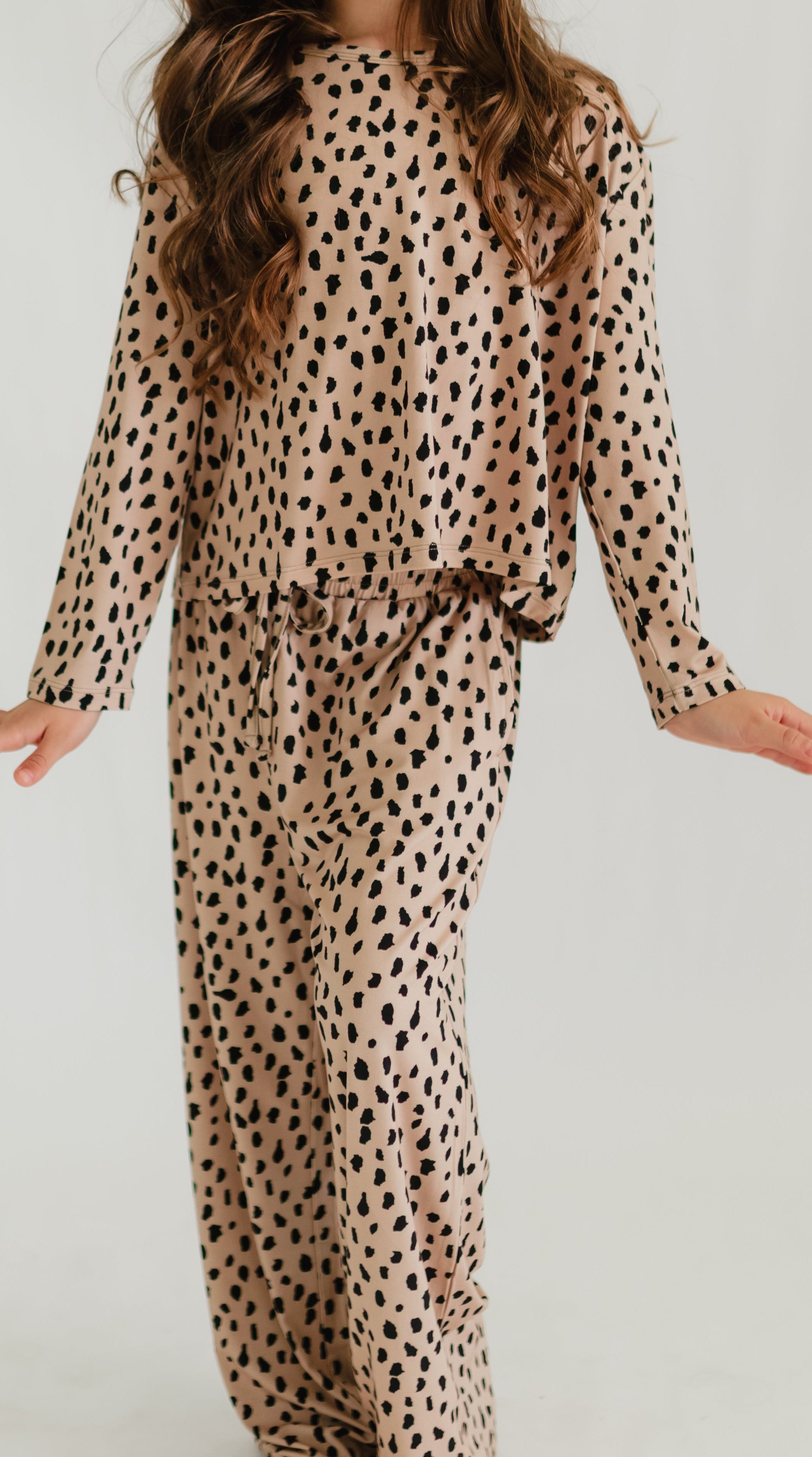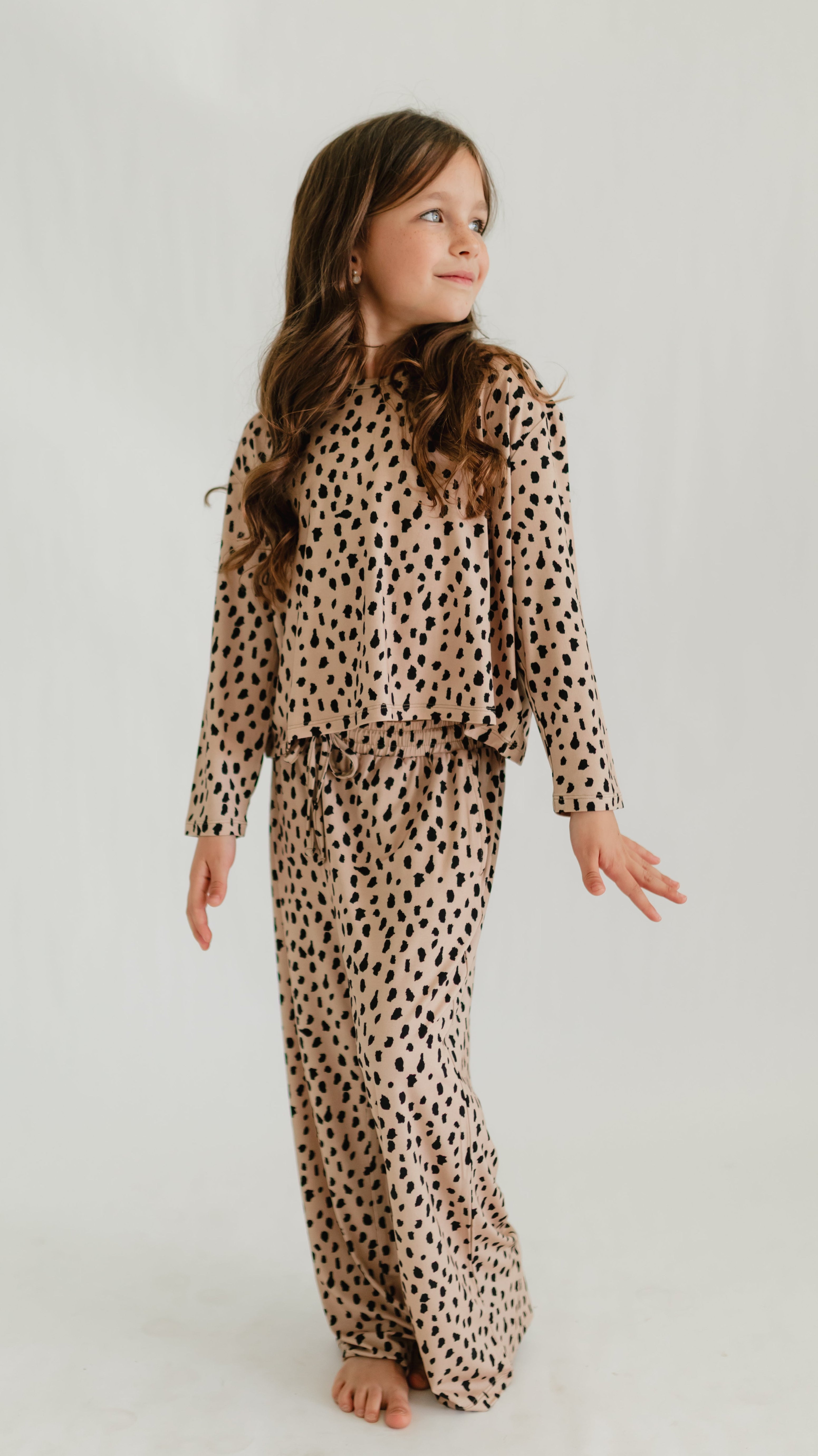 Girl's Long Sleeve and Pants Set in Brown Cheetah