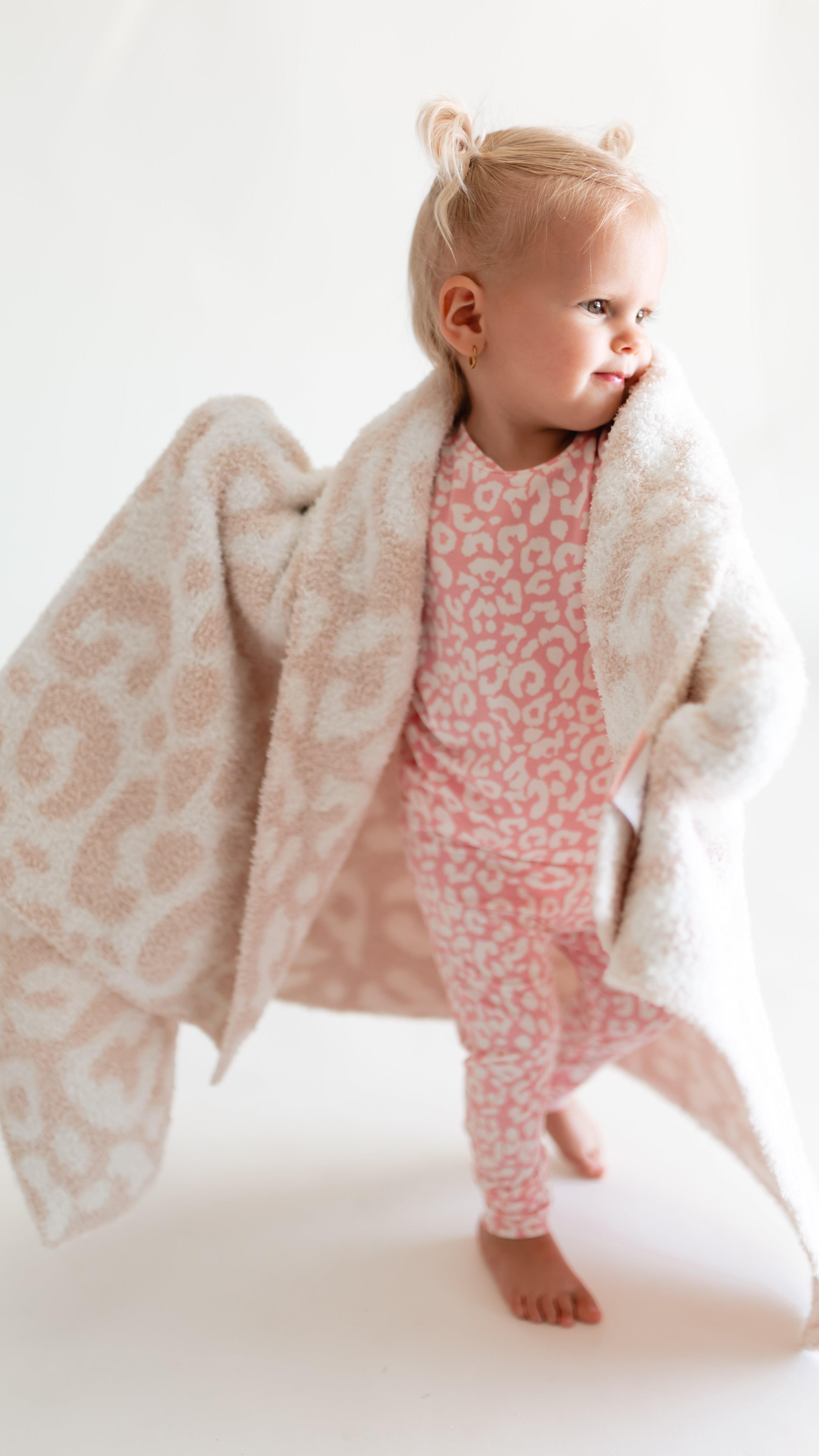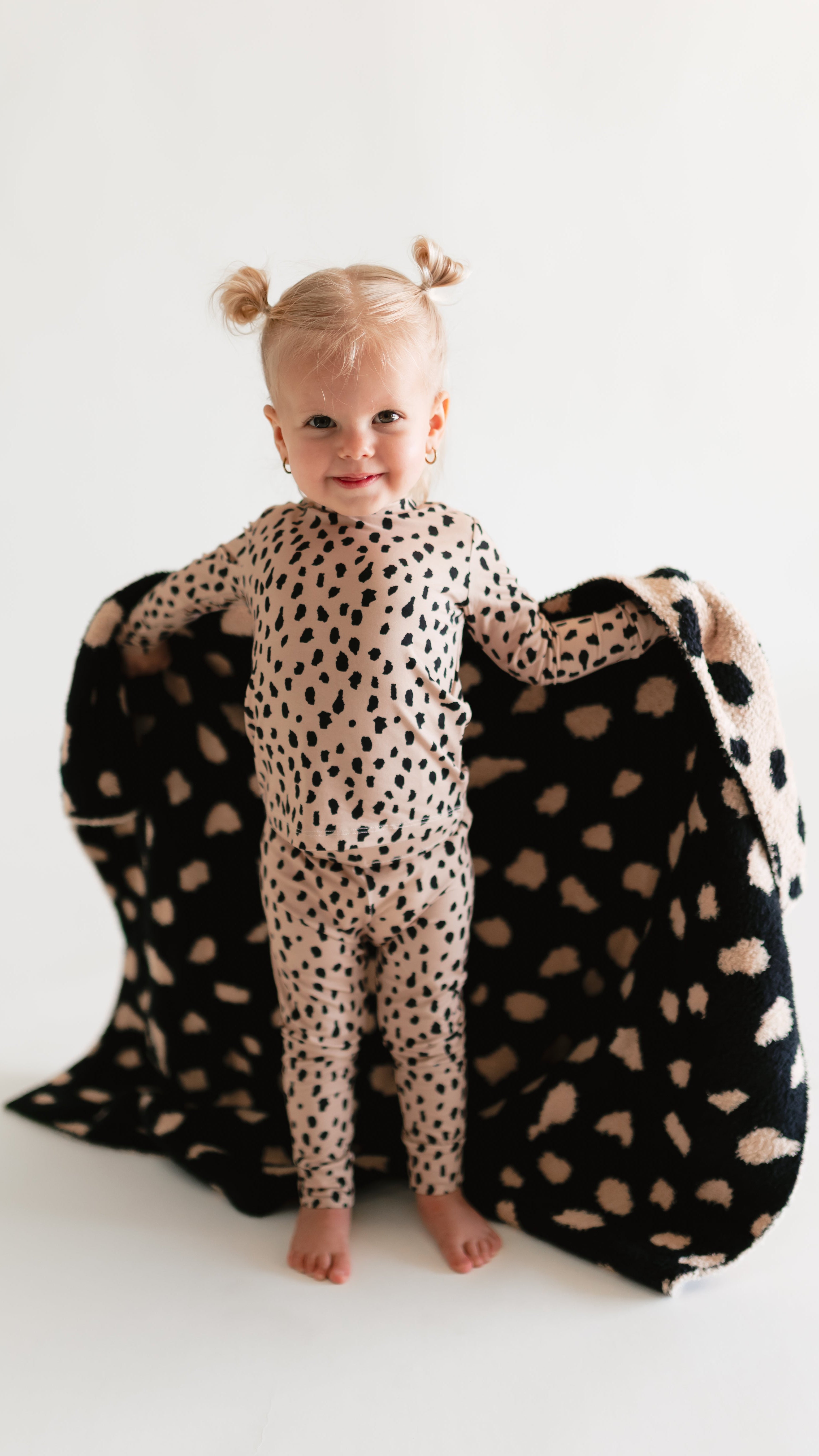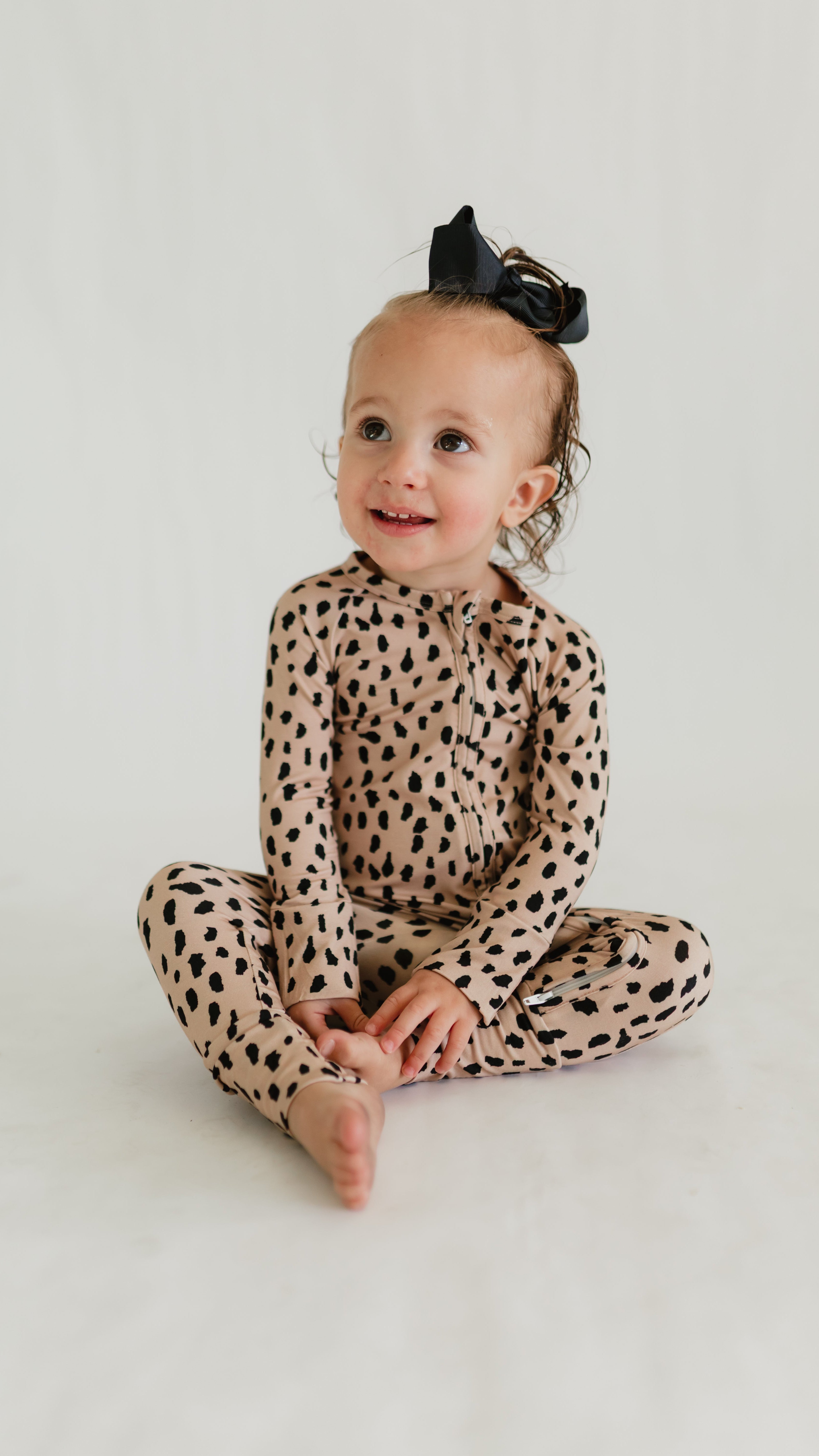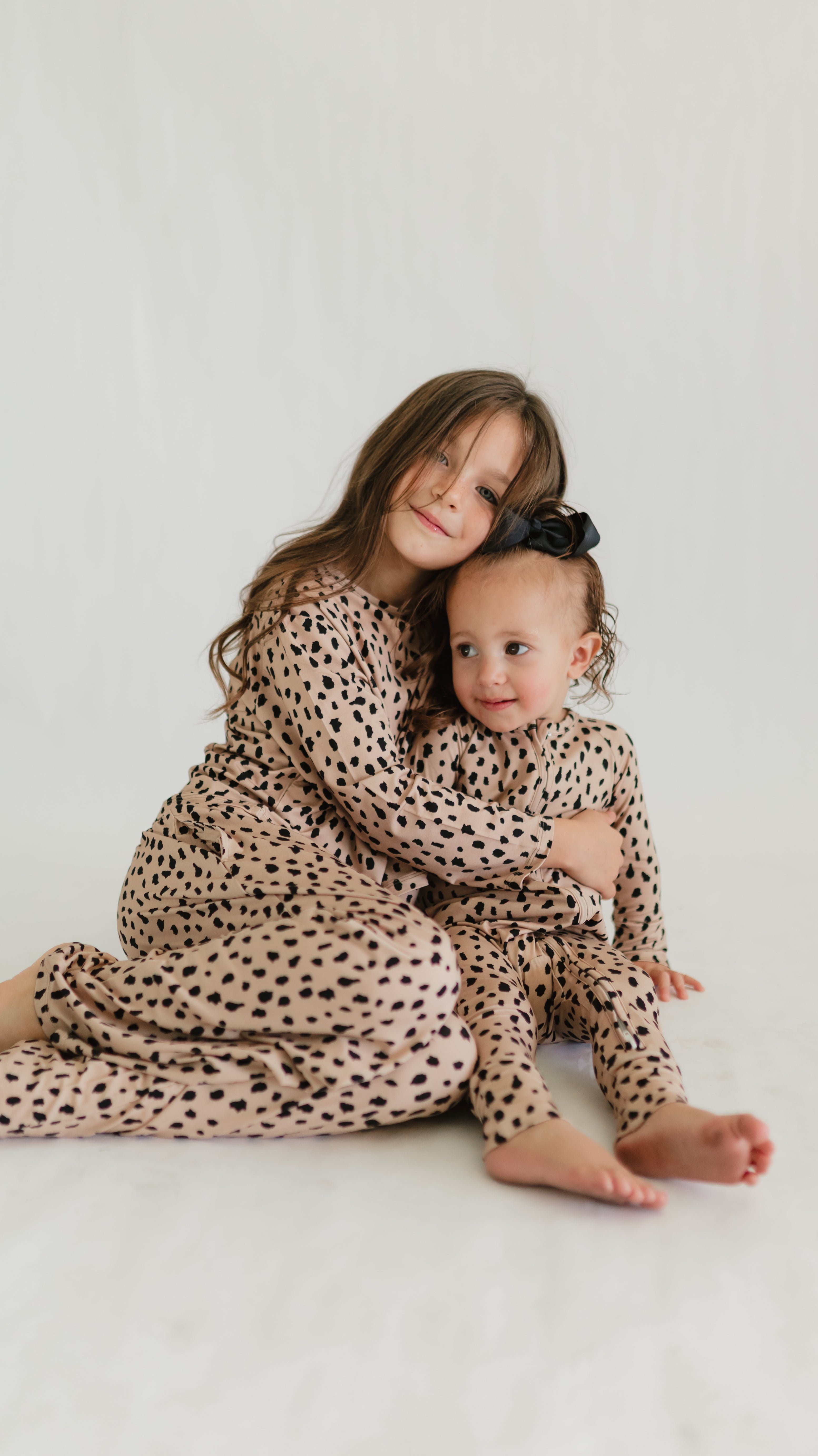 Girl's Long Sleeve and Pants Set in Brown Cheetah