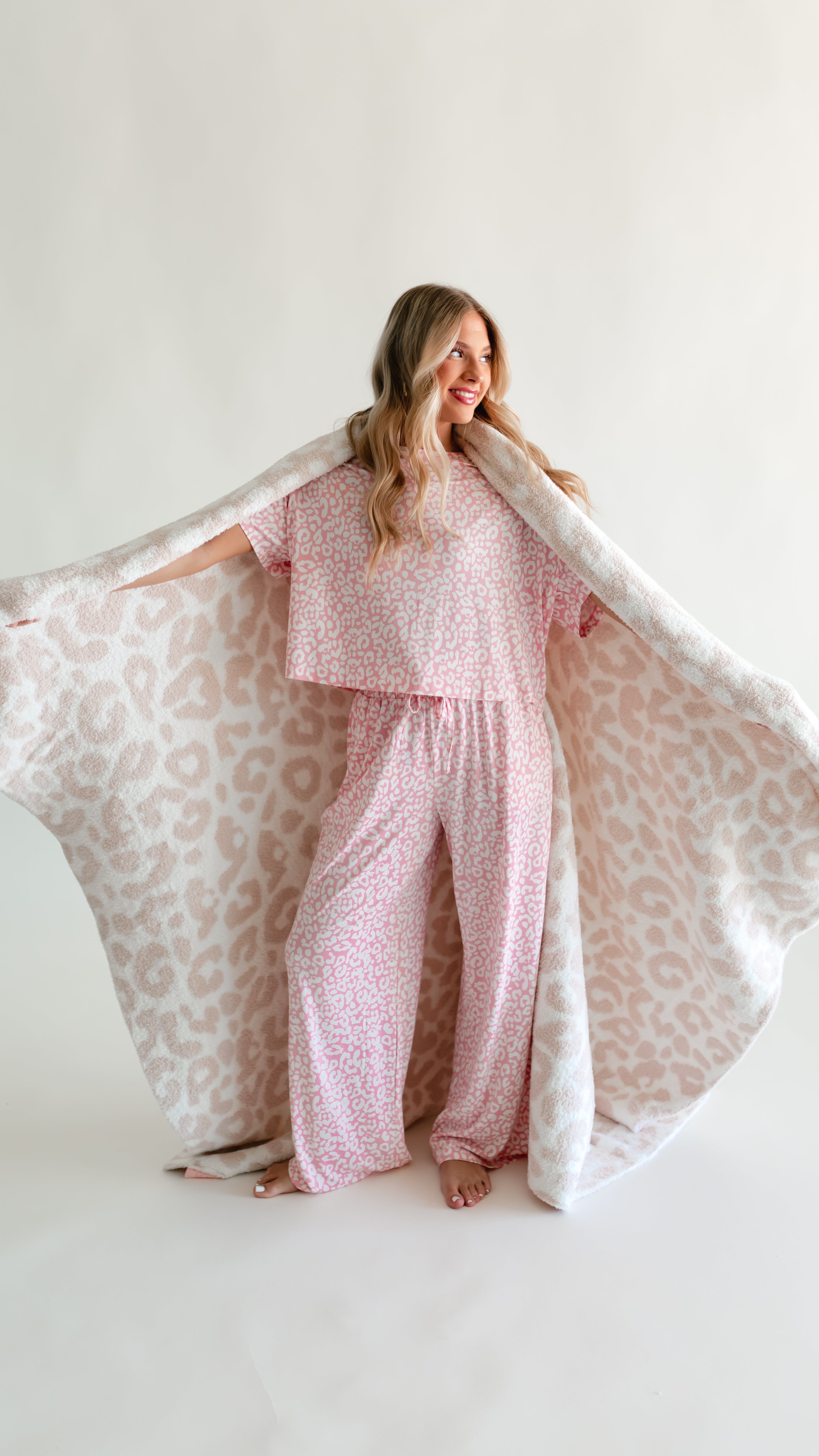 Women's T-Shirt and Pants Set in Brown Cheetah