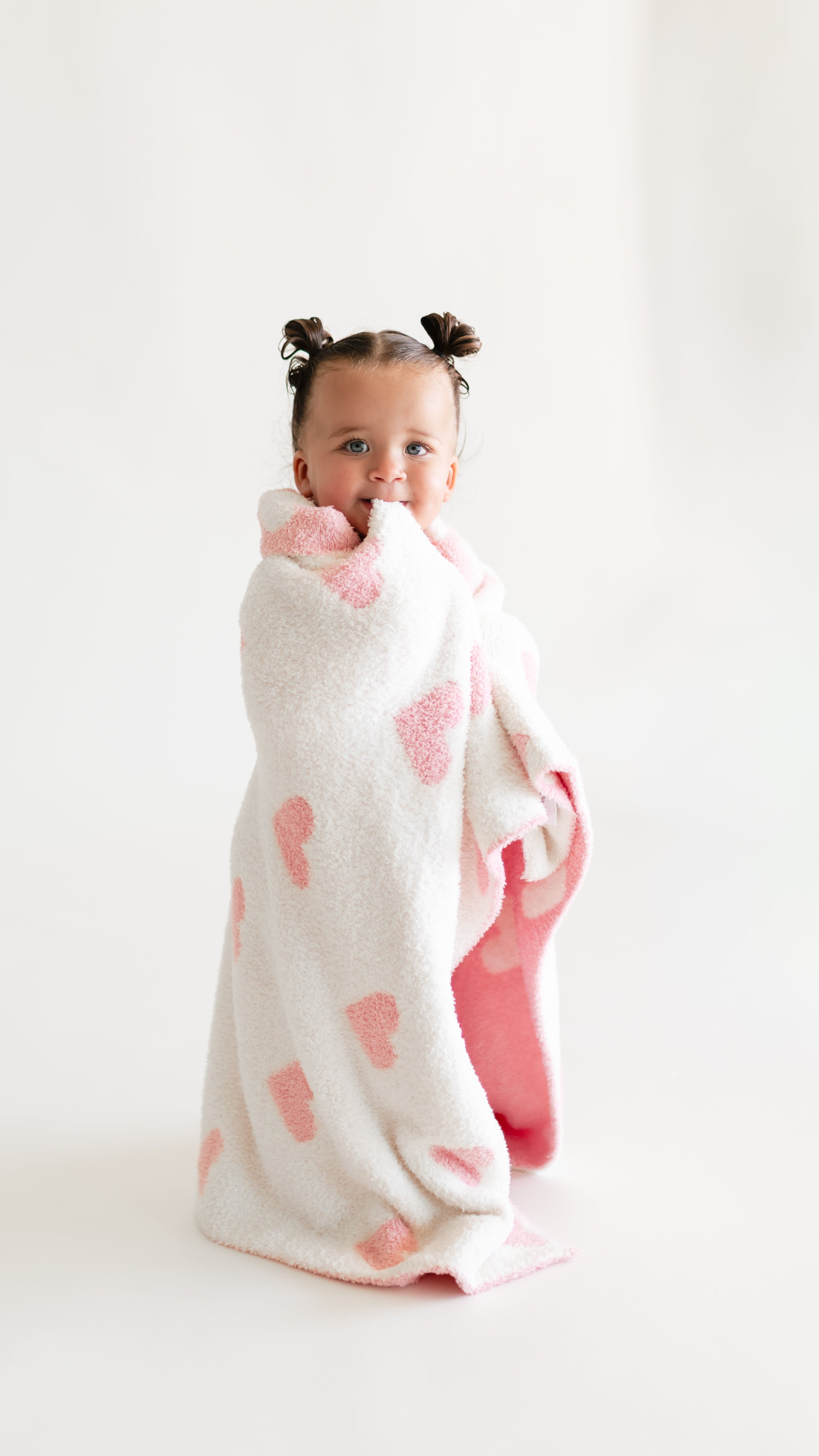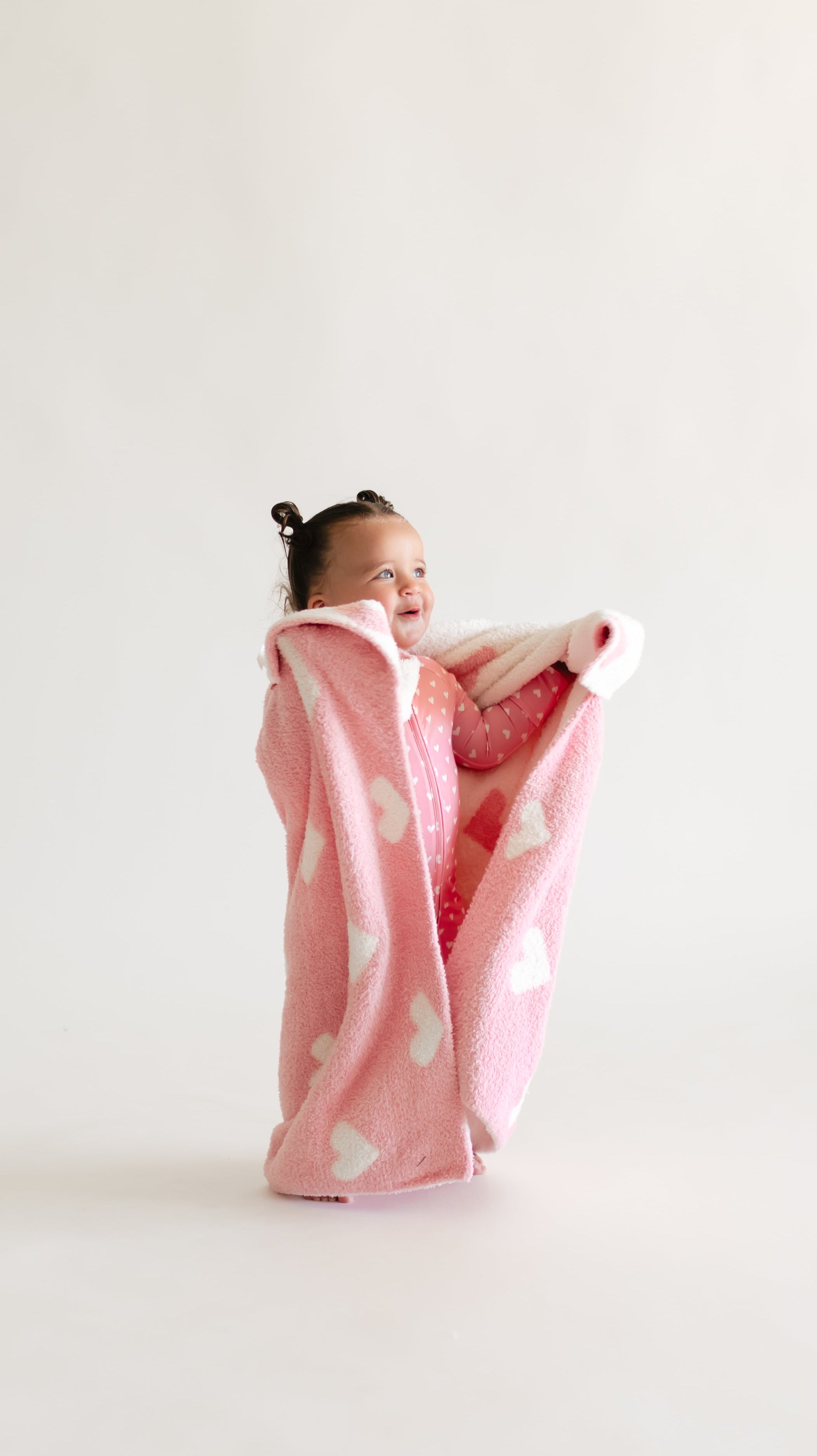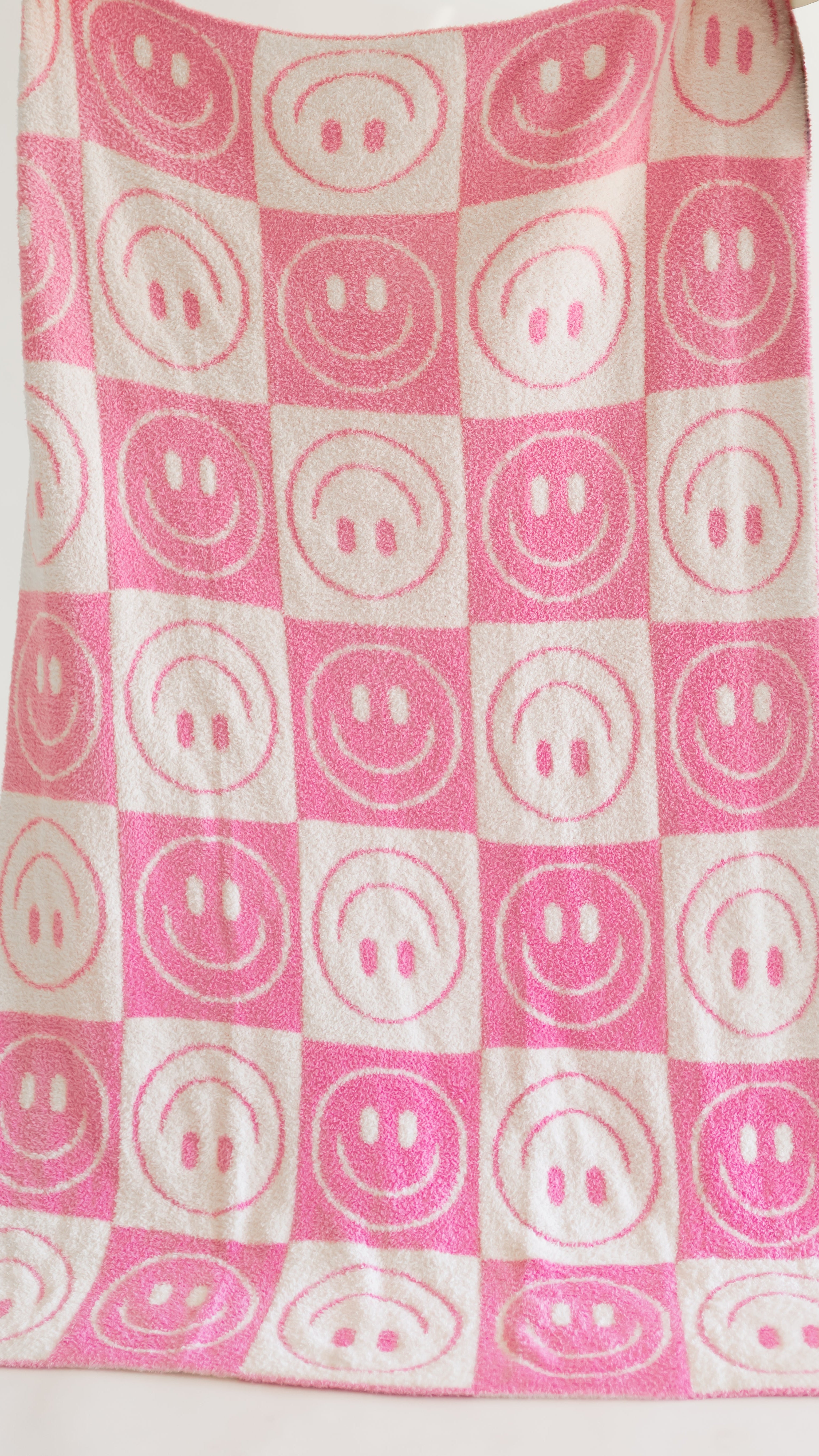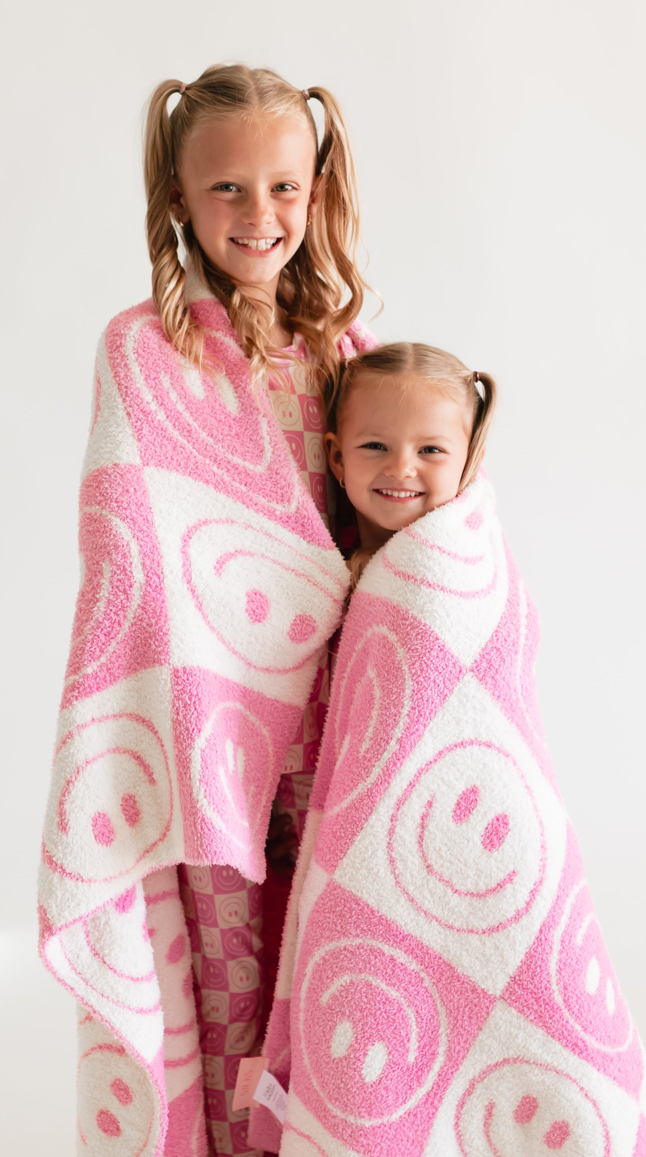 Youth Plush Throw Blanket in Pink Checkered Smiley