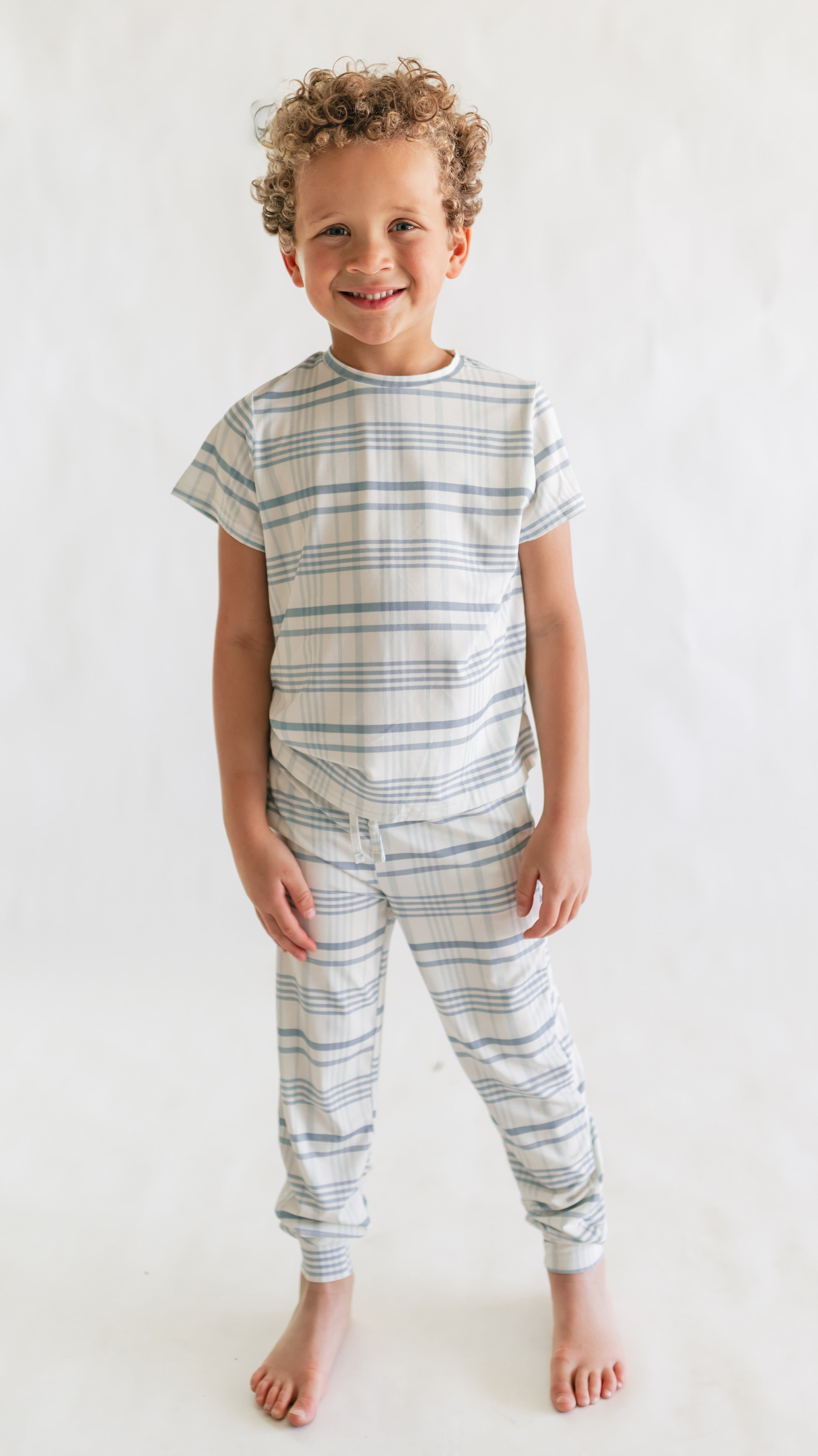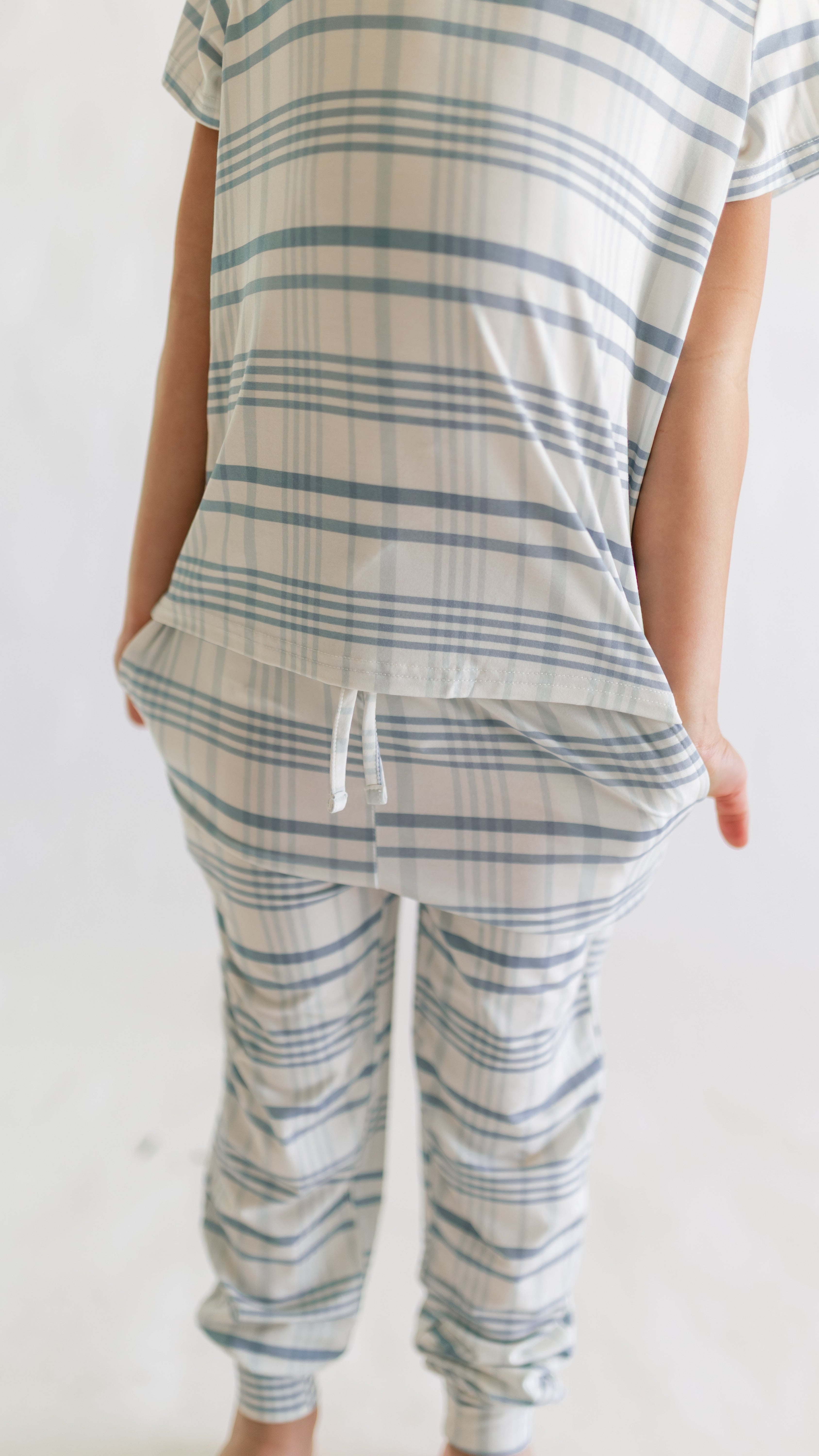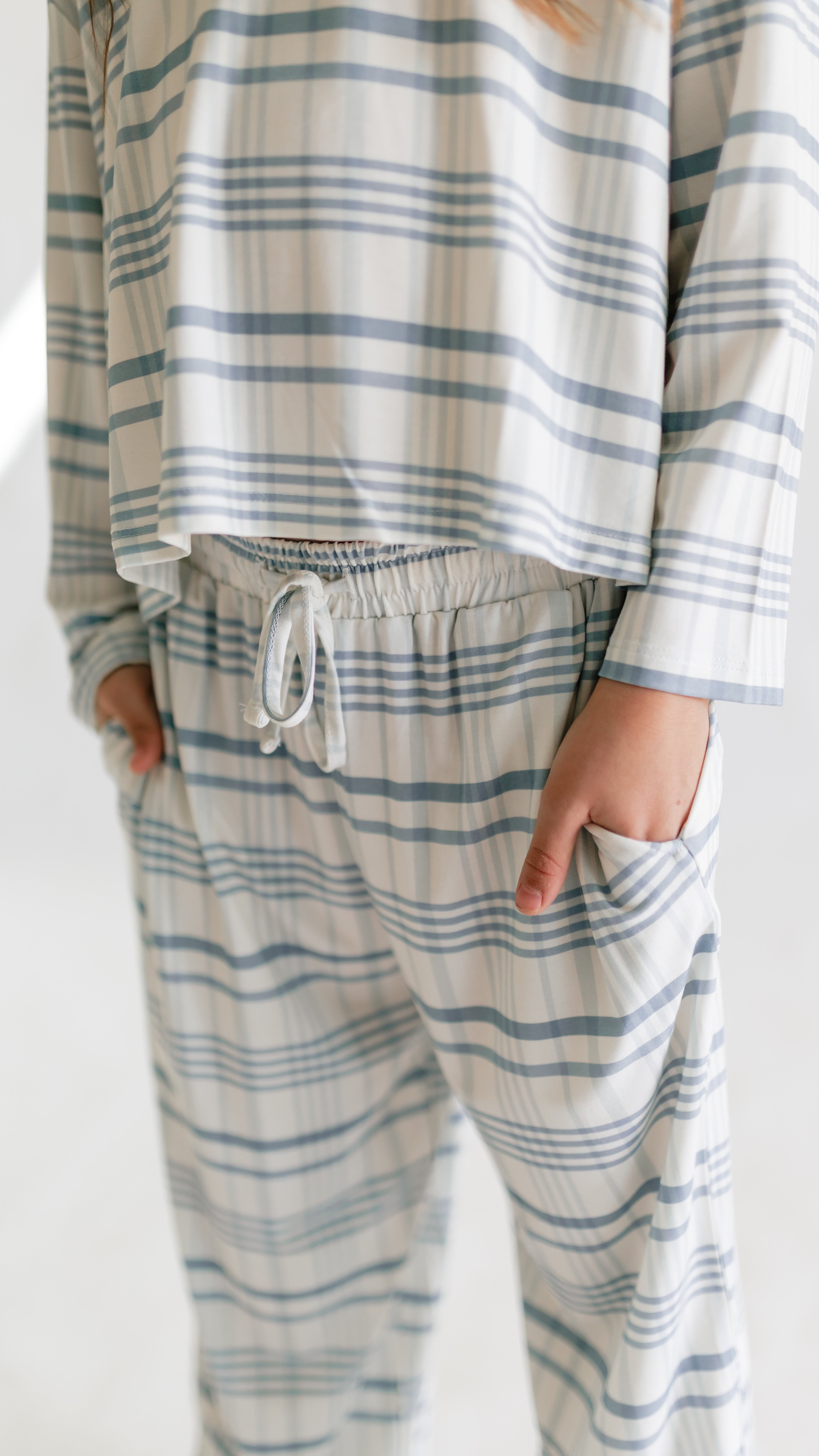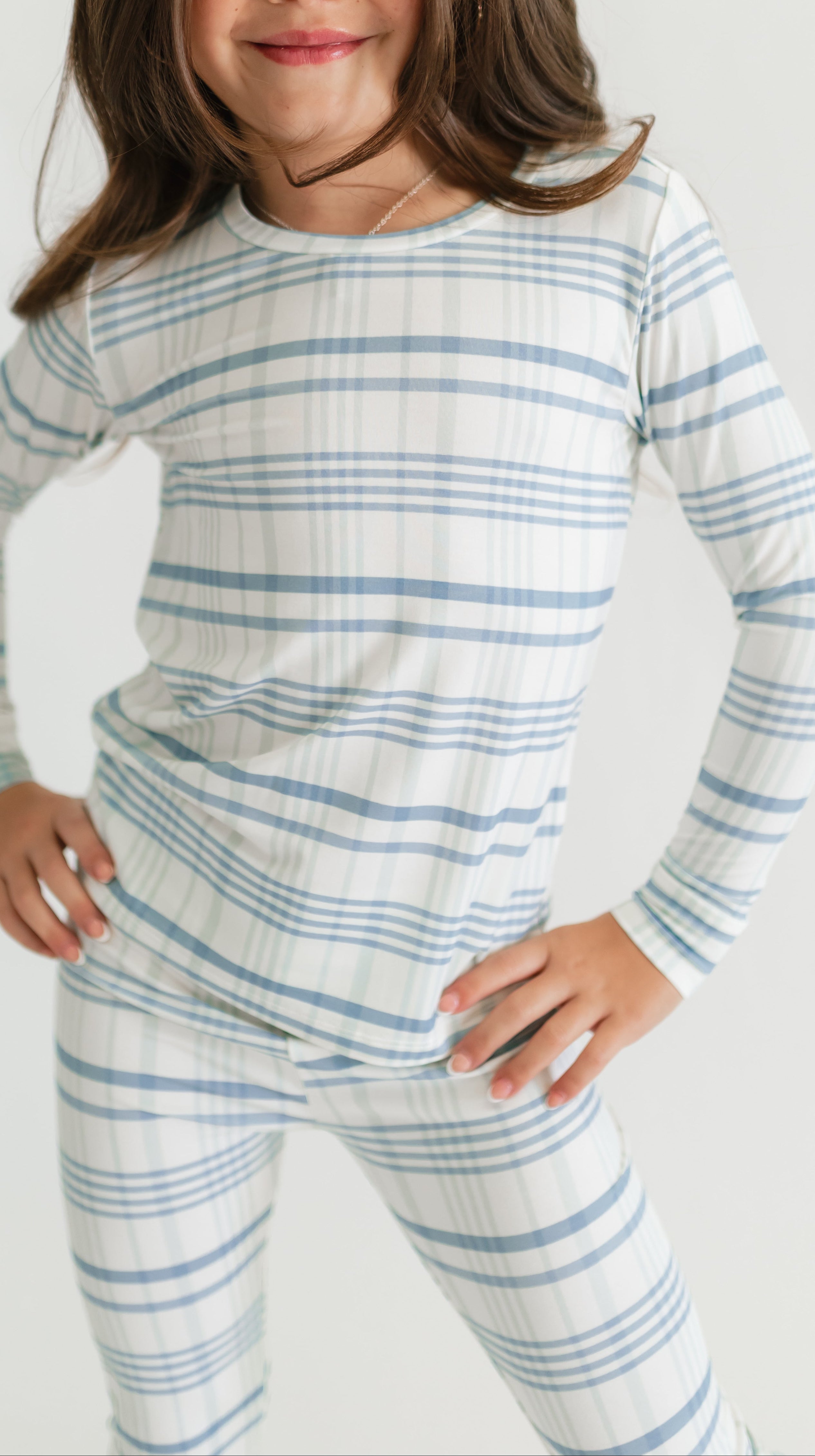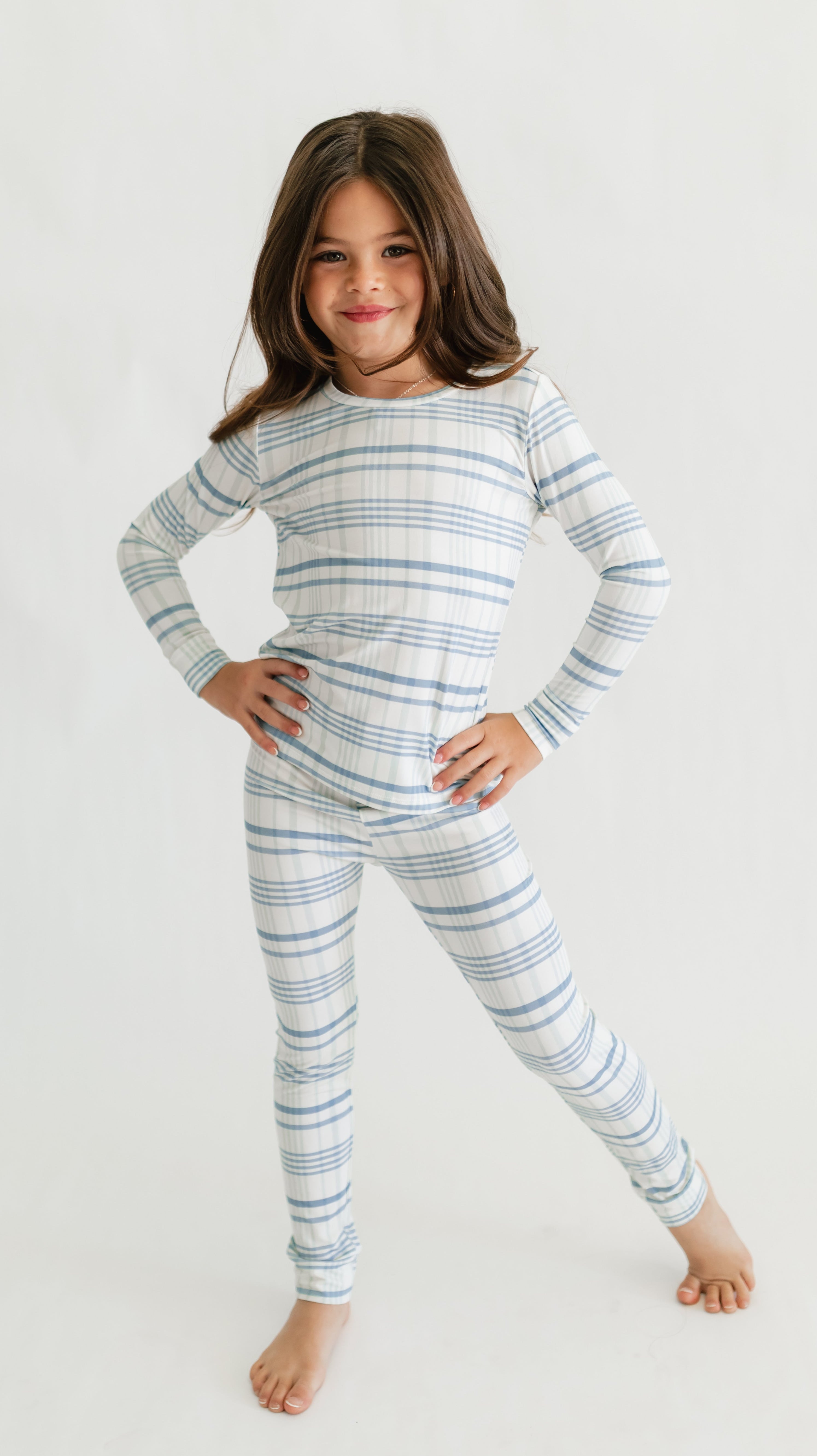 Girl's Long Sleeve and Pants Set in Blue Plaid