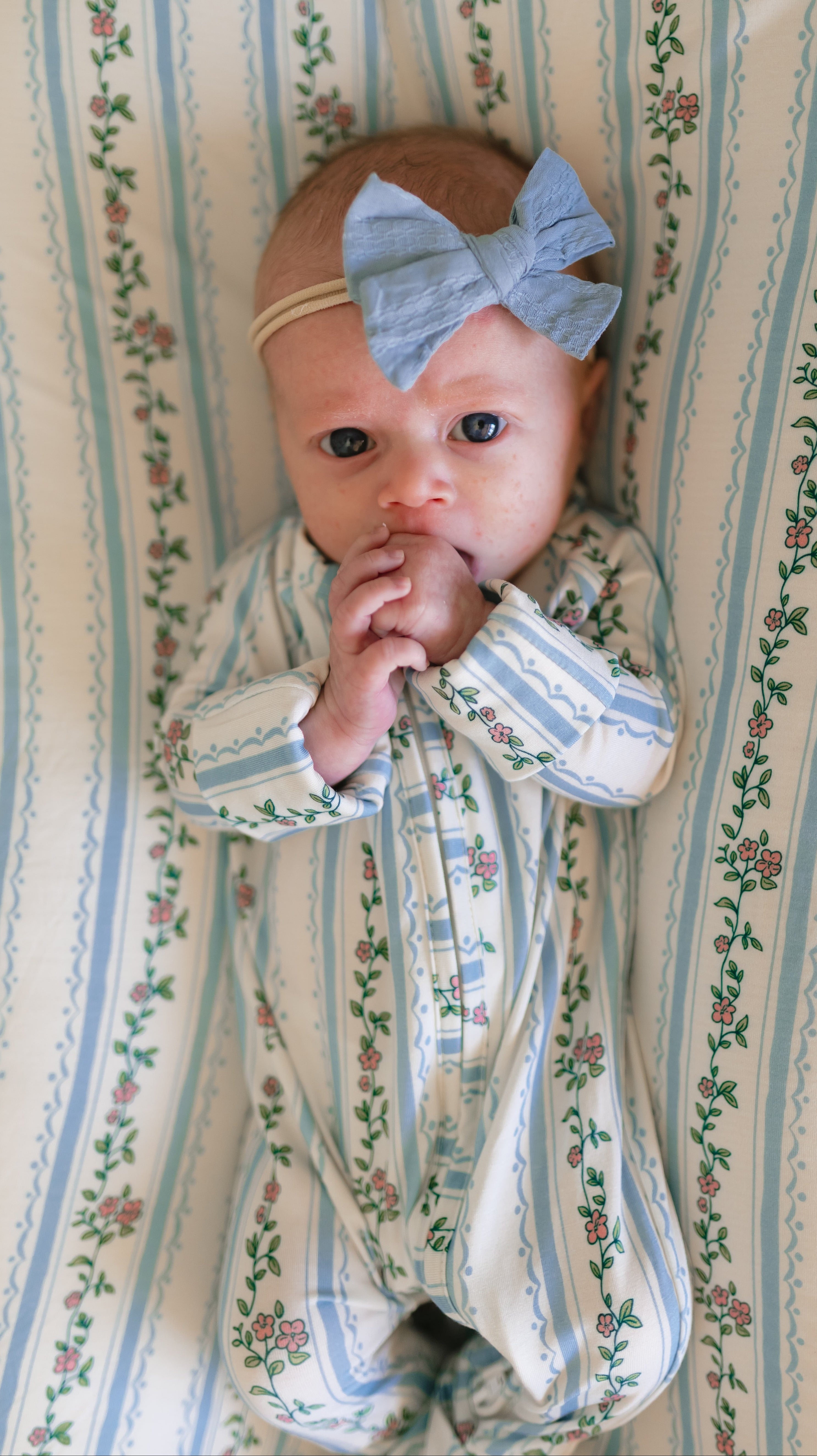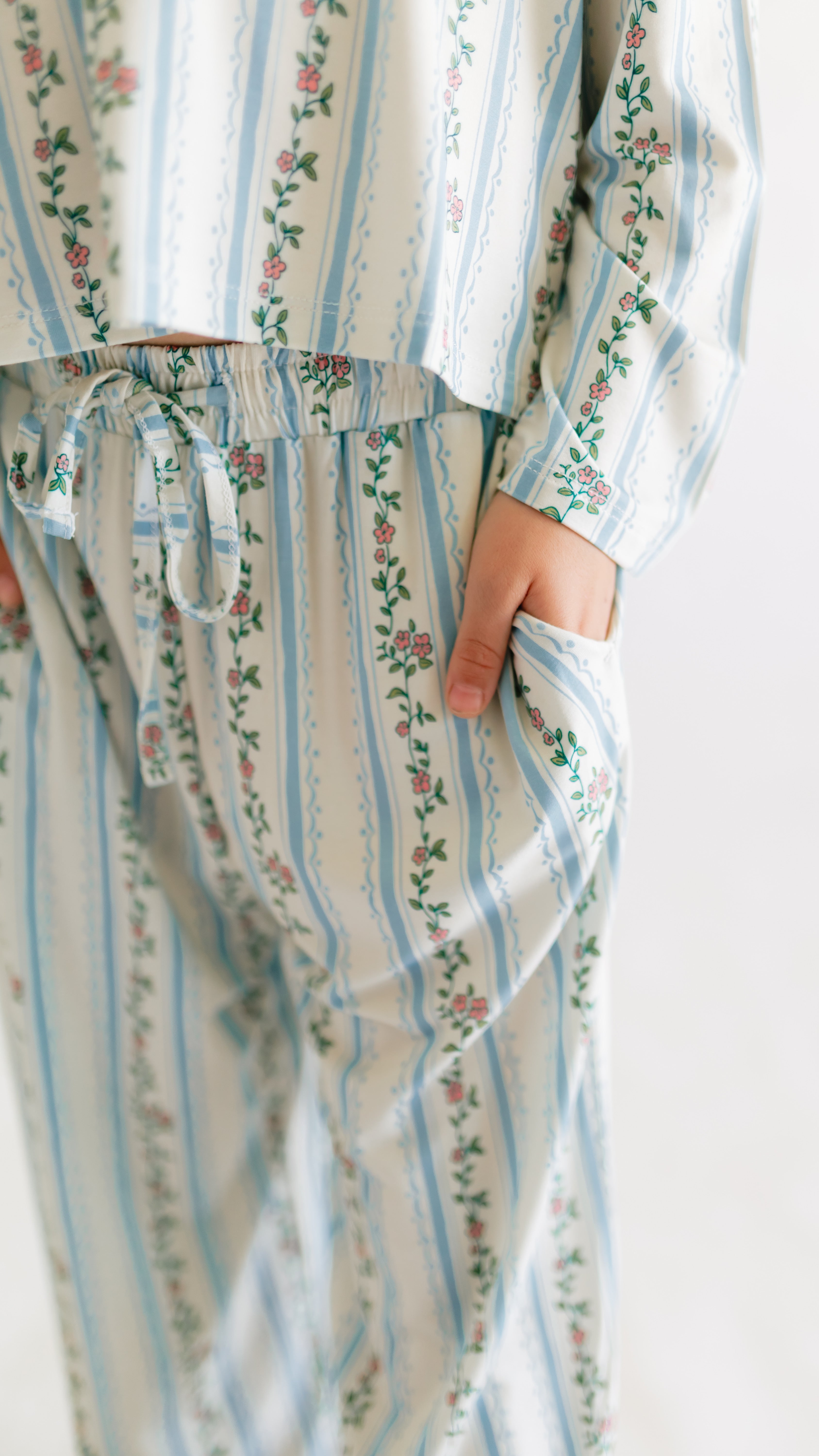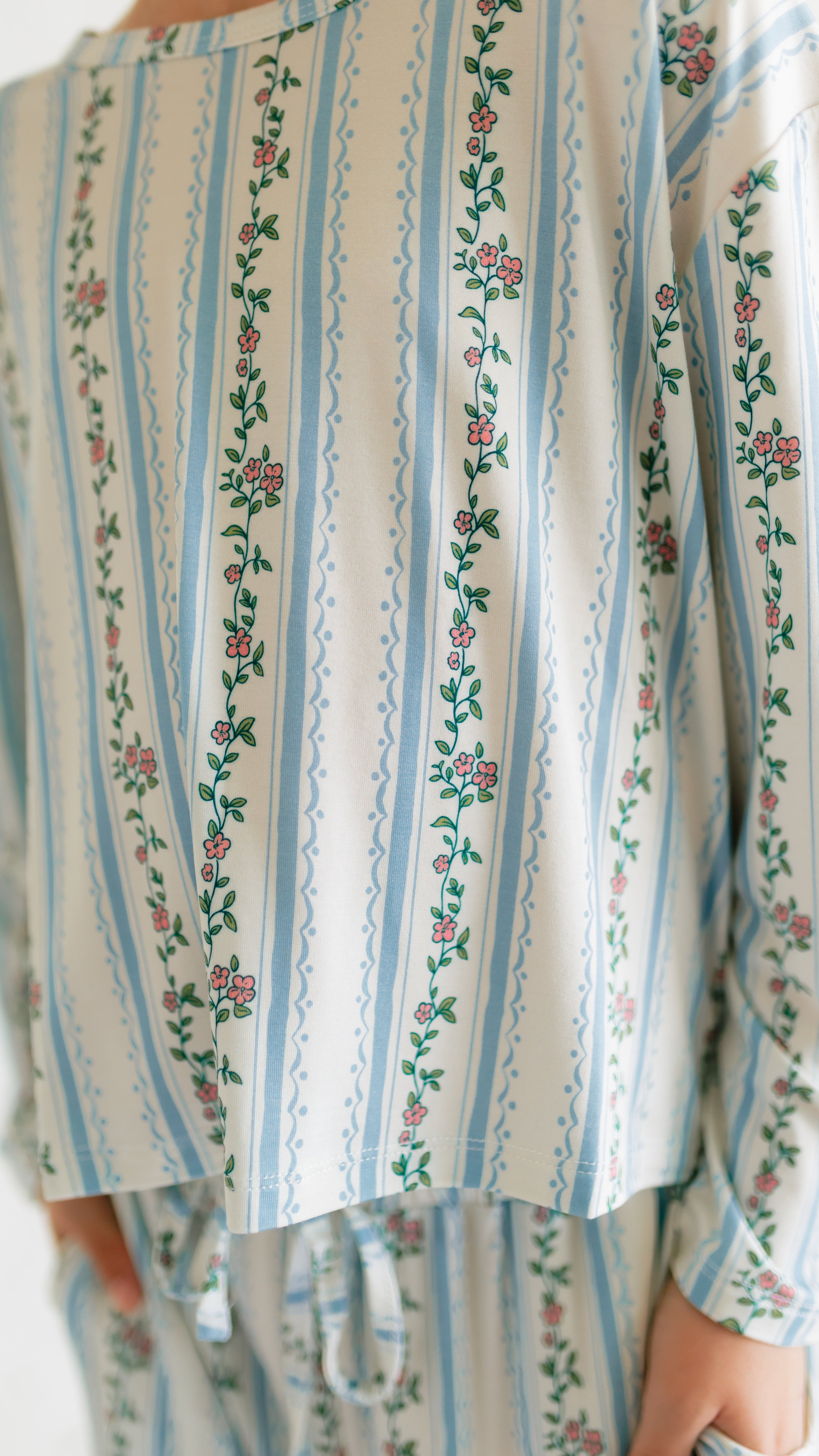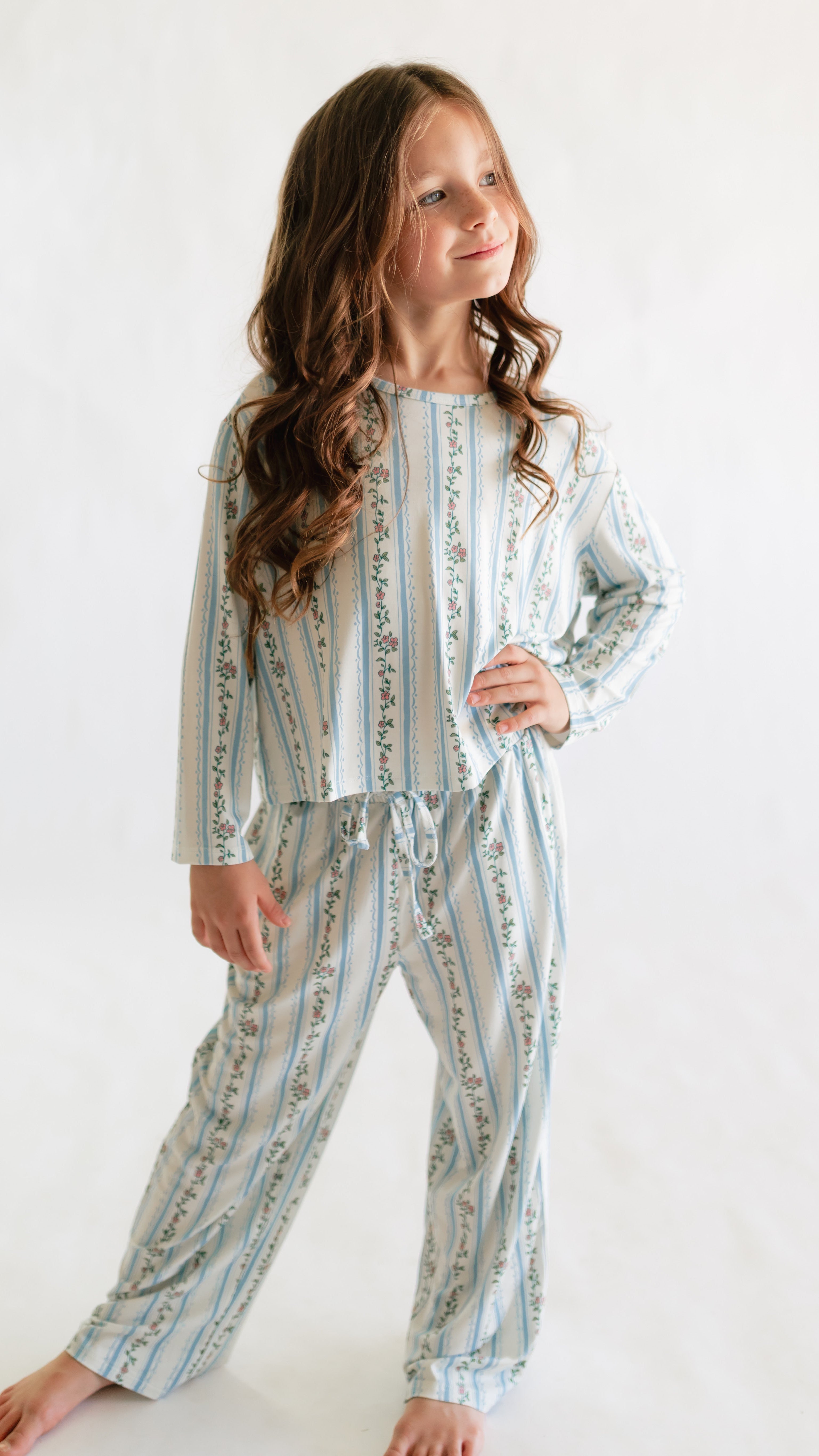 Girl's Long Sleeve and Pants Set in Blue Striped Floral