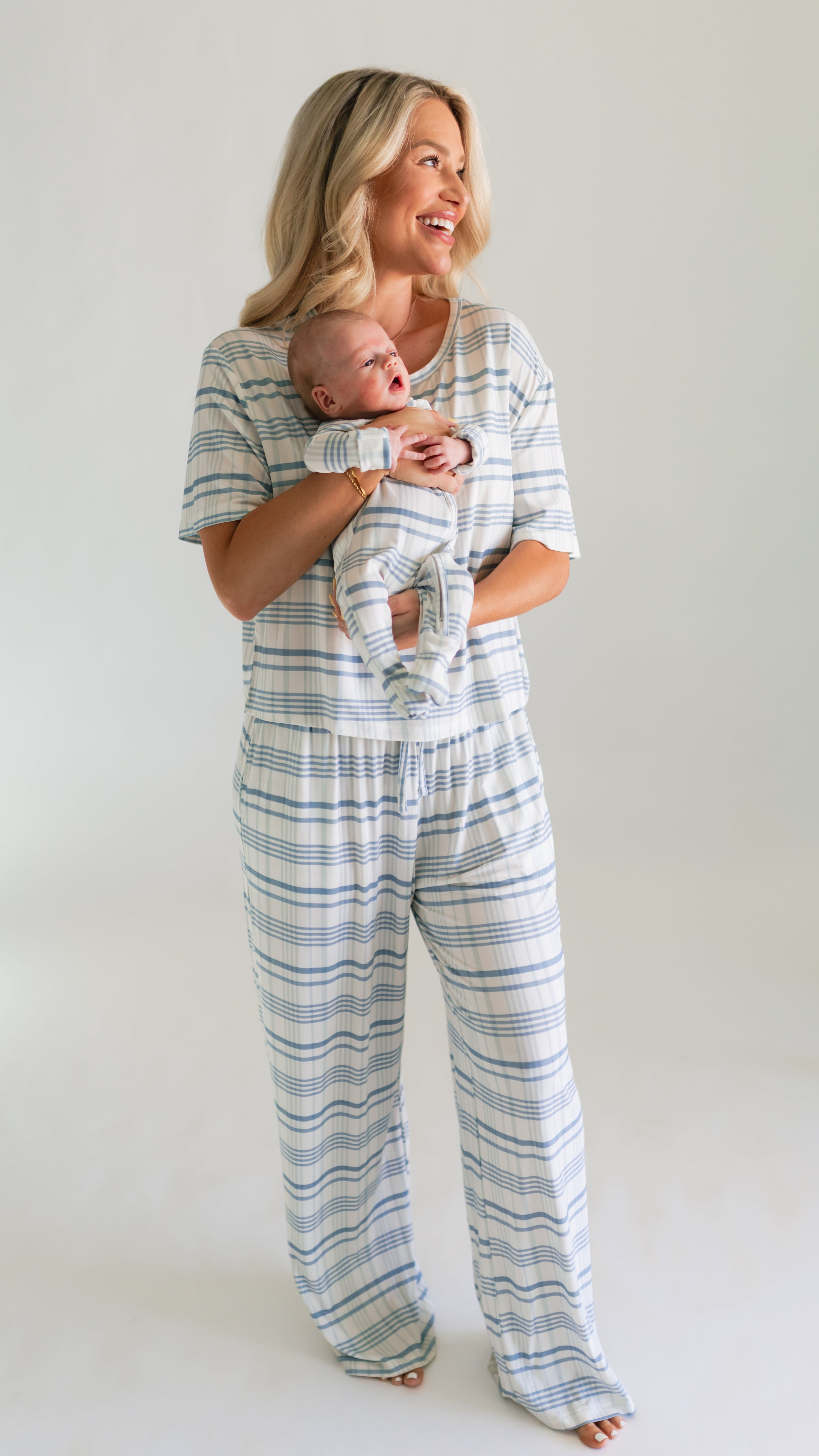 Women's T-Shirt and Pants Set in Blue Striped Floral