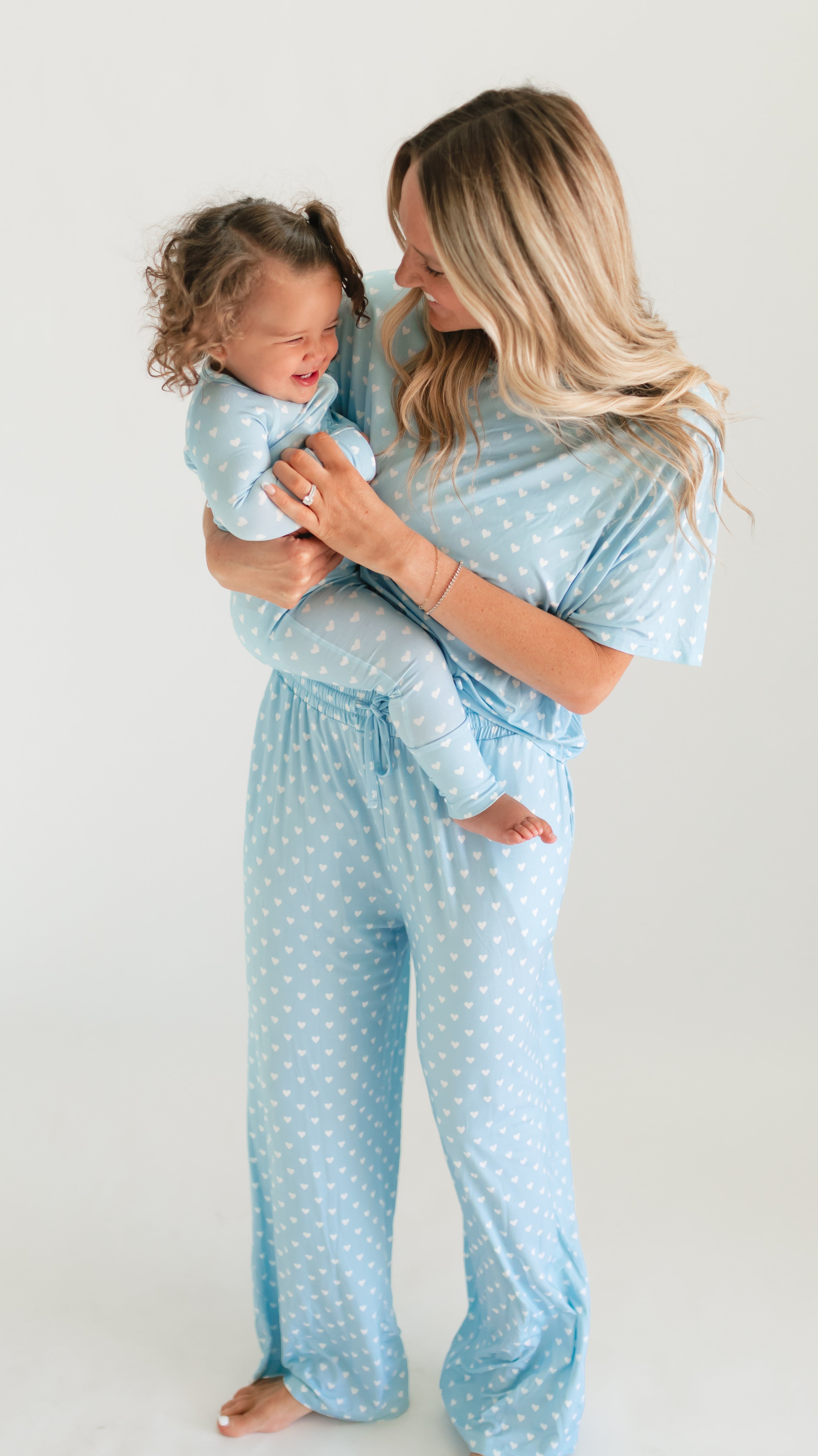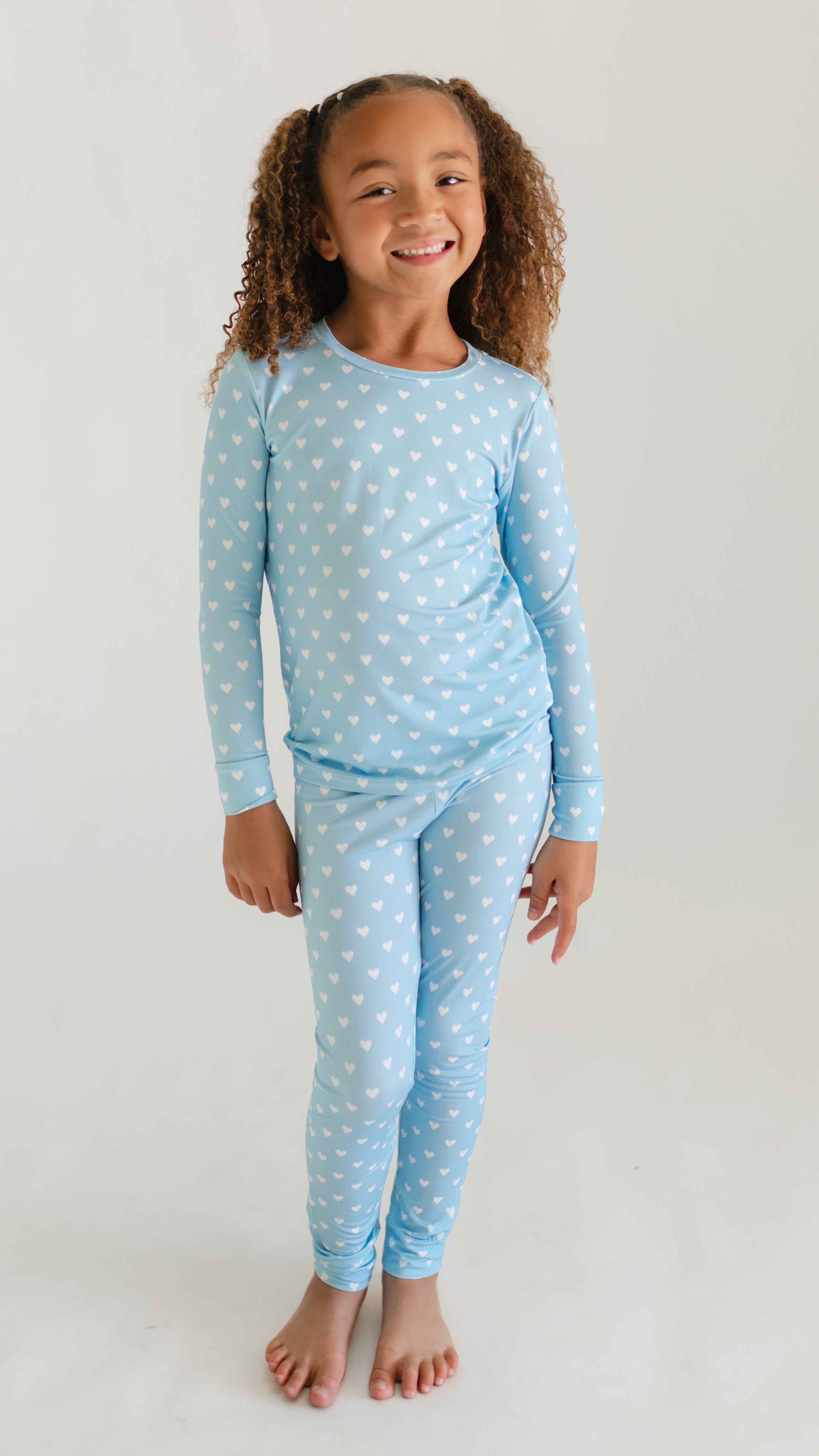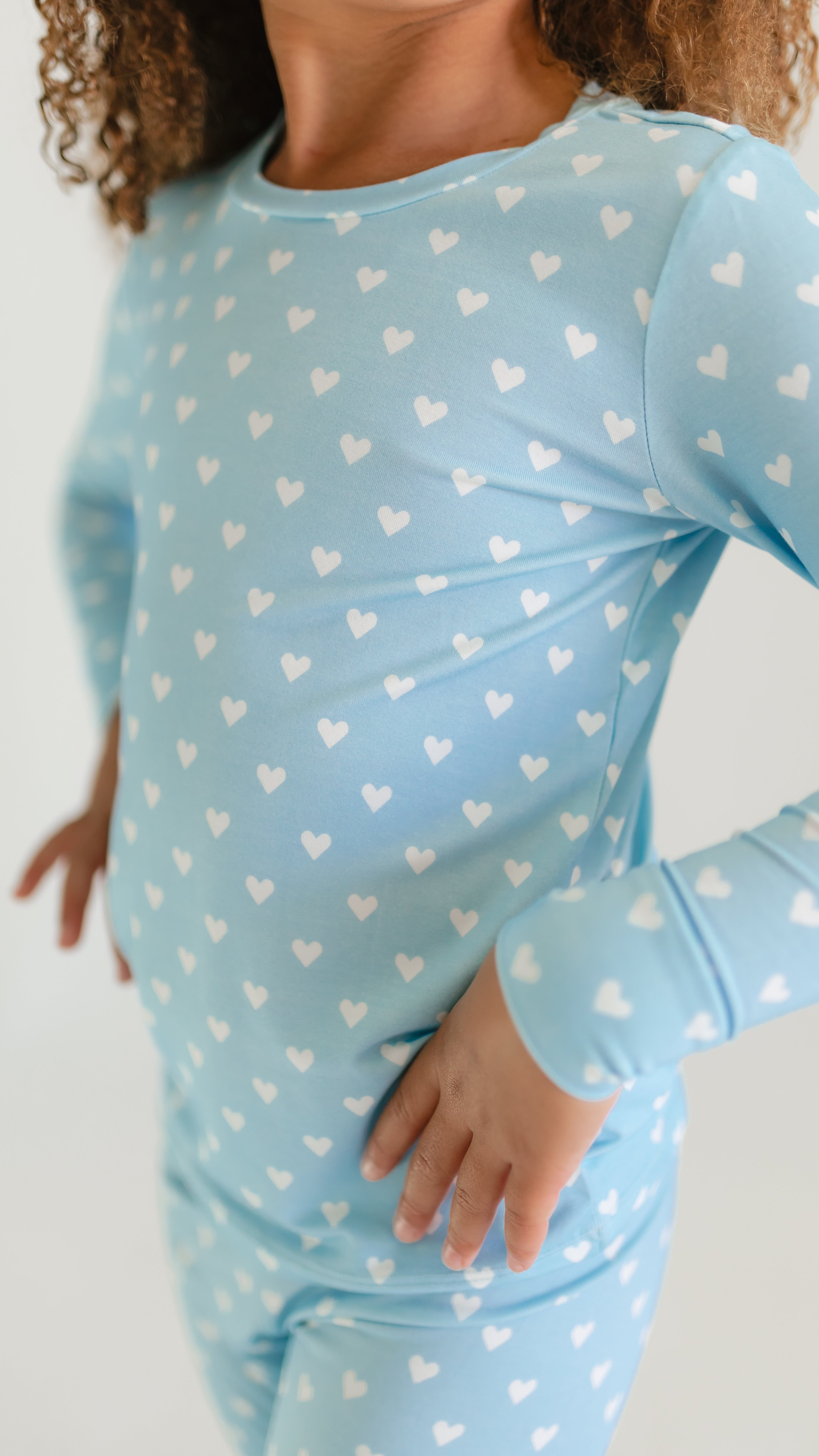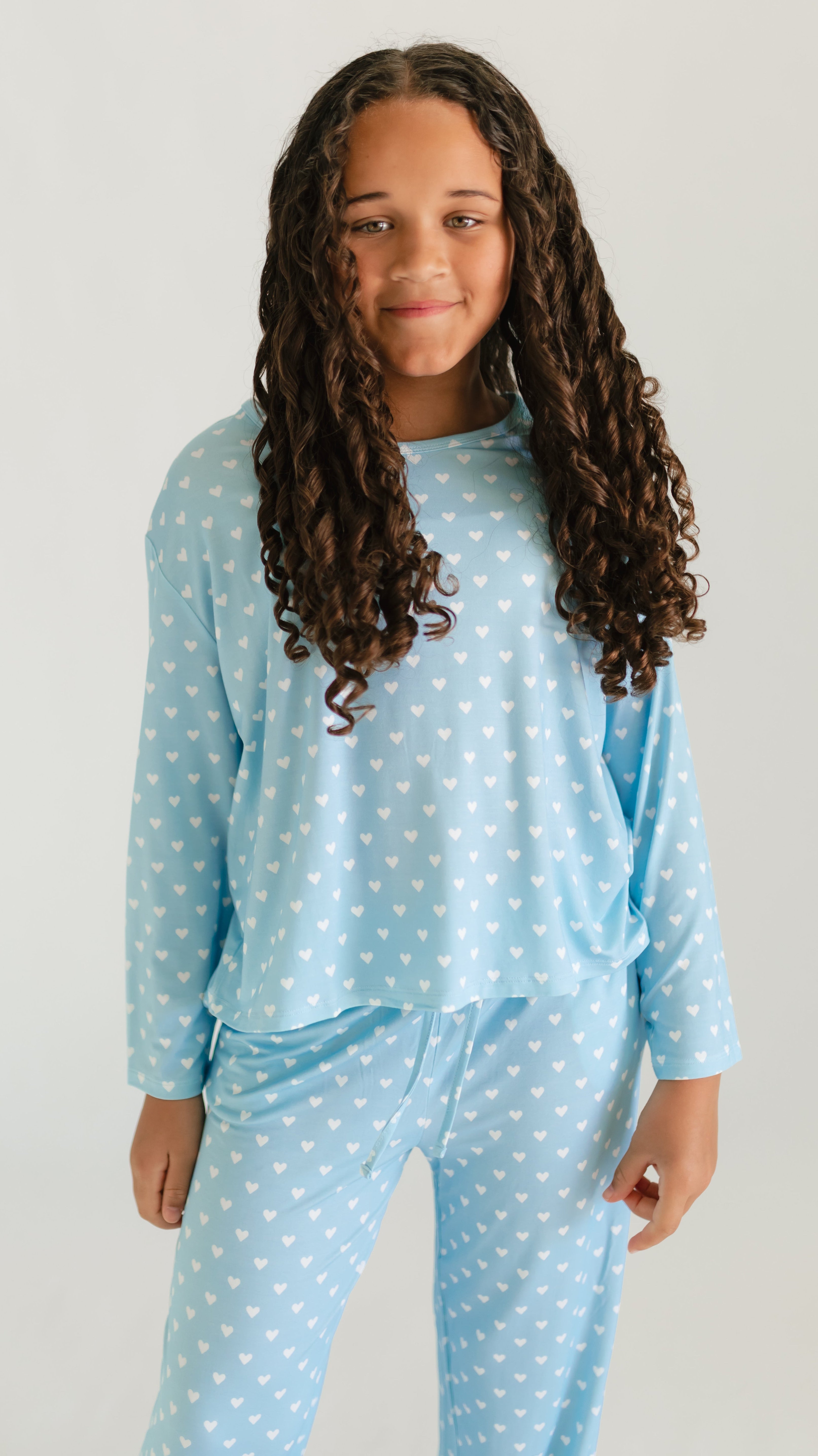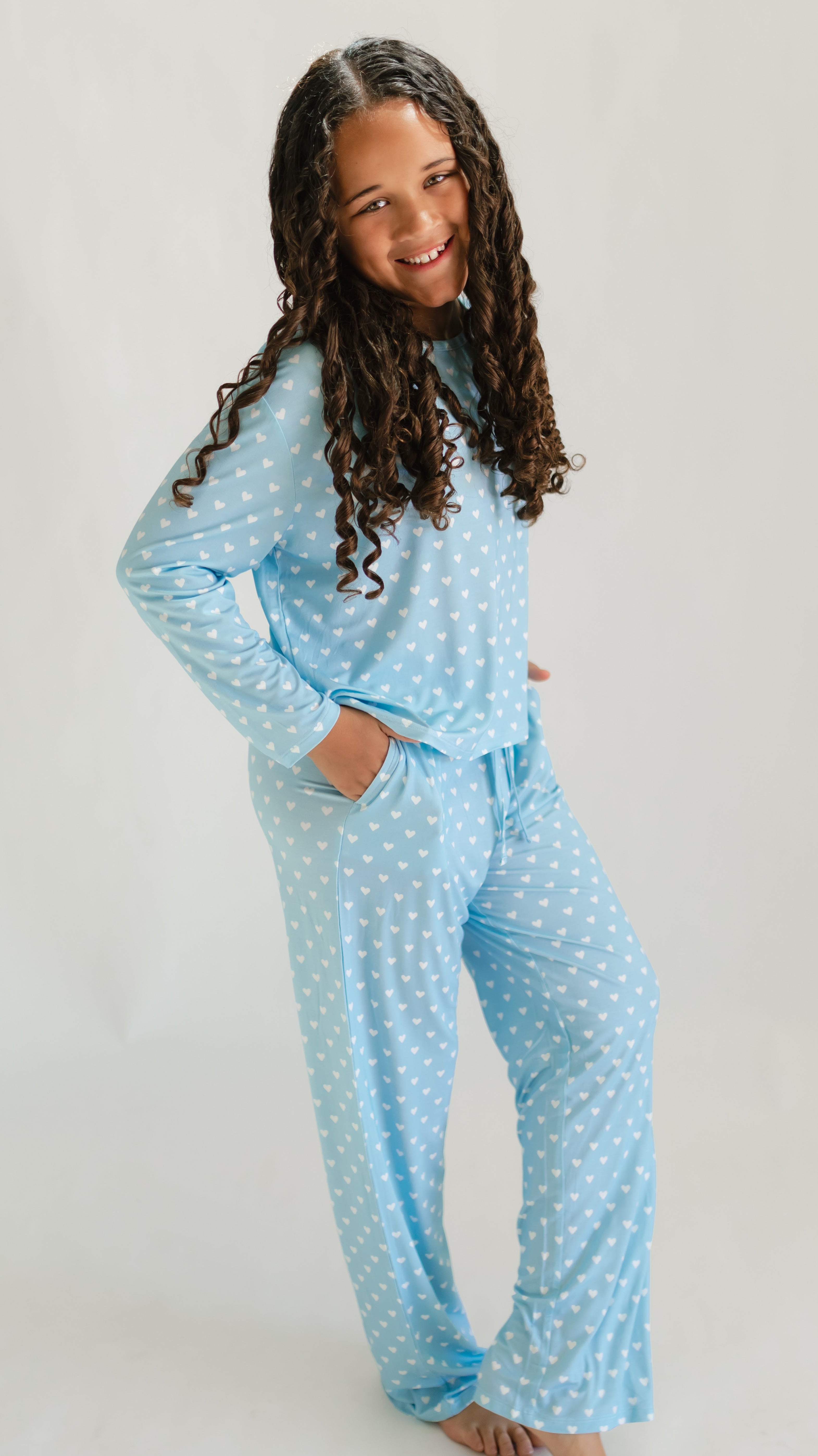 Girl's Long Sleeve and Pants Set in Blue Hearts