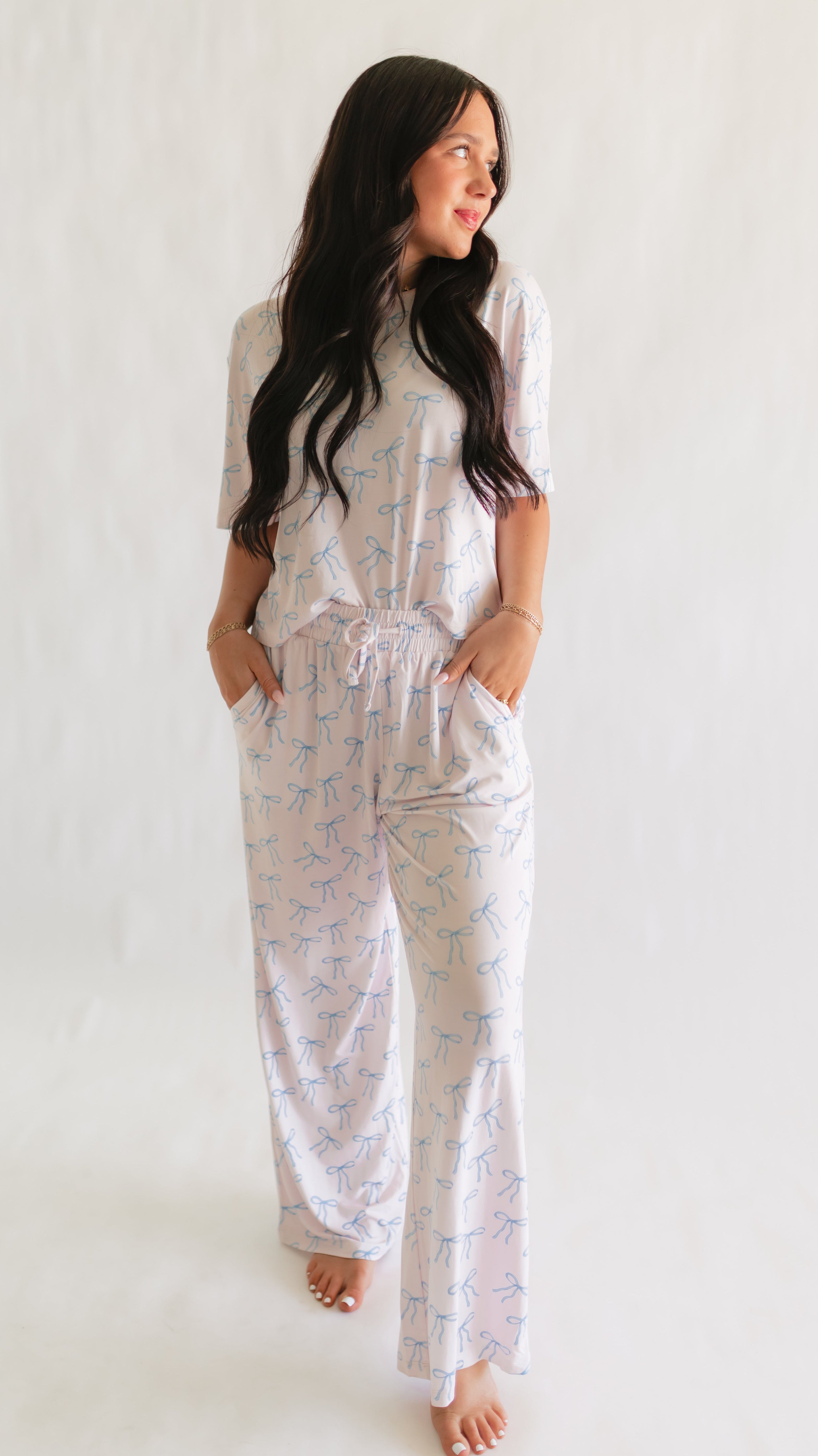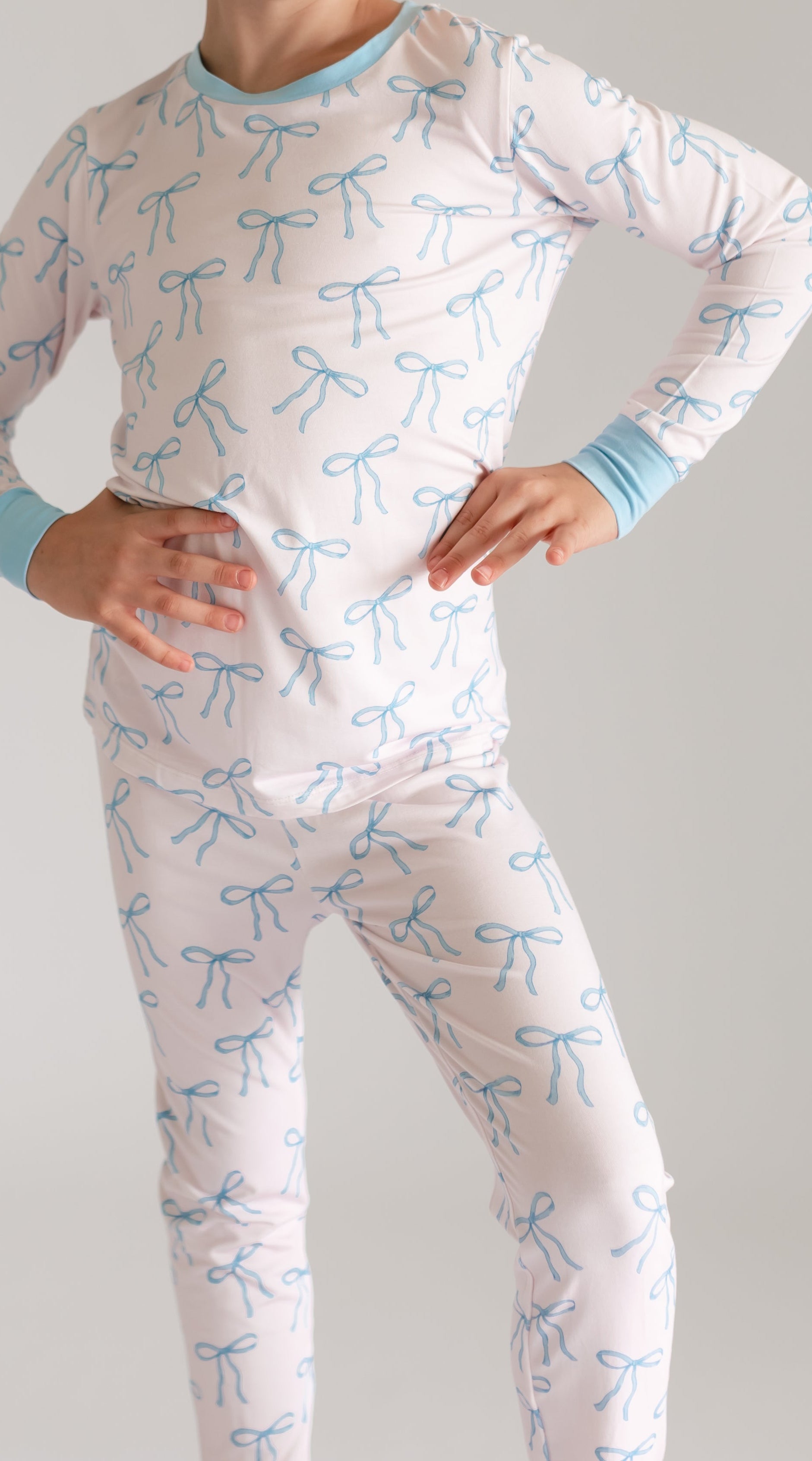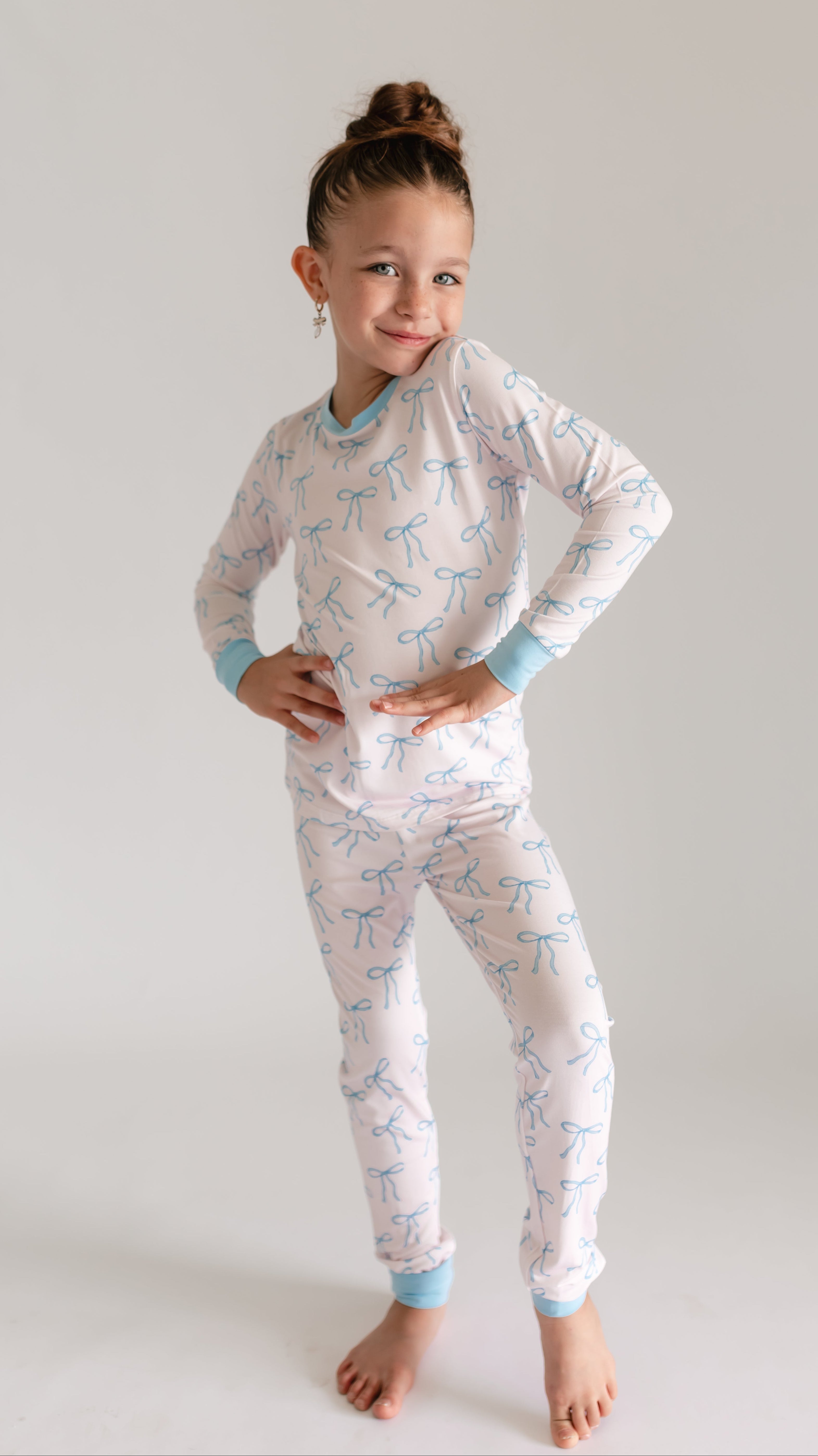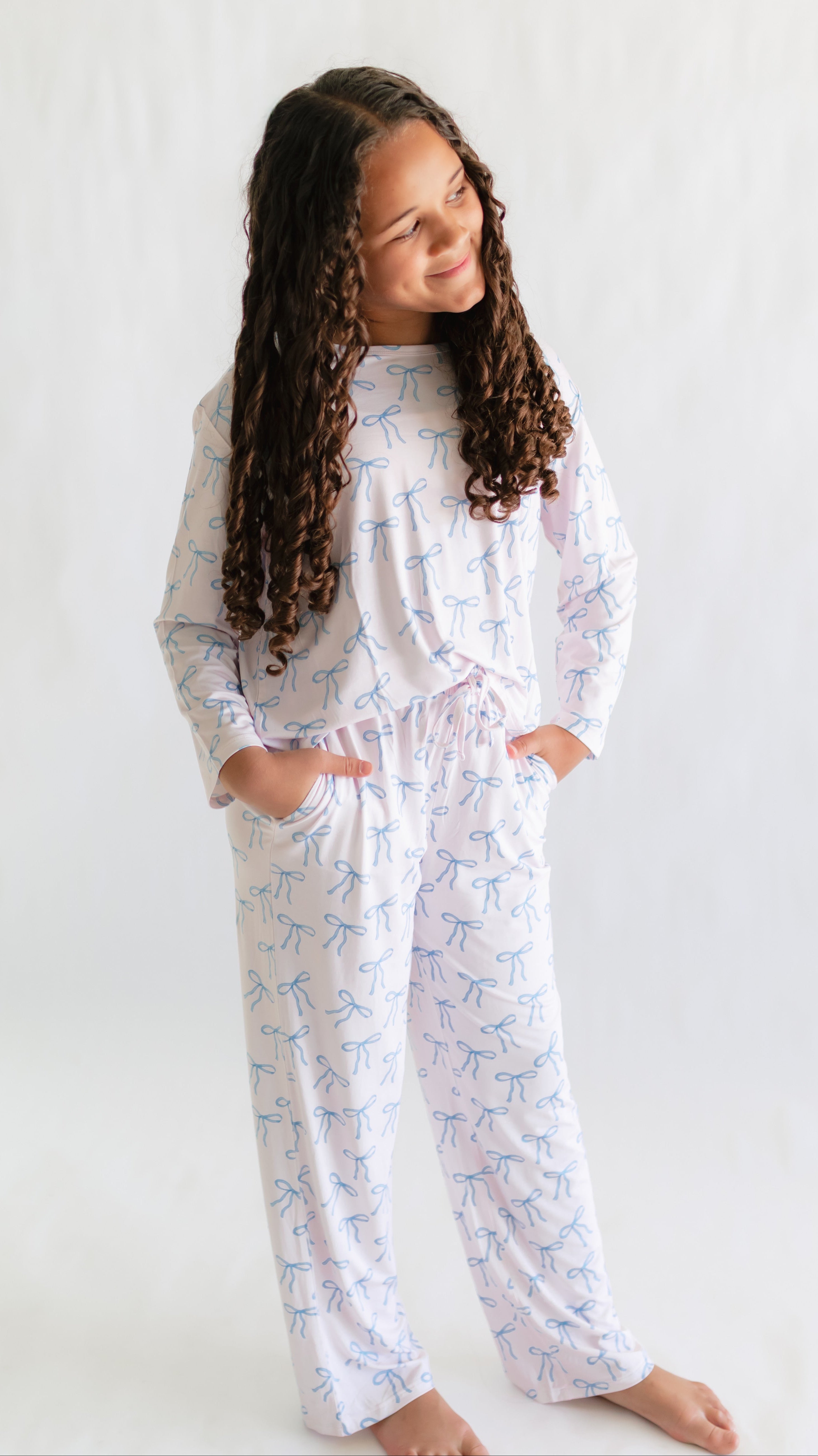 Girl's Long Sleeve and Pants Set in Blue Bows