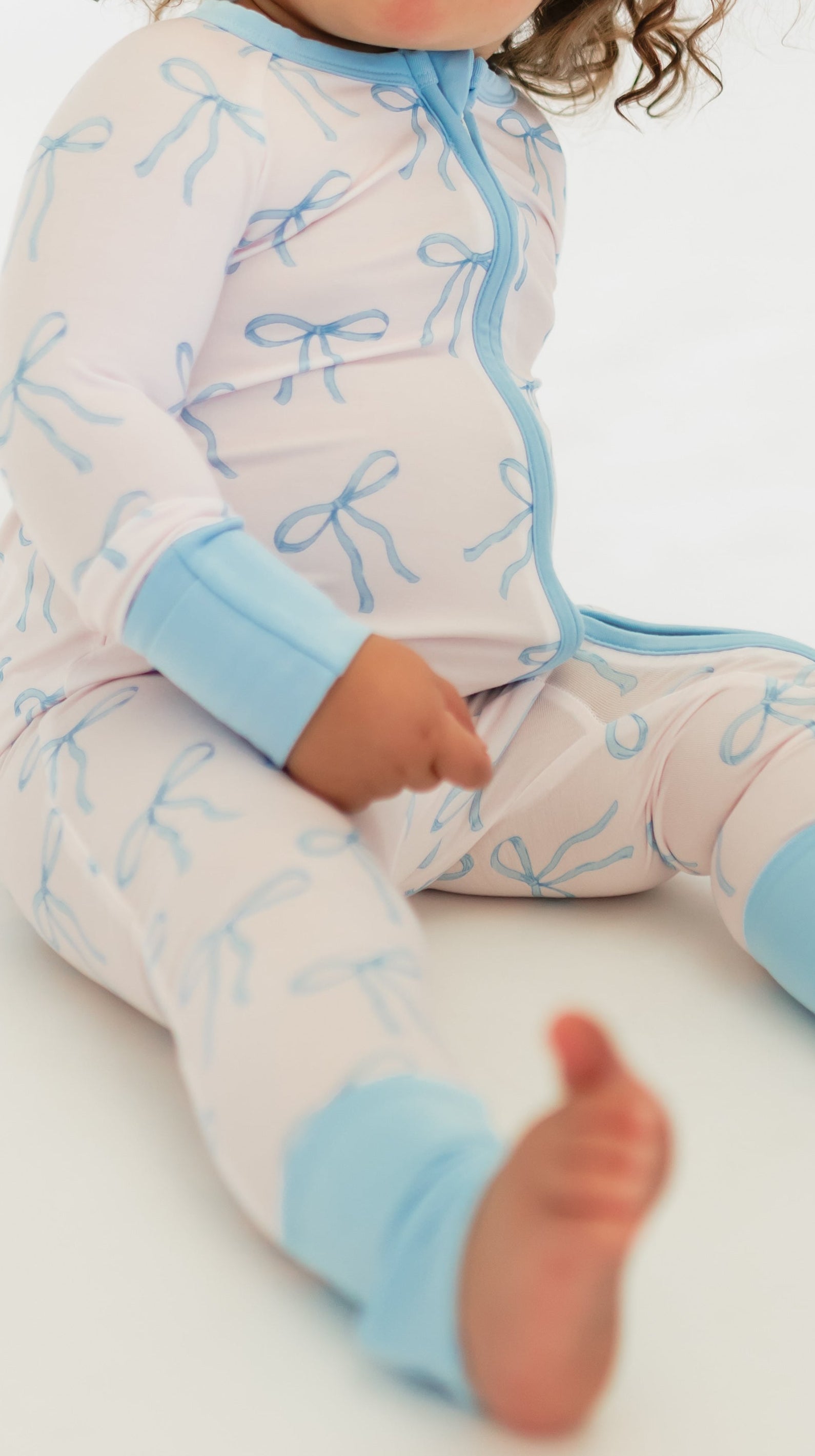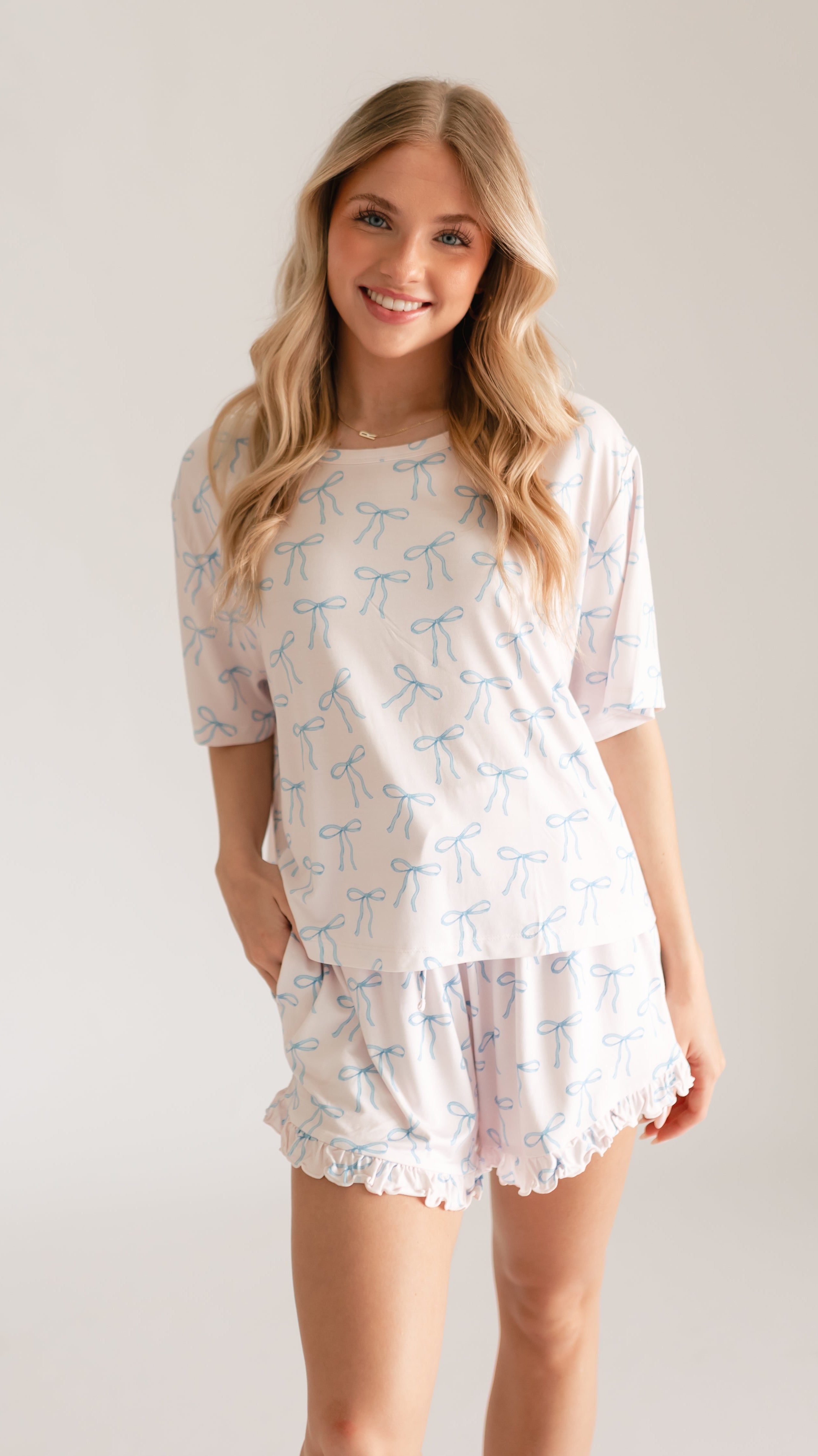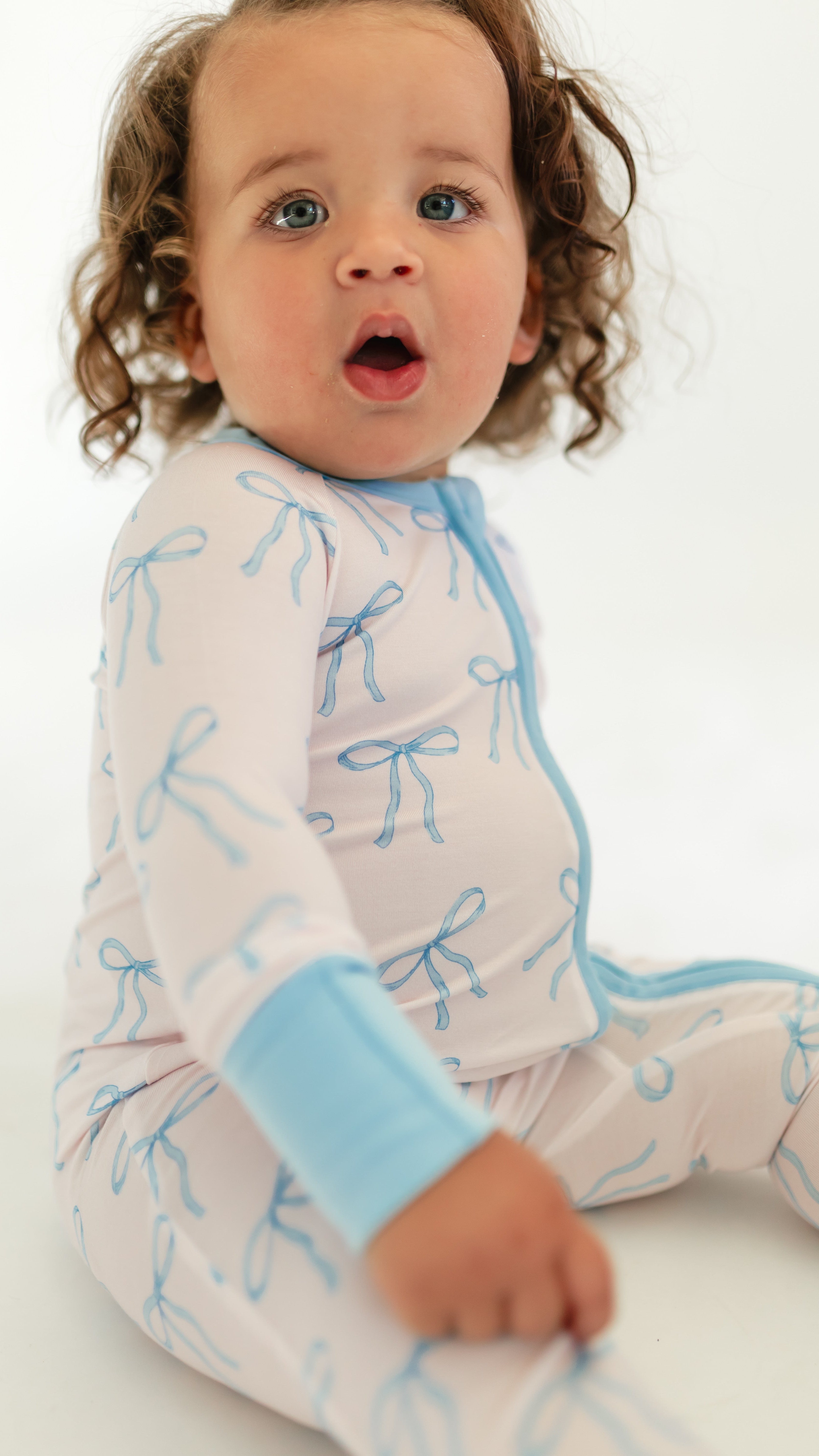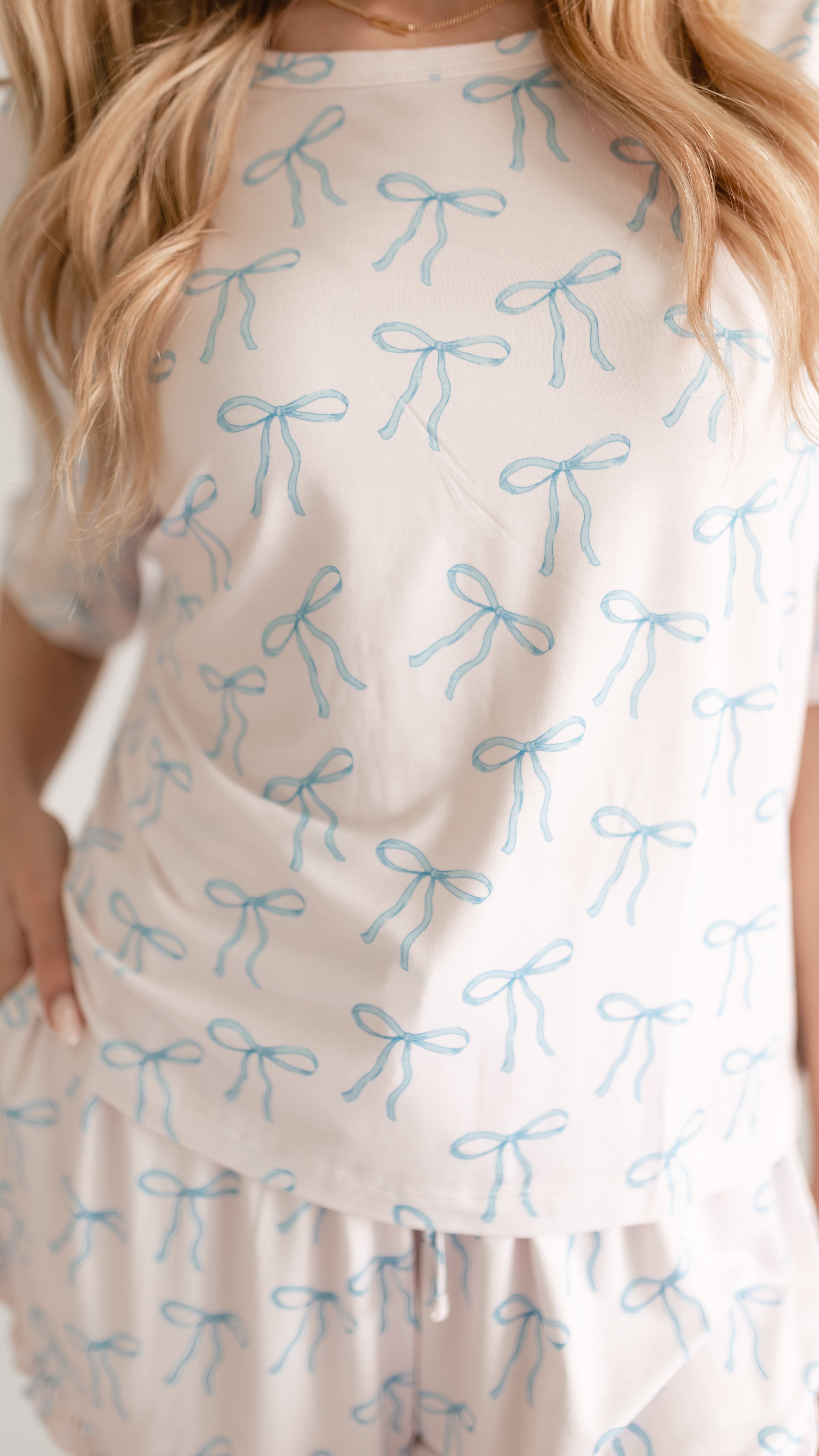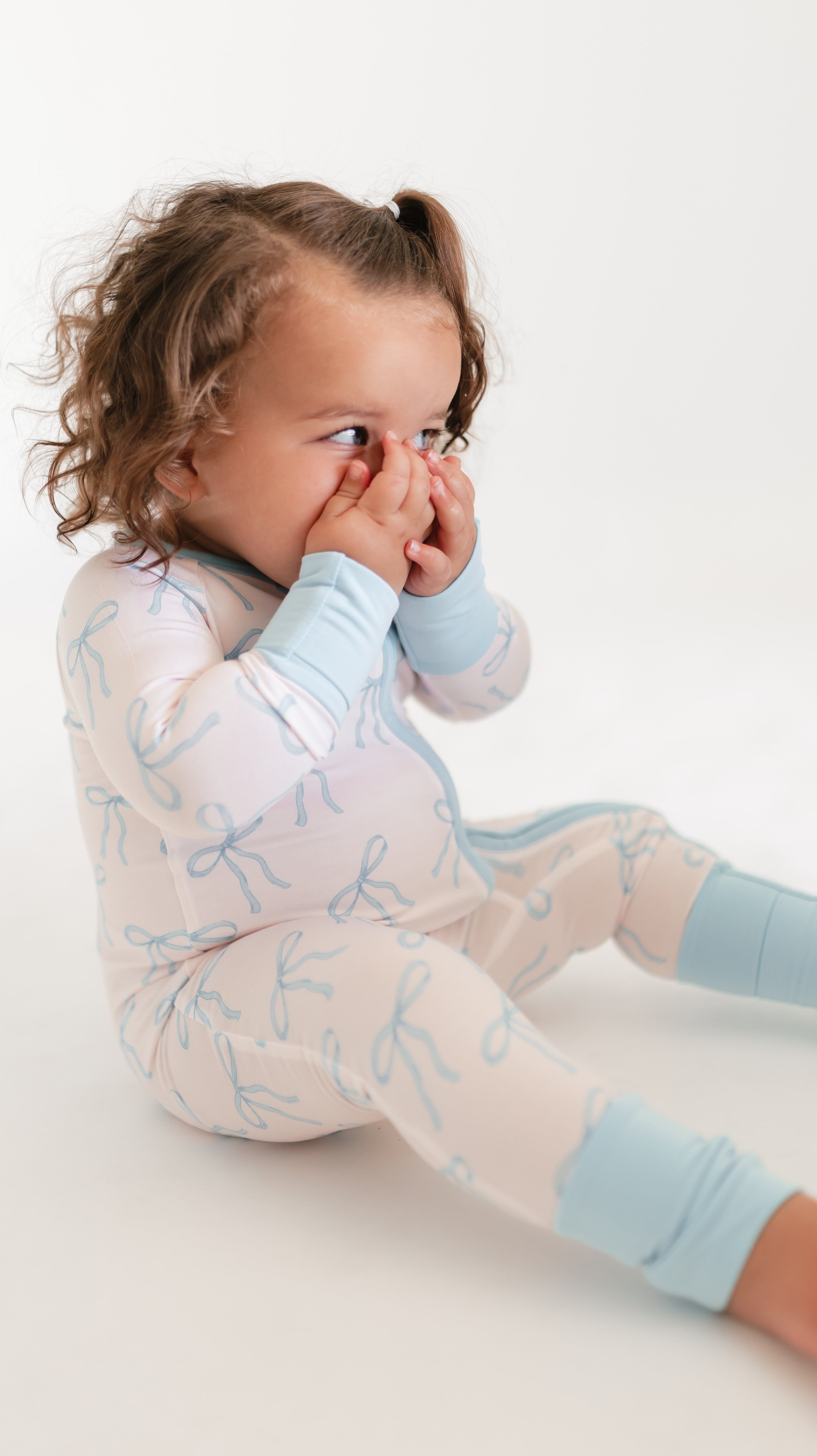Girl's Long Sleeve and Pants Set in Blue Bows