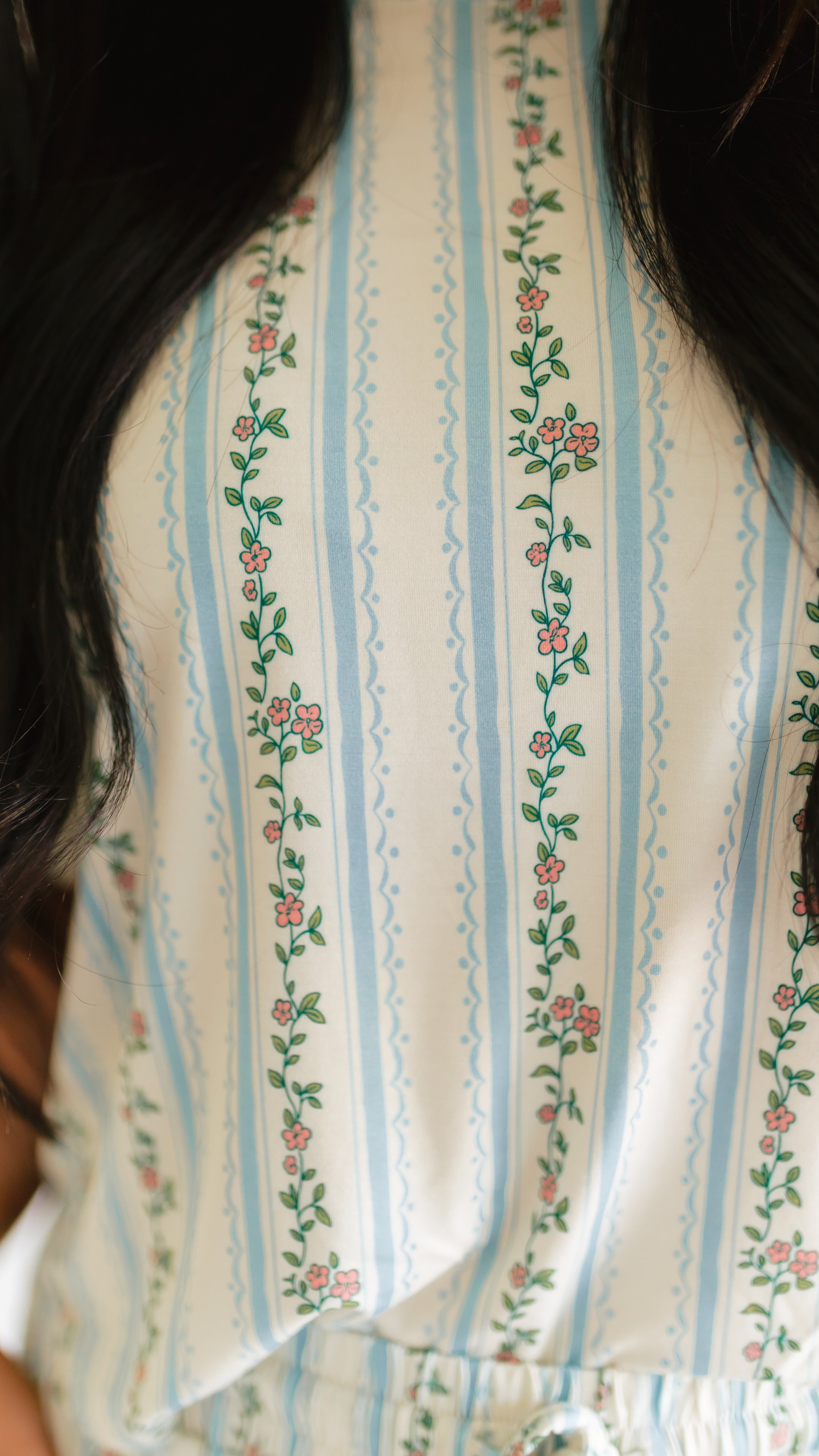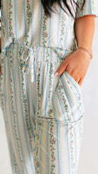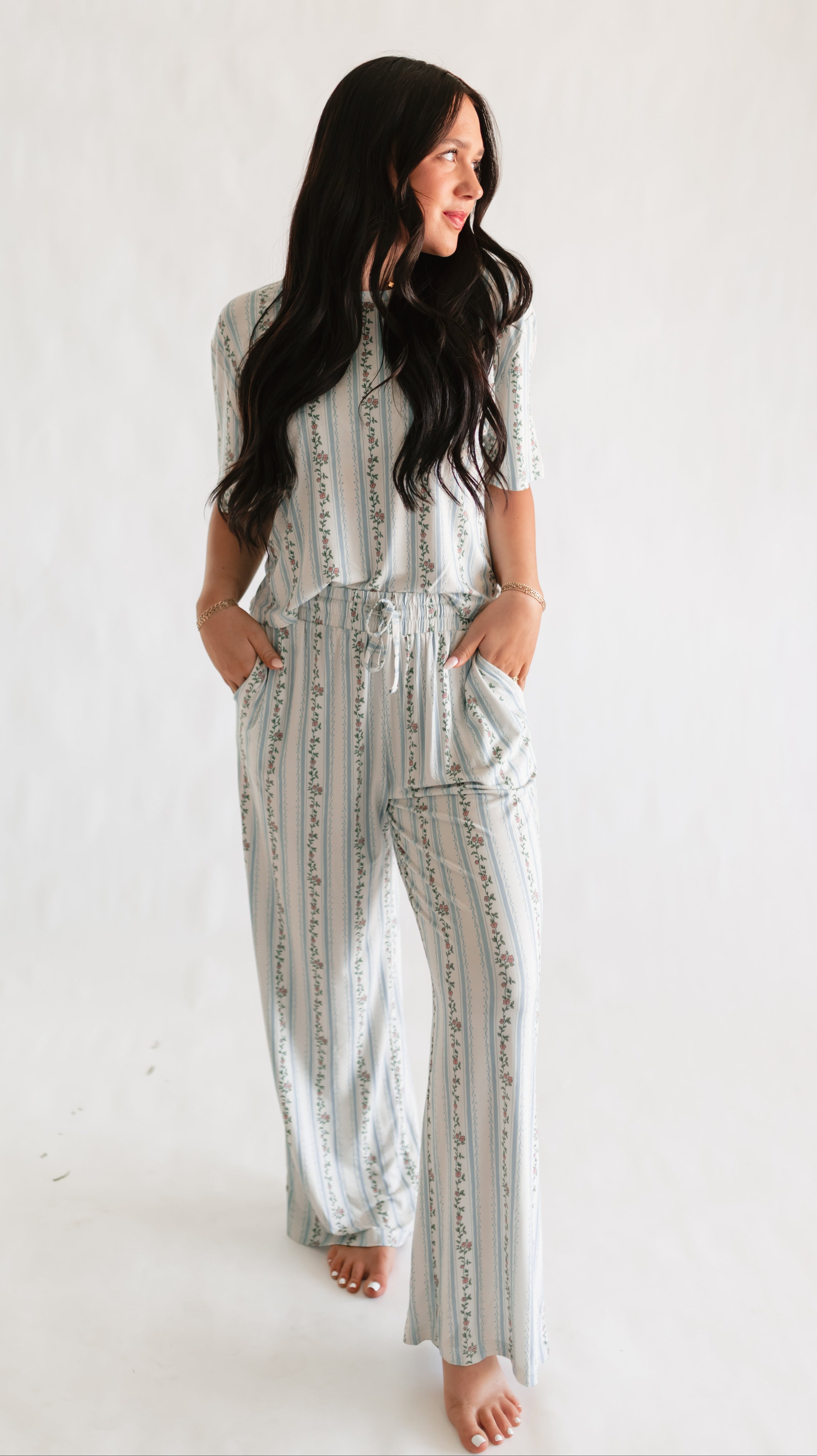 Women's T-Shirt and Pants Set in Blue Striped Floral