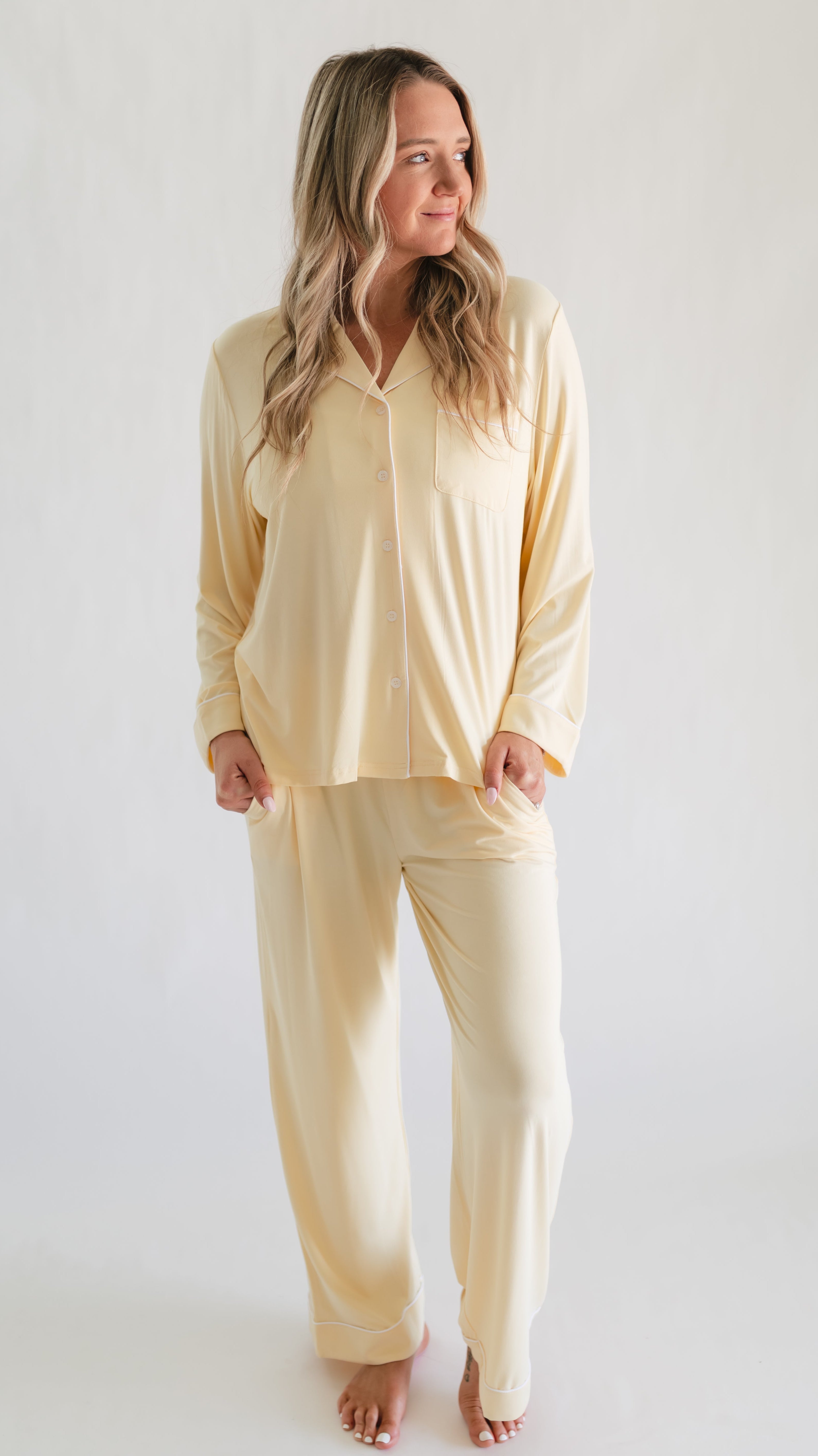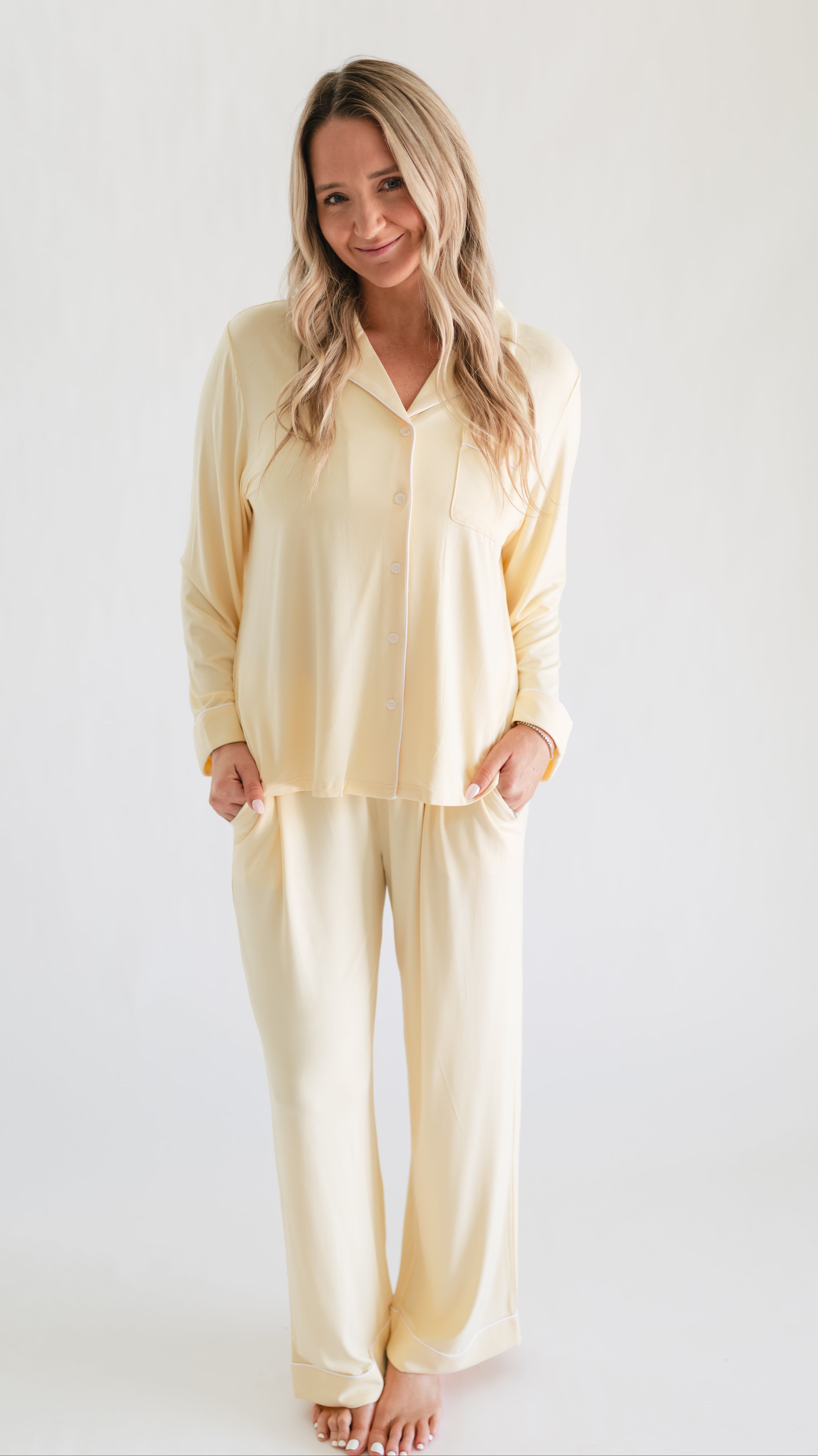 Women's Button Up Set In Butter Yellow