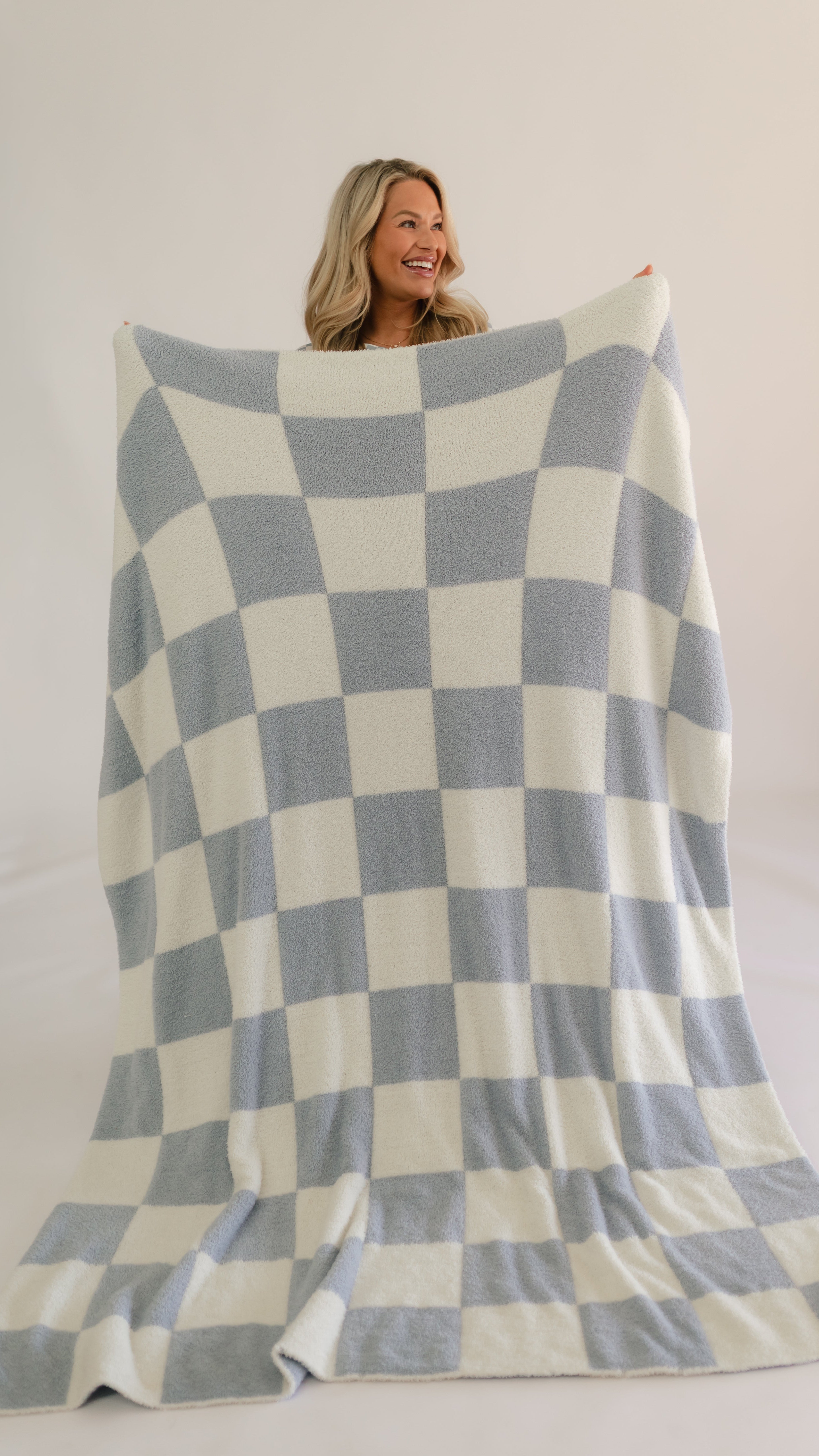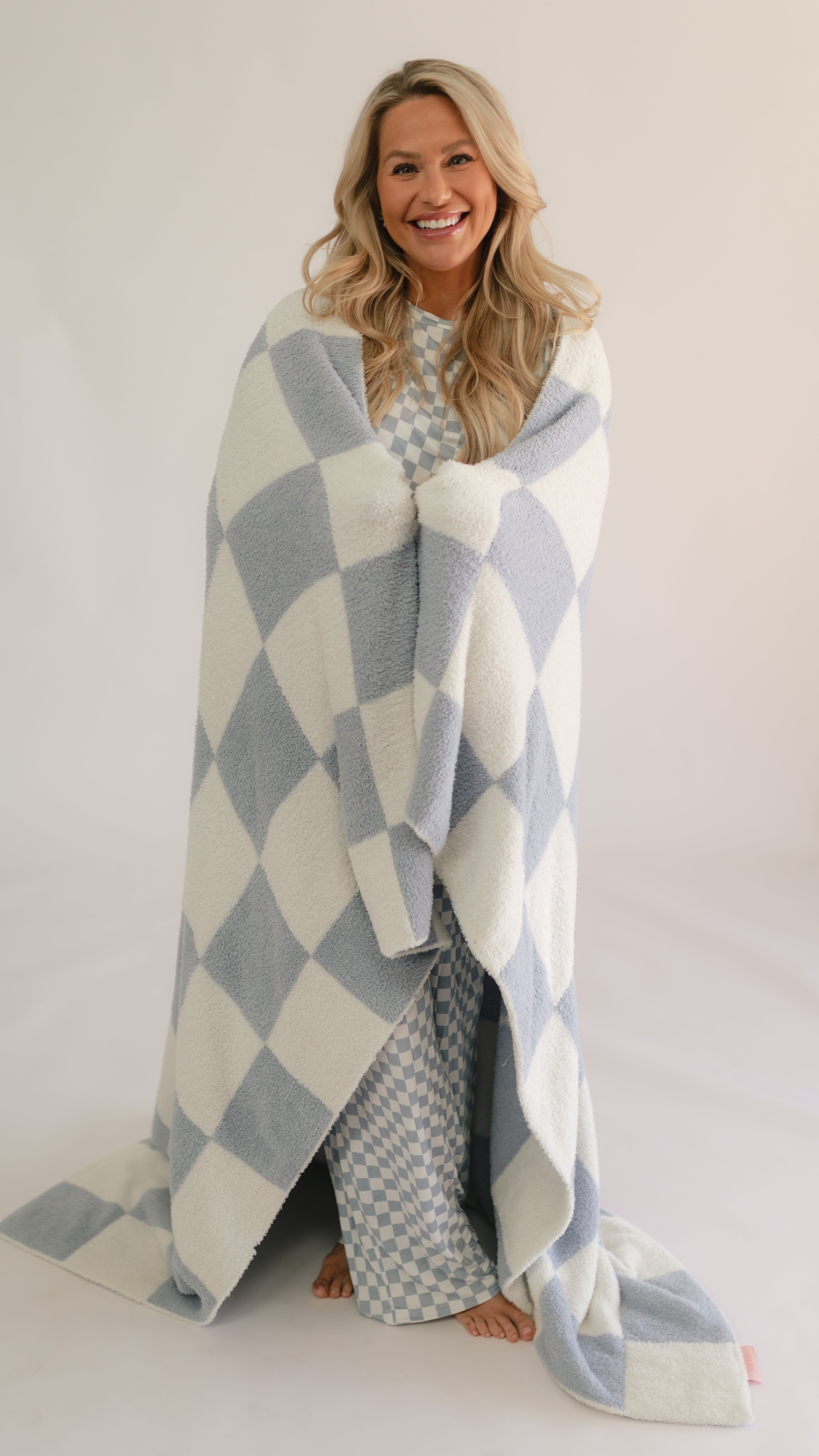 Adult Plush Throw Blanket in Cornflower Blue Checkered