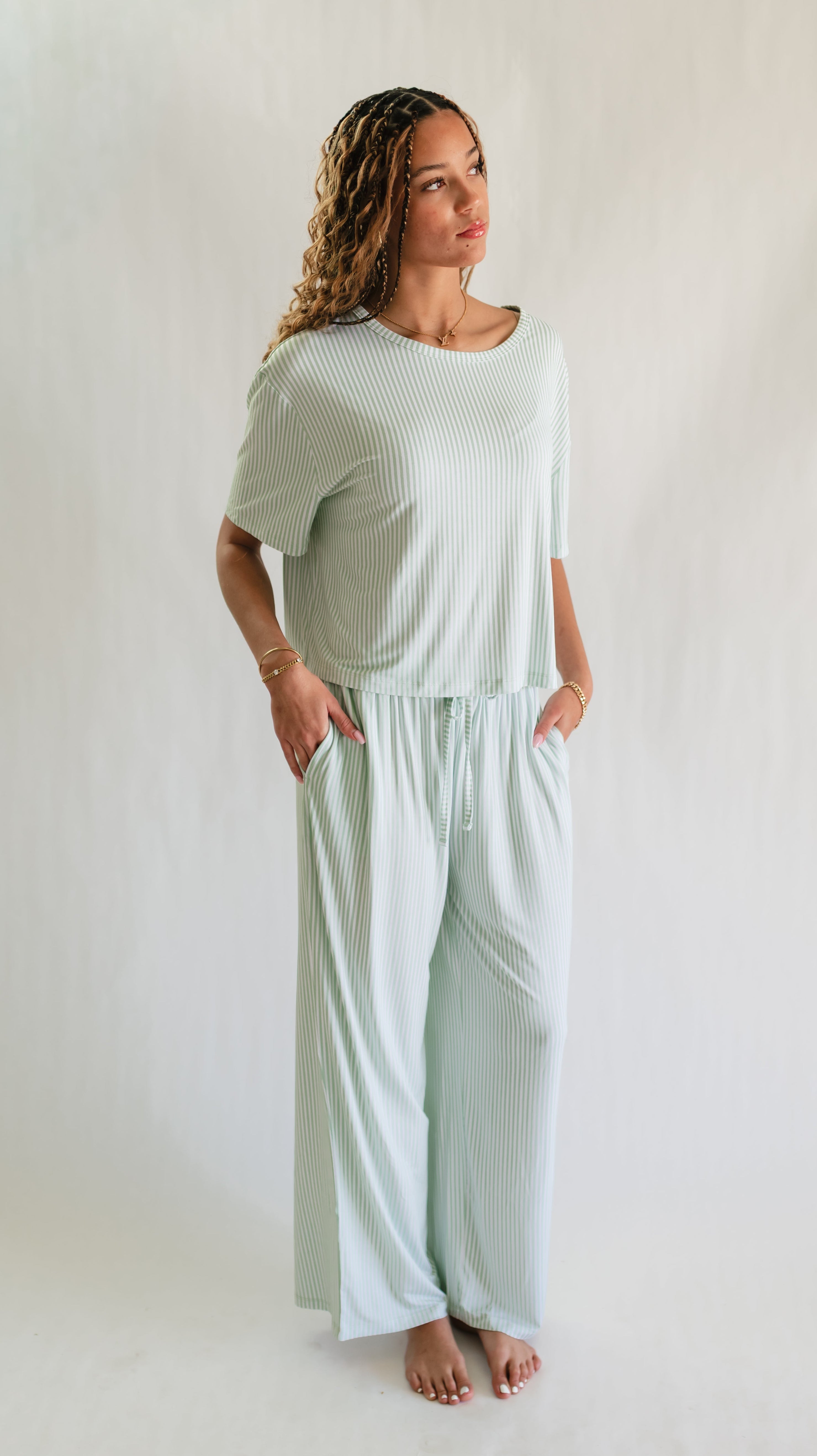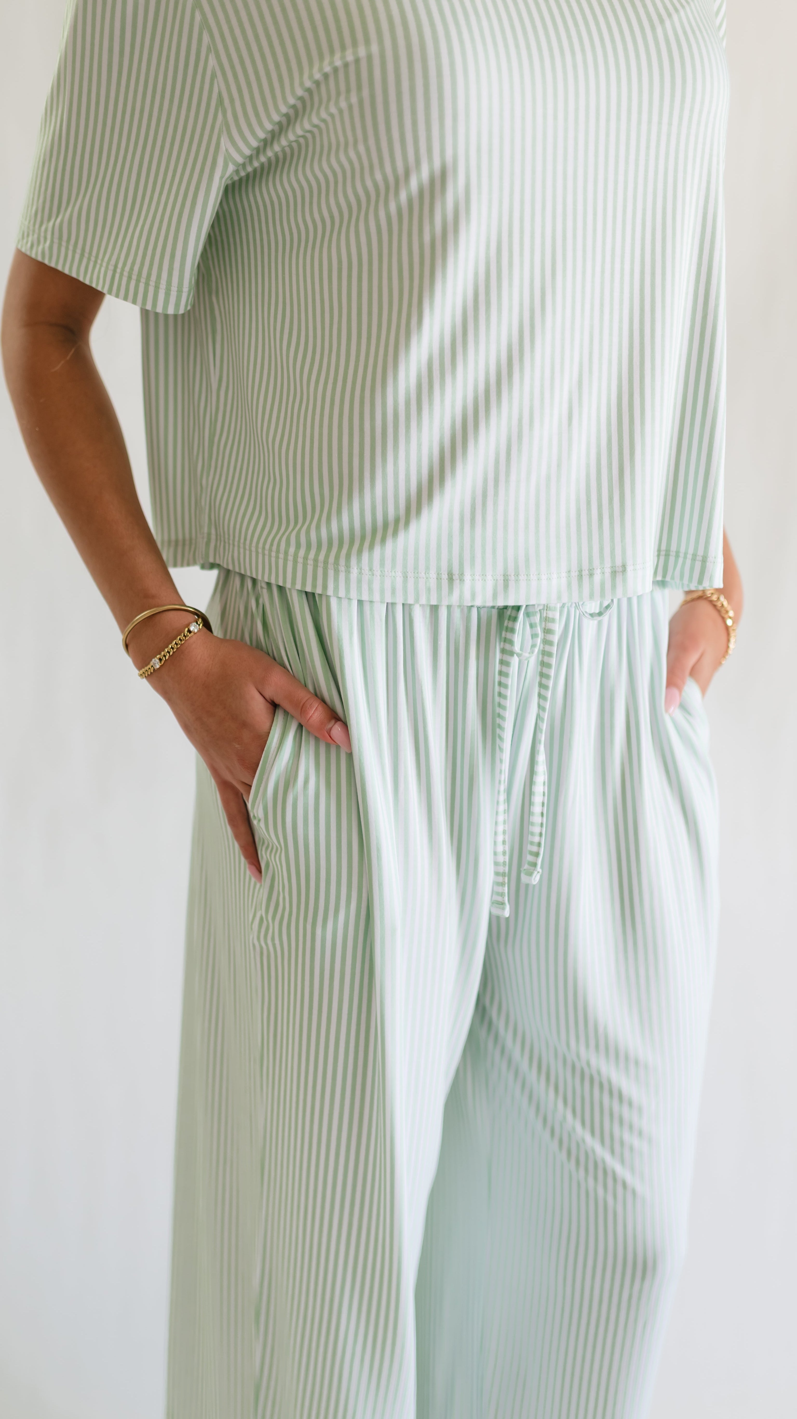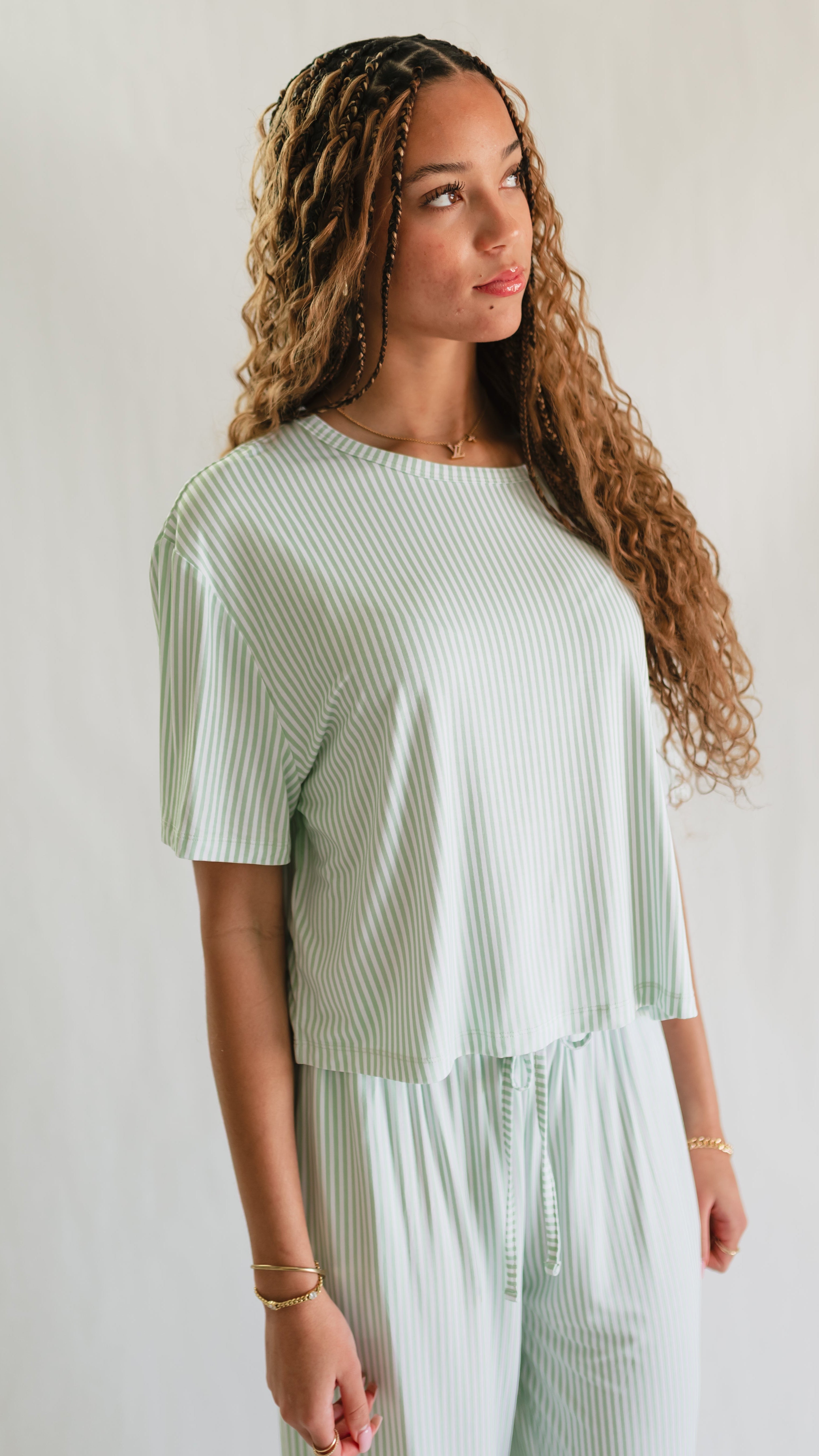 Women's T-Shirt and Pants Set in Meadow Bloom Pin Stripe