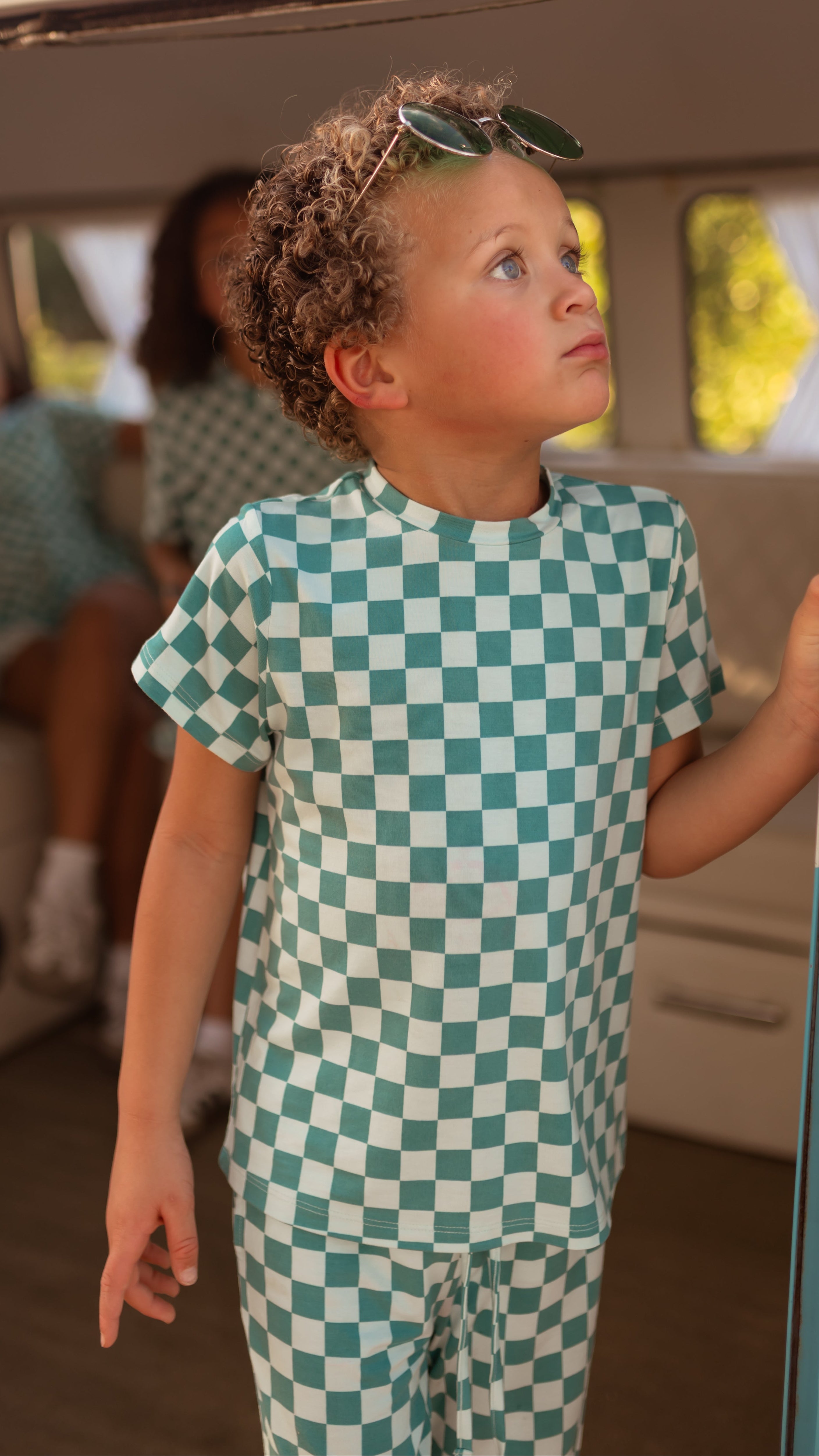 Youth Jogger Set In Teal and Blue Checkered