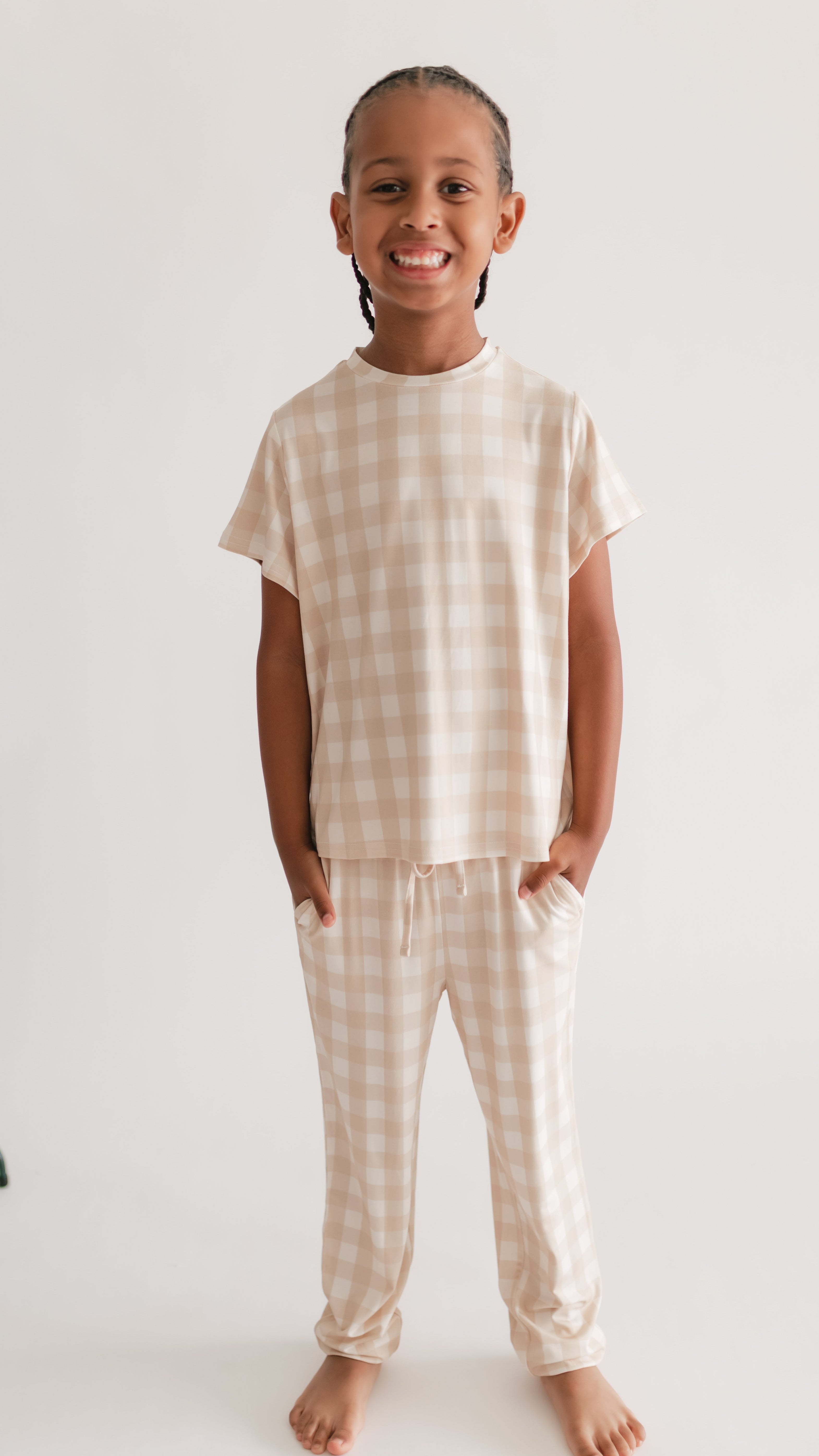 Youth Jogger Set In Neutral Gingham