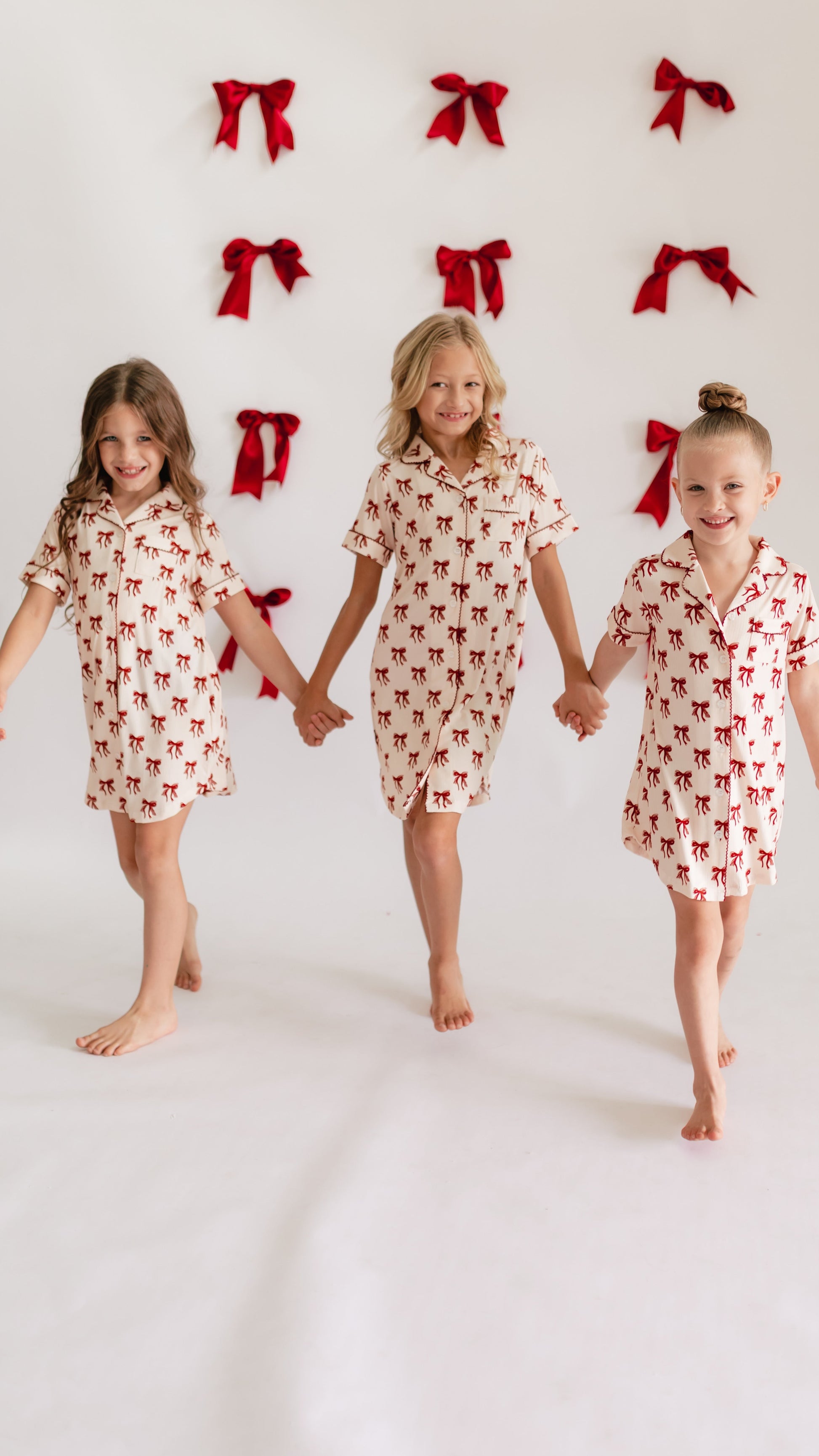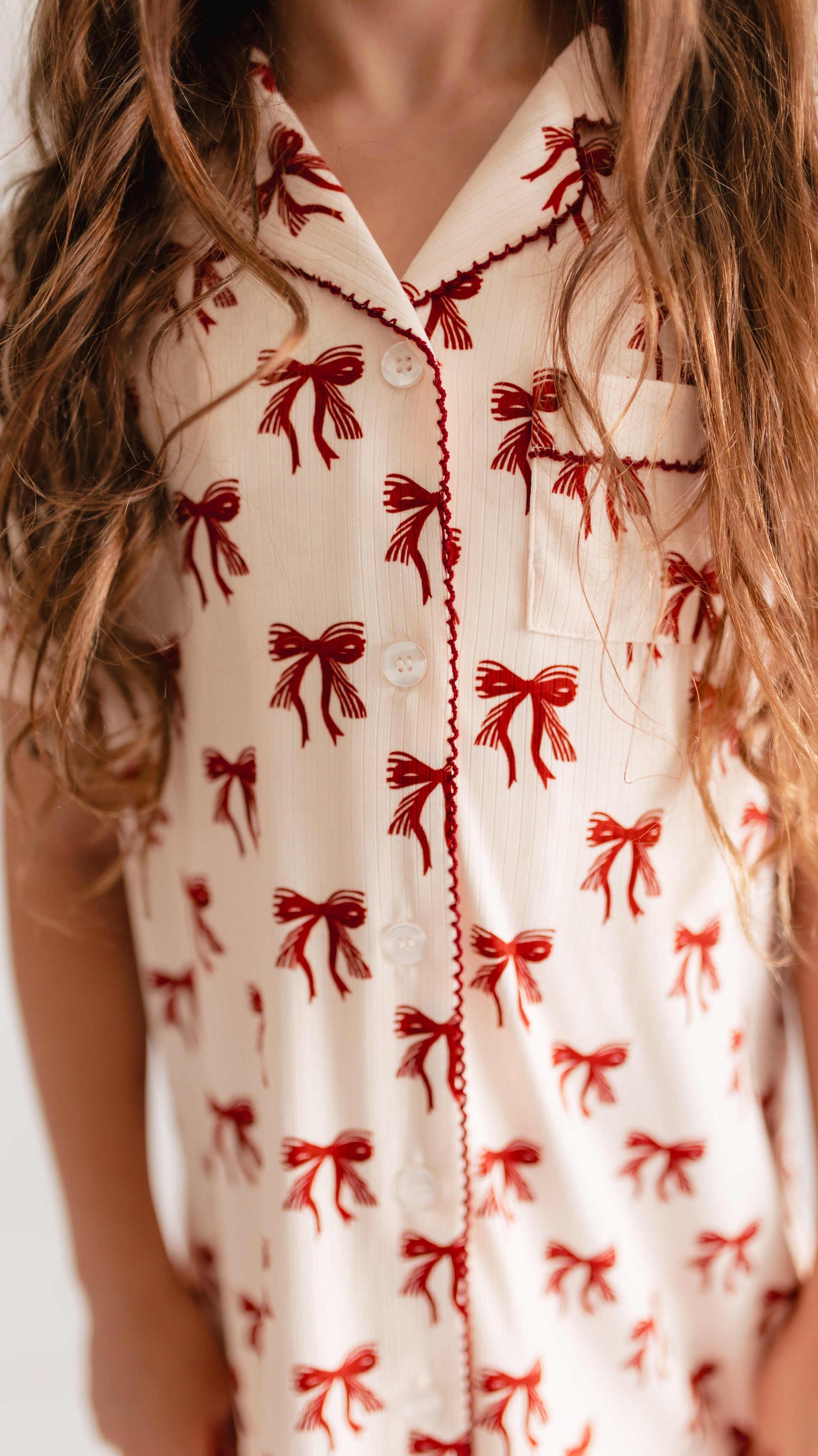 Girl's Button Down Ribbed Dress in Christmas Bows