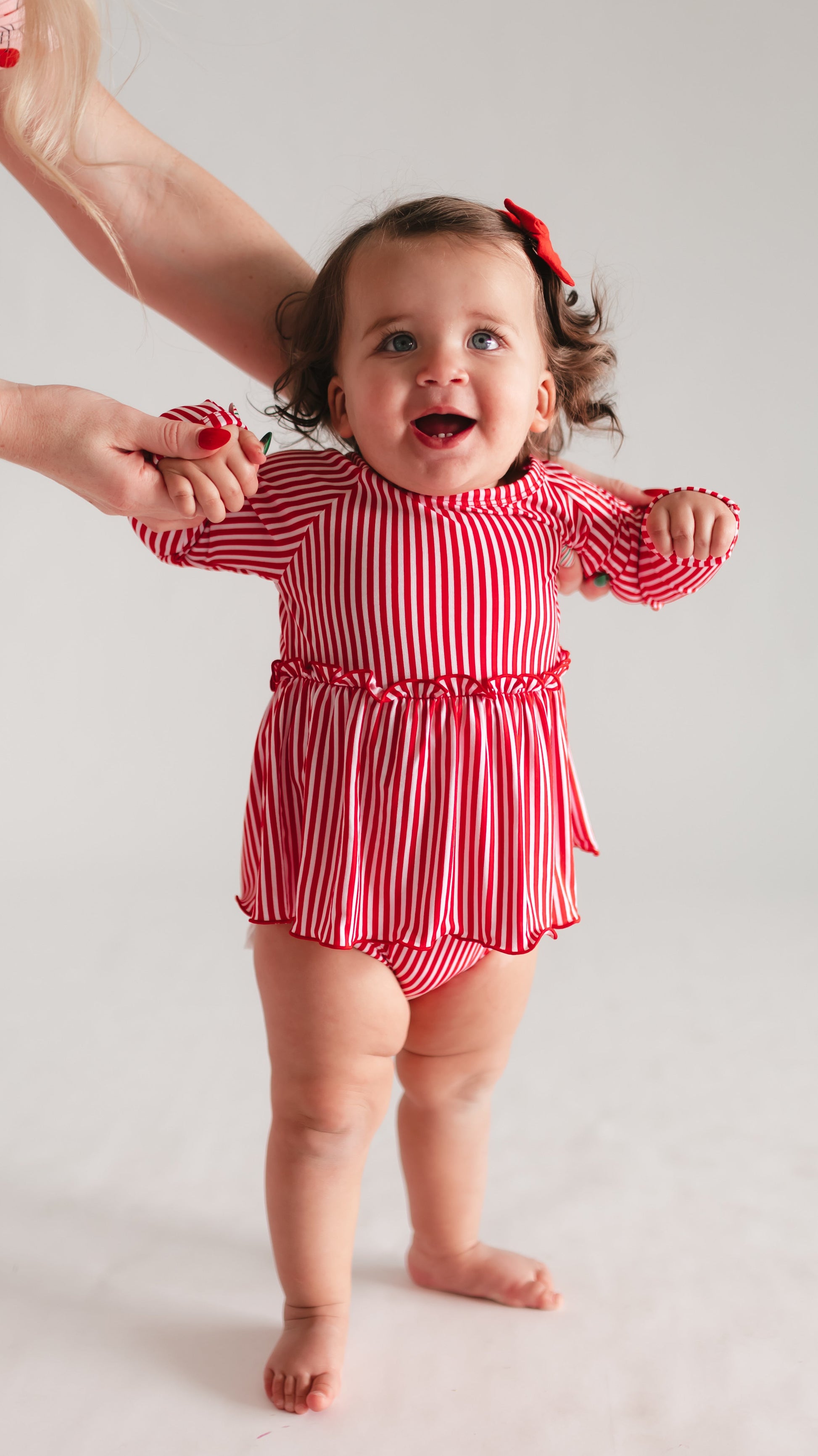 Infant Long Sleeve and Skirt Onesie in Red Pin Stripes