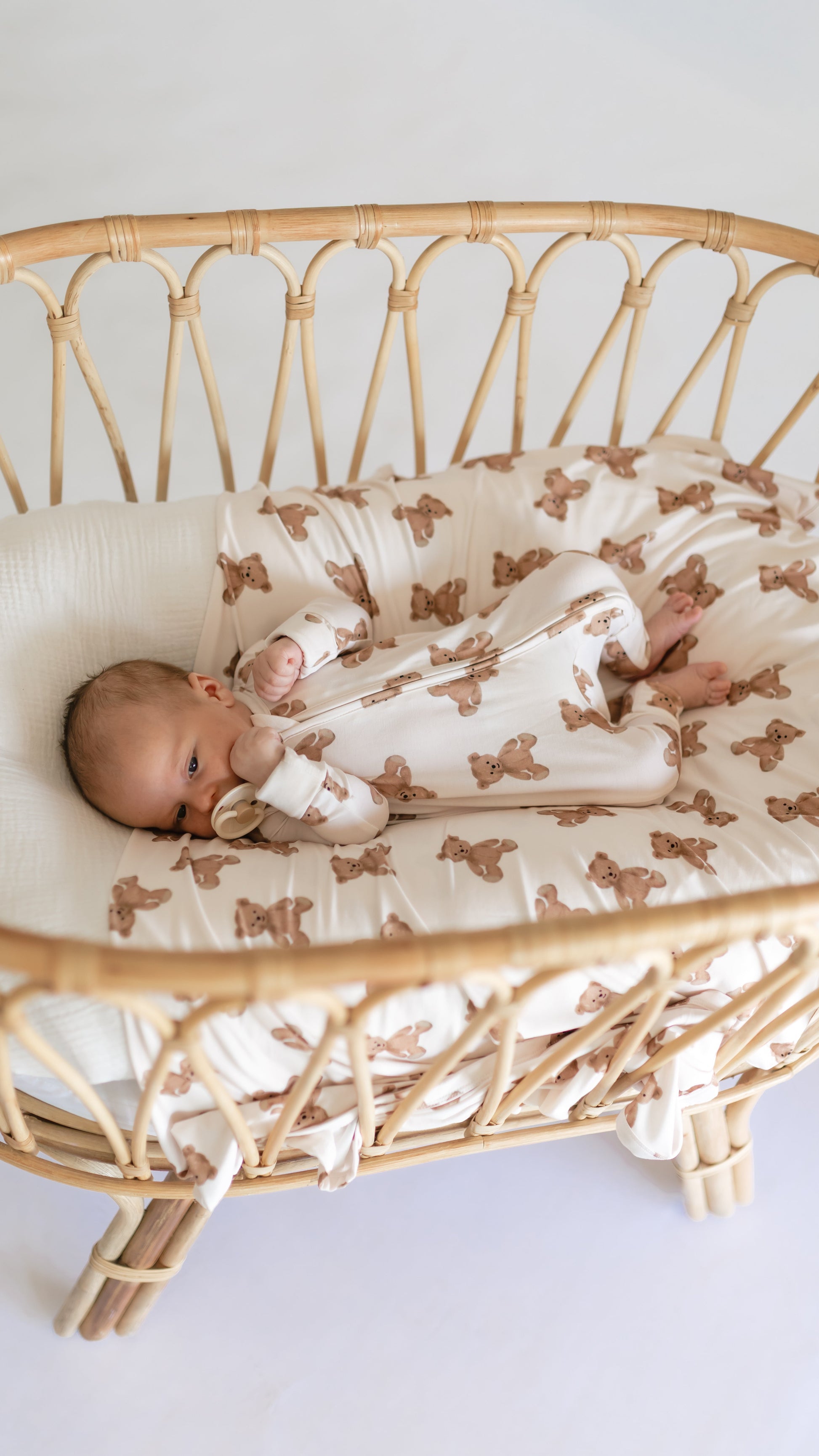 Our baby rompers are made from 95% viscose from bamboo and 5% spandex, offering a dreamy-soft feel that’s breathable, stretchy, and gentle on delicate skin. Designed to grow with your little one, these rompers are cozy enough for play and snug enough for sleep—meeting all CPSC safety standards for tight-fitting infant sleepwear.