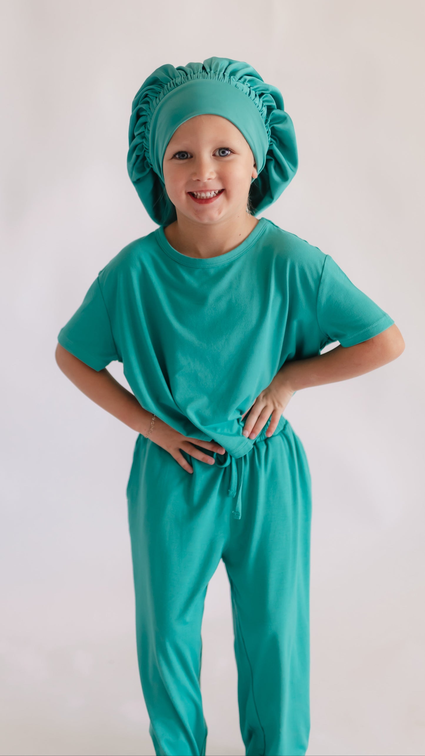 Kids Satin Bonnet in Teal