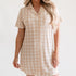 Women's Ribbed Button Down Dress In Neutral Gingham